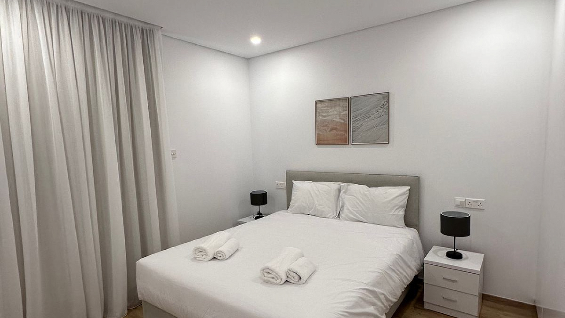 Сдаётся в аренду двухспальная квартира общей площадью 118 м² в районе City Center, Paphos. Квартира включает две спальни, одну ванную комнату, санузел, кухню, гостиную, а также кладовую. Апартаменты полностью меблированы и оборудованы бытовой техникой, установлены кондиционеры. Недвижимость расположена в центре города Пафоса, в закрытом жилом комплексе с парковкой и лифтом. Жилая площадь составляет 85 м², окна ориентированы с видом на горы. Квартира расположена на 2-м этаже трёхэтажного здания. Дом построен в 2023 году и соответствует классу энергоэффективности A.
