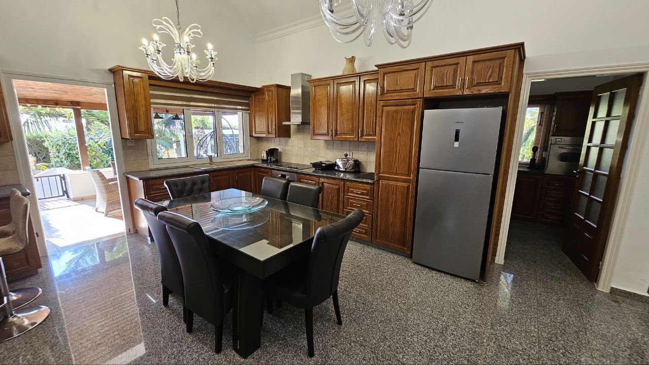 Сдается 4-спальная вилла, расположенная возле International School Of Paphos.Вилла включает 3 санузла, 2 кухни и просторную гостиную. На территории есть частный бассейн, большая крытая терраса и огромный сад с фруктовыми деревьями.В стоимость аренды включено обслуживание сада и бассейна. Маленькие домашние питомцы допускаются. Это идеальное место для комфортного проживания с семьей в спокойном районе.