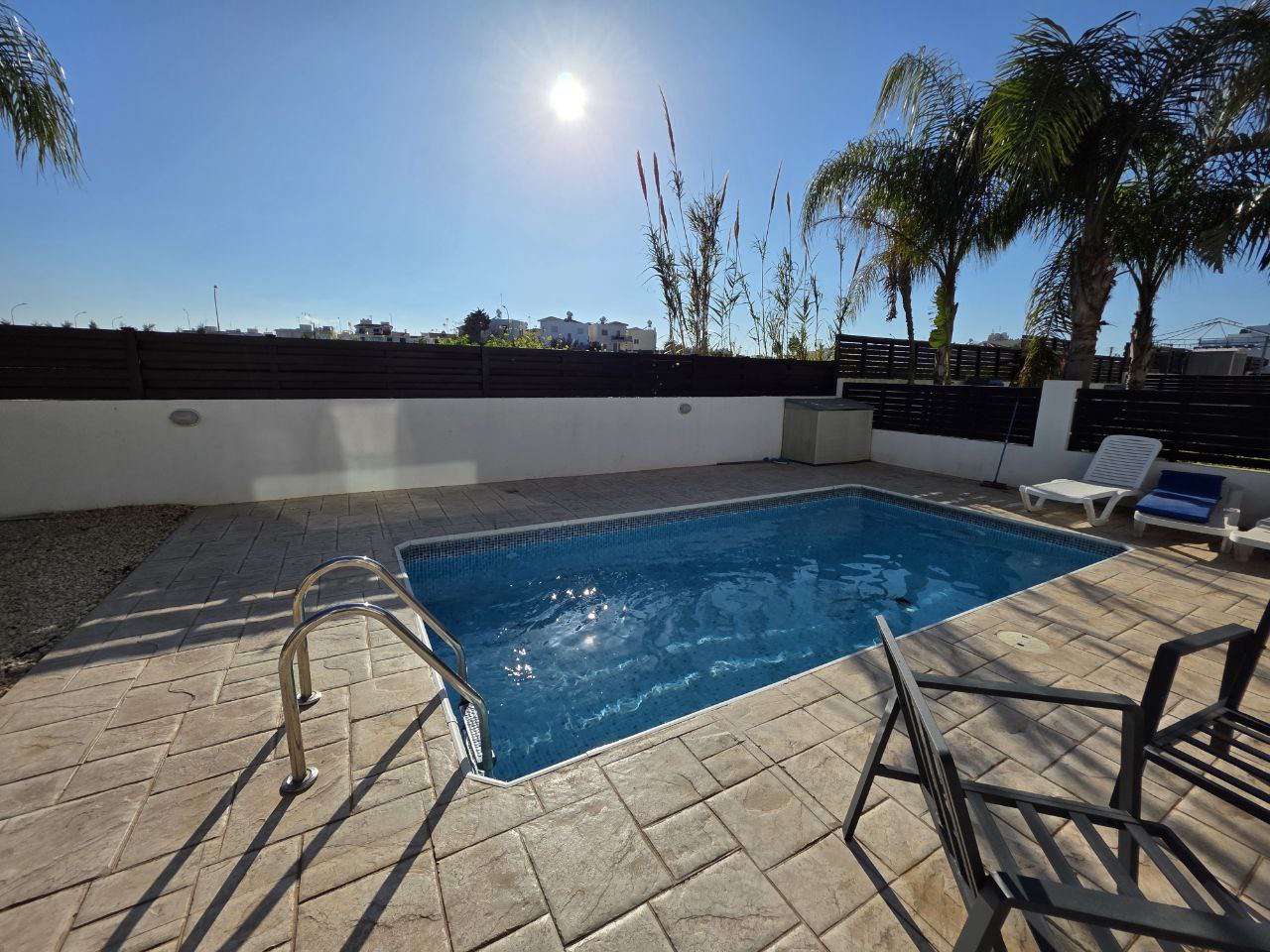 Сдается трехспальная вилла в районе Kapparis, Protaras, Famagusta, площадью 125 м². Вилла включает три просторные спальни (мастер-спальня с собственной ванной комнатой), дополнительную ванную комнату, гостиную, кухню, балкон и кладовую. Дом полностью меблирован и оснащен кондиционерами во всех помещениях. На территории расположен частный бассейн, сад и крытая парковка. Вилла находится в тихом жилом районе в шаговой доступности от моря, магазинов и ресторанов.