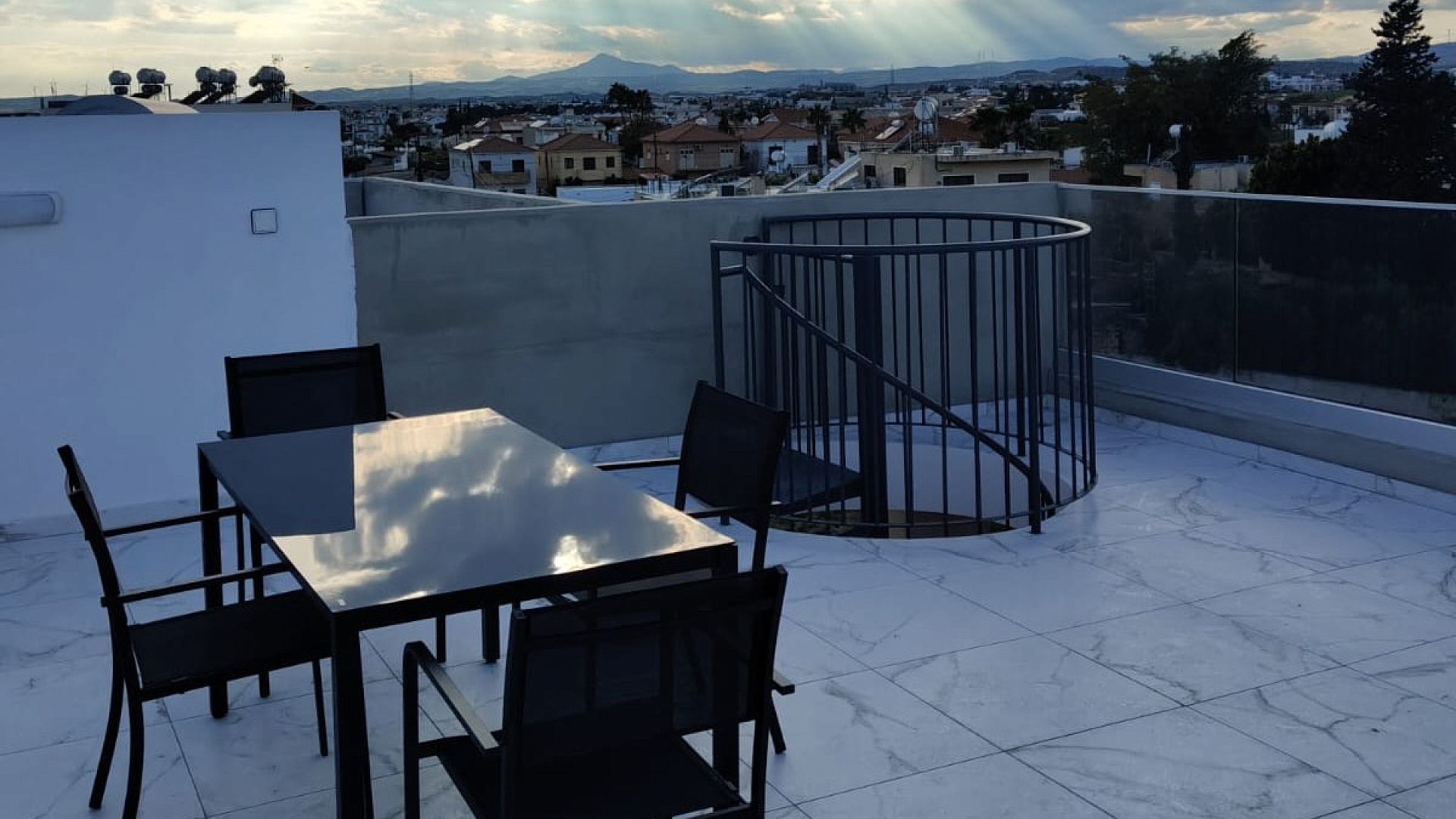 Сдается в аренду пентхаус с 2 спальнями в районе Aradippou, Larnaca. Полностью меблирован и оборудован бытовой техникой и кондиционерами. Есть сад на крыше площадью 38 м2 и балкон площадью 20 м2.