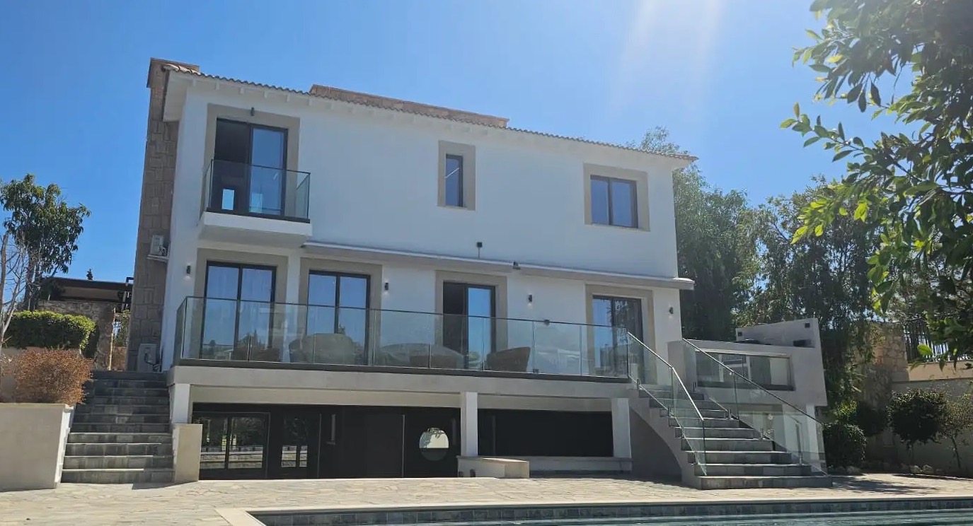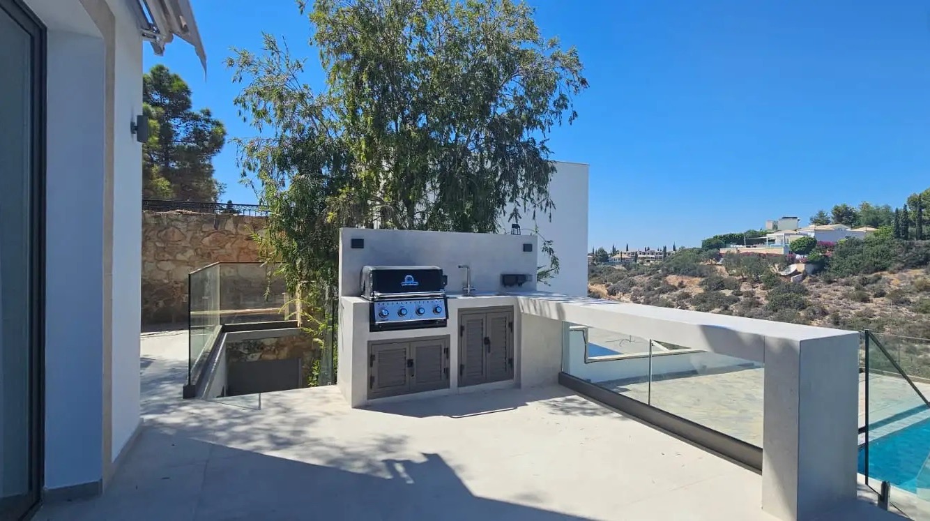Сдается в аренду пятиспальная вилла площадью 275 м² на участке 1400 м² в районе Kouklia, Paphos. Вилла включает 5 спален, отдельную студию с кухней и ванной комнатой, 5+ ванных комнат, кухню, гостиную с камином, веранду с баром, кладовую, тренажерный зал, сауну, сад, бассейн, детский бассейн и крытую парковку. Вилла полностью меблирована и оборудована бытовой техникой и инженерными системами: системой кондиционирования воздуха (ducted A/C в зоне кухни и гостиной и split unit A/C в других помещениях), системой подогрева бассейна с коммерческим тепловым насосом, большой солнечной системой мощностью 10,2 kW, системой смягчения воды, электрическими навесами Somfy с датчиками ветра, камином в гостиной, зоной BBQ. Дом построен в 2007 году и имеет энергоэффективность класса A. Общая площадь внутренних помещений включает 160 м² основного пространства, полуподвальный уровень 80 м² и отдельную студию 35 м². На территории расположен большой infinity бассейн и отдельный бассейн для детей.
