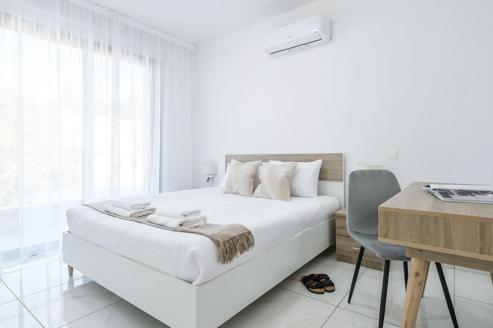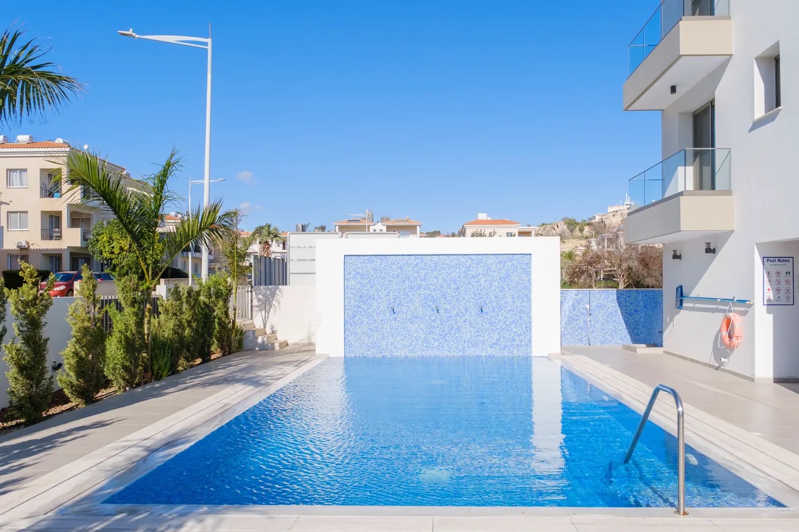 Сдается в аренду двухспальная квартира площадью 70 м² в районе Universal, Paphos. Апартаменты включают 2 спальни, 1 ванную комнату, 1 WC, кухню, гостиную, приватный балкон и кладовую в здании. Квартира расположена на территории жилого комплекса с лифтом, общим бассейном и общими парковочными местами. Жильё полностью меблировано и оборудовано бытовой техникой и оборудованием: кондиционеры, холодильник, духовка, варочная поверхность, вытяжка, микроволновая печь, стиральная машина, электрический чайник, кофемашина Nespresso, утюг, пылесос, Smart TV, акустическая система Marshall, WiFi, фен. Также предоставляются кухонная утварь, полотенца и постельное бельё, шкаф для хранения белья, душ, шампунь и плиточное напольное покрытие. Резиденция имеет вид на город и располагает частным парковочным местом, кладовой в здании, лифтом, общим бассейном, общими парковочными местами и круглосуточным доступом 24/7.