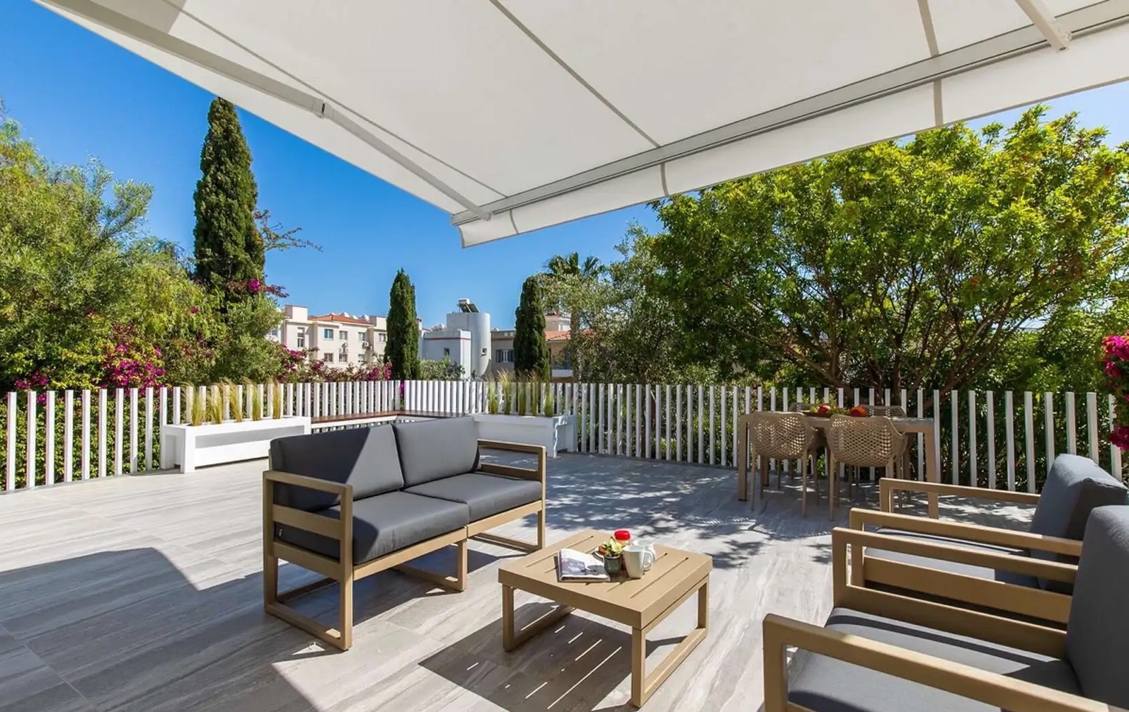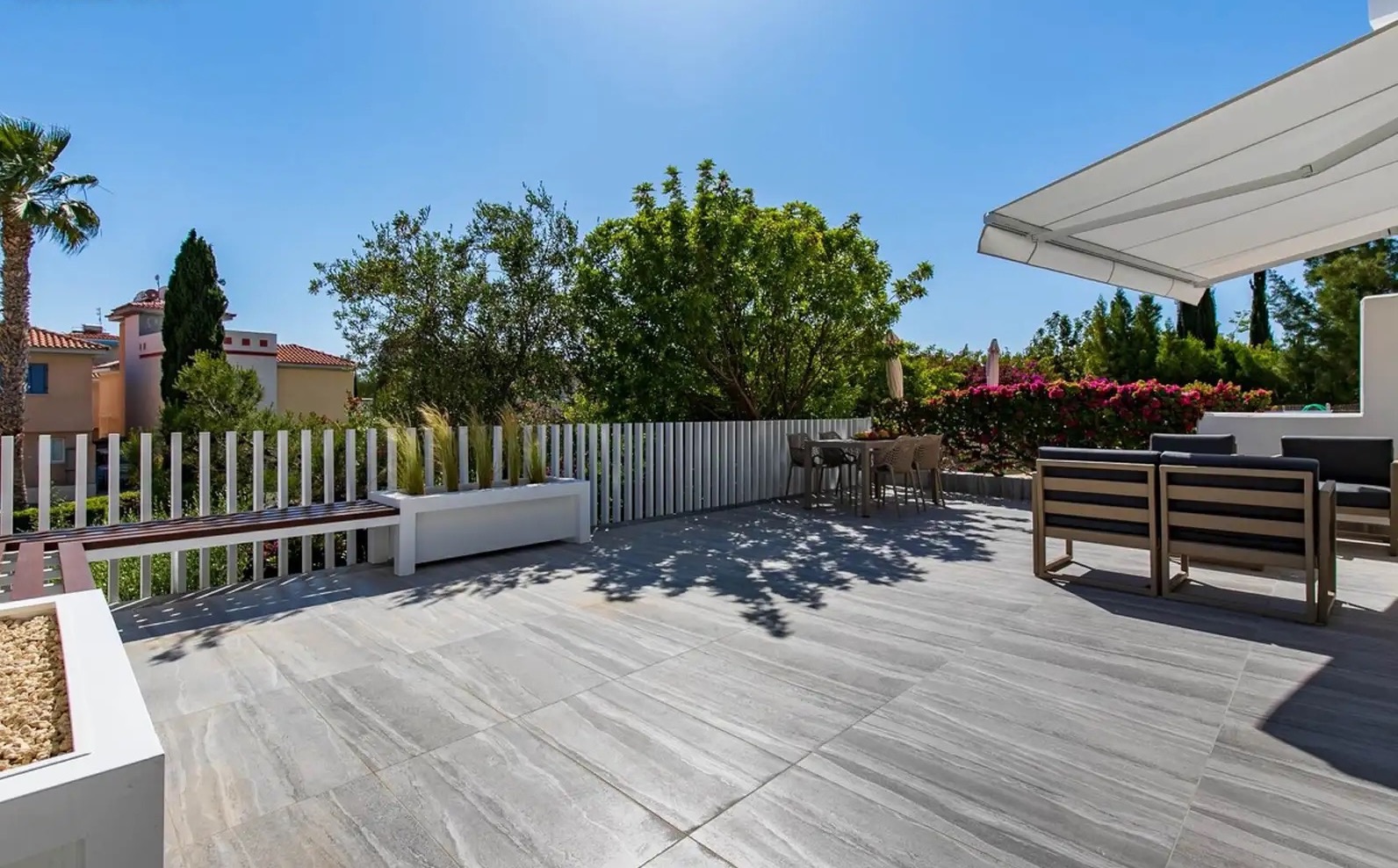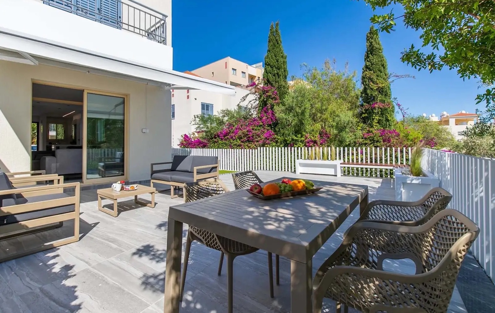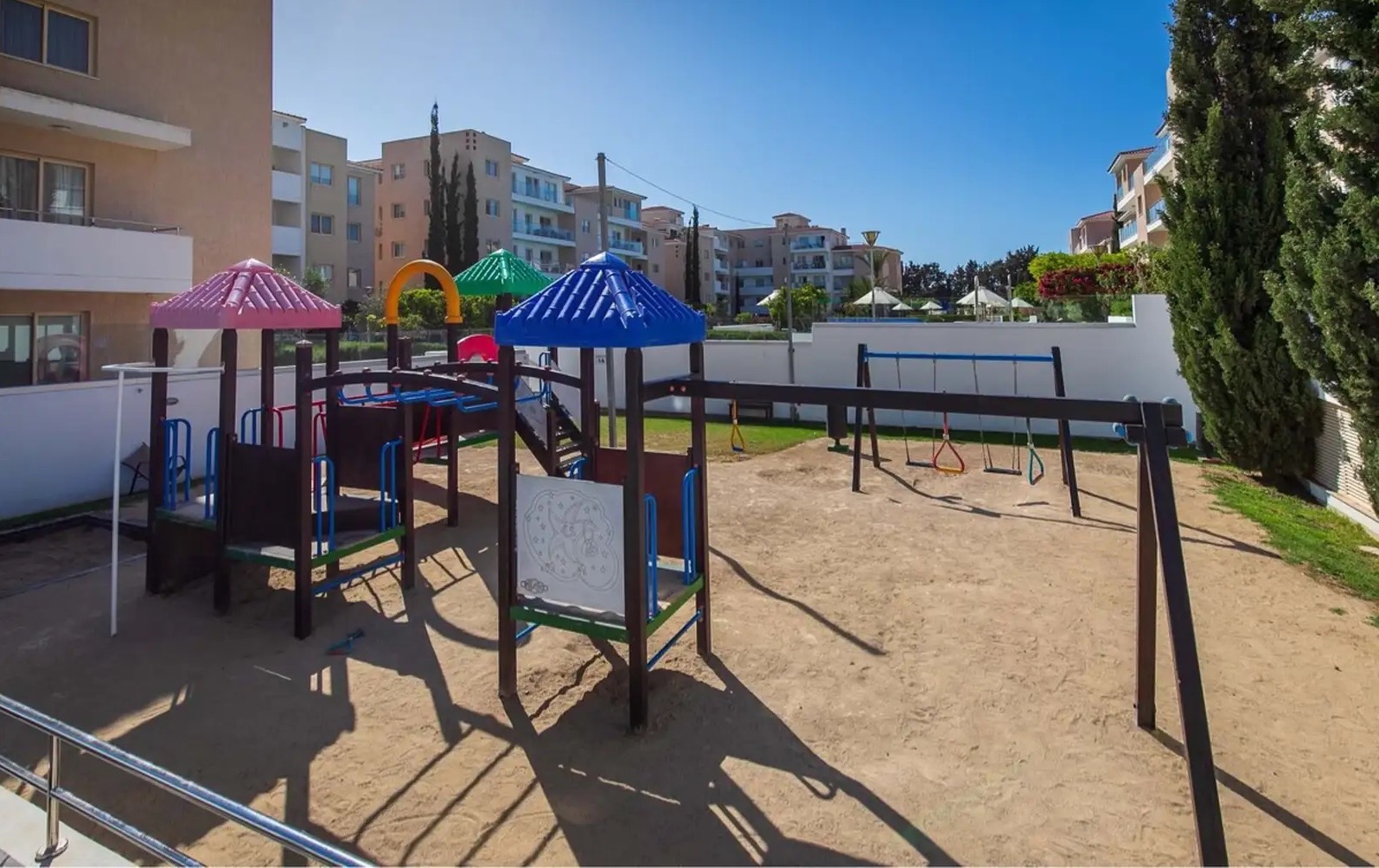 Предлагается в аренду роскошный угловой таунхаус с 2 спальнями, расположенный в престижном комплексе в одном из самых привлекательных районов Пафоса — Universal. Общая площадь объекта составляет 182 м², из которых 97 м² — жилая площадь. В доме 2 спальни, 2 ванные комнаты и гостевой WC. Недвижимость полностью недавно отремонтирована и готова к заселению — в наличии вся необходимая комплектация для комфортного проживания: посуда, полотенца, постельное бельё и другие бытовые принадлежности. Таунхаус имеет просторную веранду и садовую зону, что делает его отличным вариантом для отдыха и жизни на свежем воздухе. Объект расположен в тихом и спокойном месте и включает частную открытую парковку. На территории комплекса есть крытый подогреваемый бассейн, wellness-центр, тренажёрный зал, аптека, ресторан и lounge bar, мини-маркет, а также большой лагунный общий бассейн. Локация объекта очень удобная: всего 5 минут до пляжа, 5 минут до Kings Avenue Mall и около 20 минут до аэропорта Пафоса.
