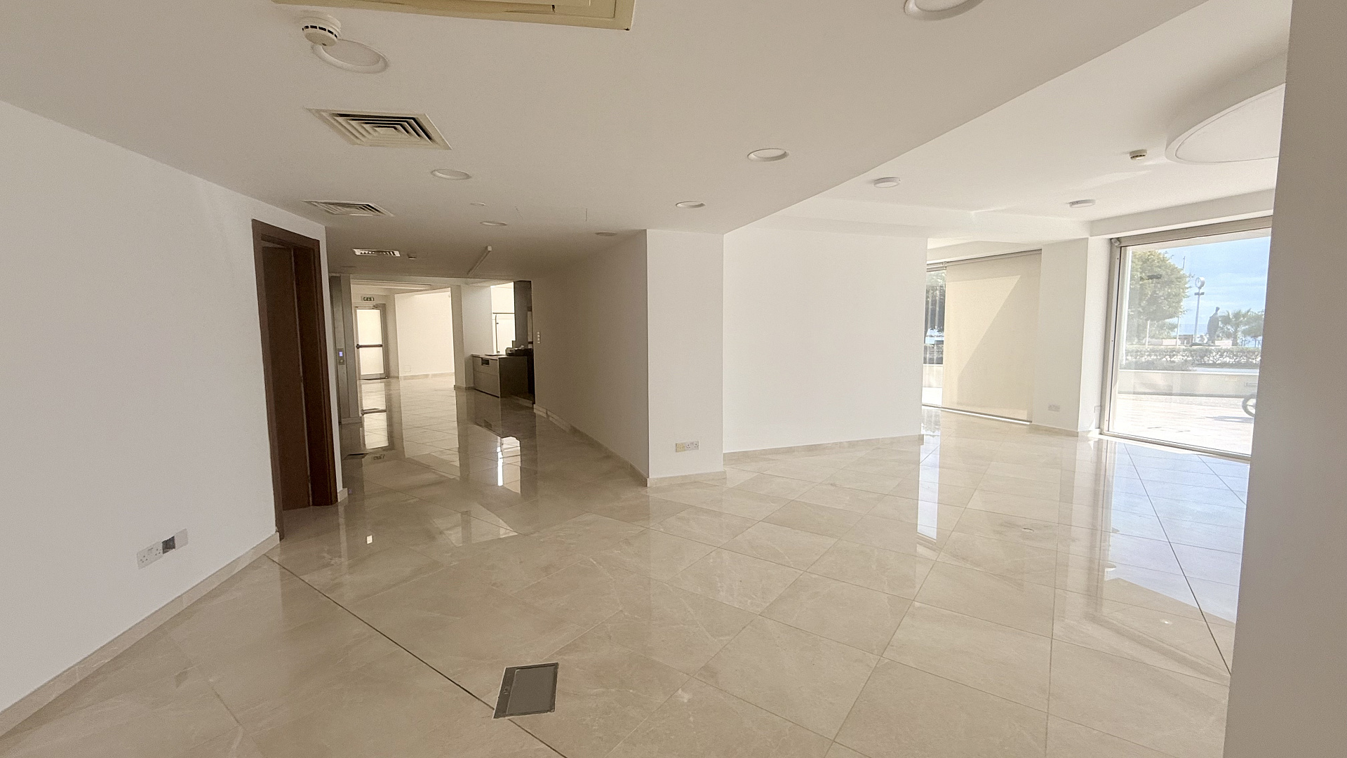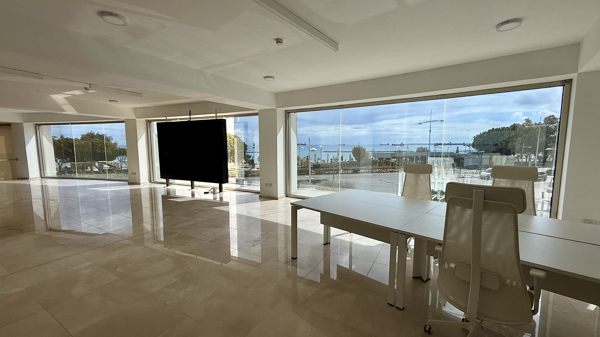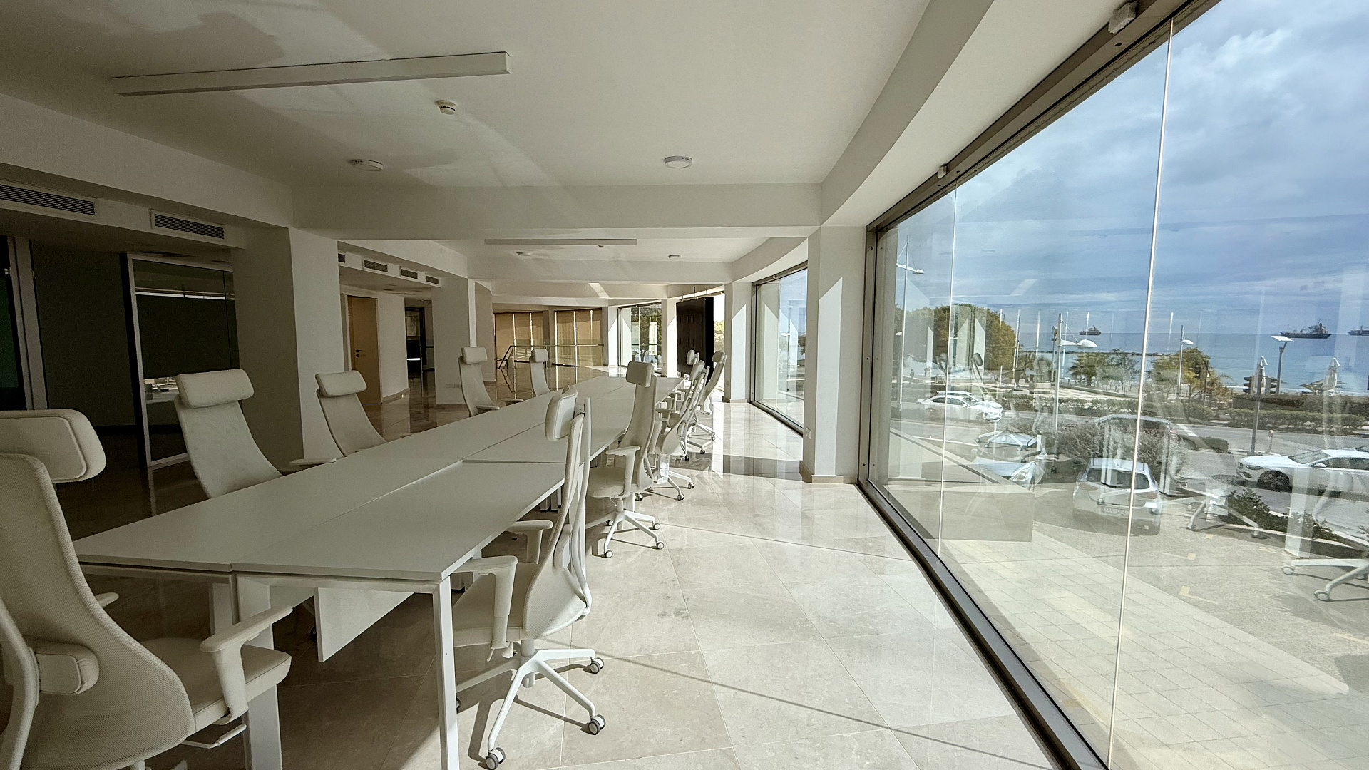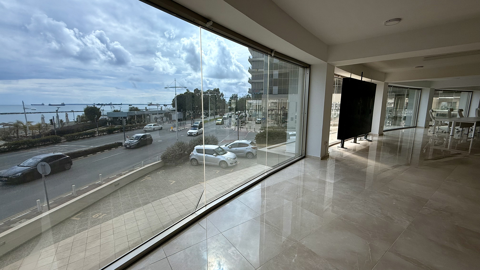 Сдается в аренду коммерческое помещение площадью 717 м² в районе Neapolis, Limassol. Коммерческий объект включает open-space помещение с витринными окнами с жалюзи, 2 WC, небольшую кухню, кладовую на уровне Ground Floor площадью 469 м², а также на уровне Mezzanine площадью 248 м² расположены 5 отдельных кабинетов, большой конференц-зал, 2 WC, серверная и кухня. Помещение оборудовано витринными окнами с жалюзи и имеет 2 пожарных выхода. Объект расположен на первой линии от моря, обеспечивая прямой доступ к набережной и отличную видимость, конференц-зал предлагает прекрасный вид на море. Перед входом предусмотрены 8 парковочных мест.