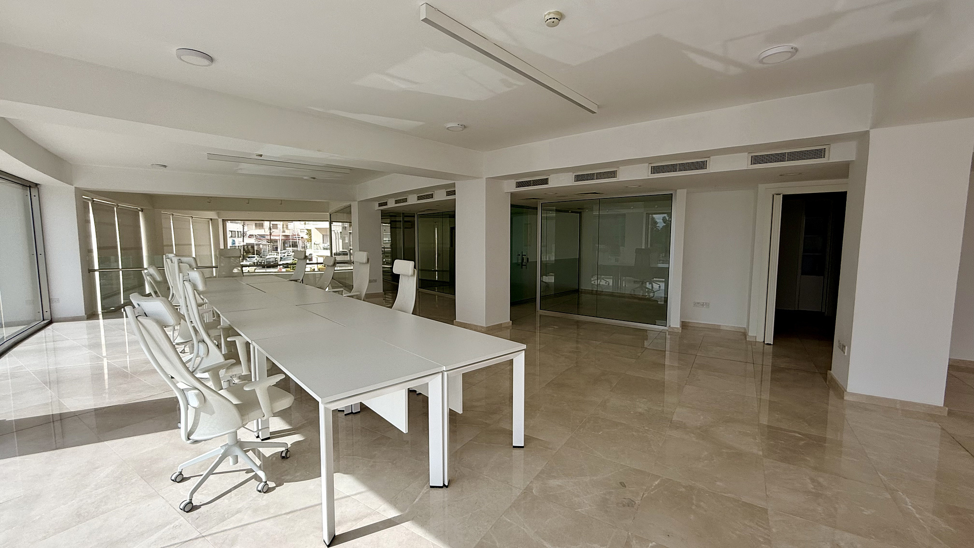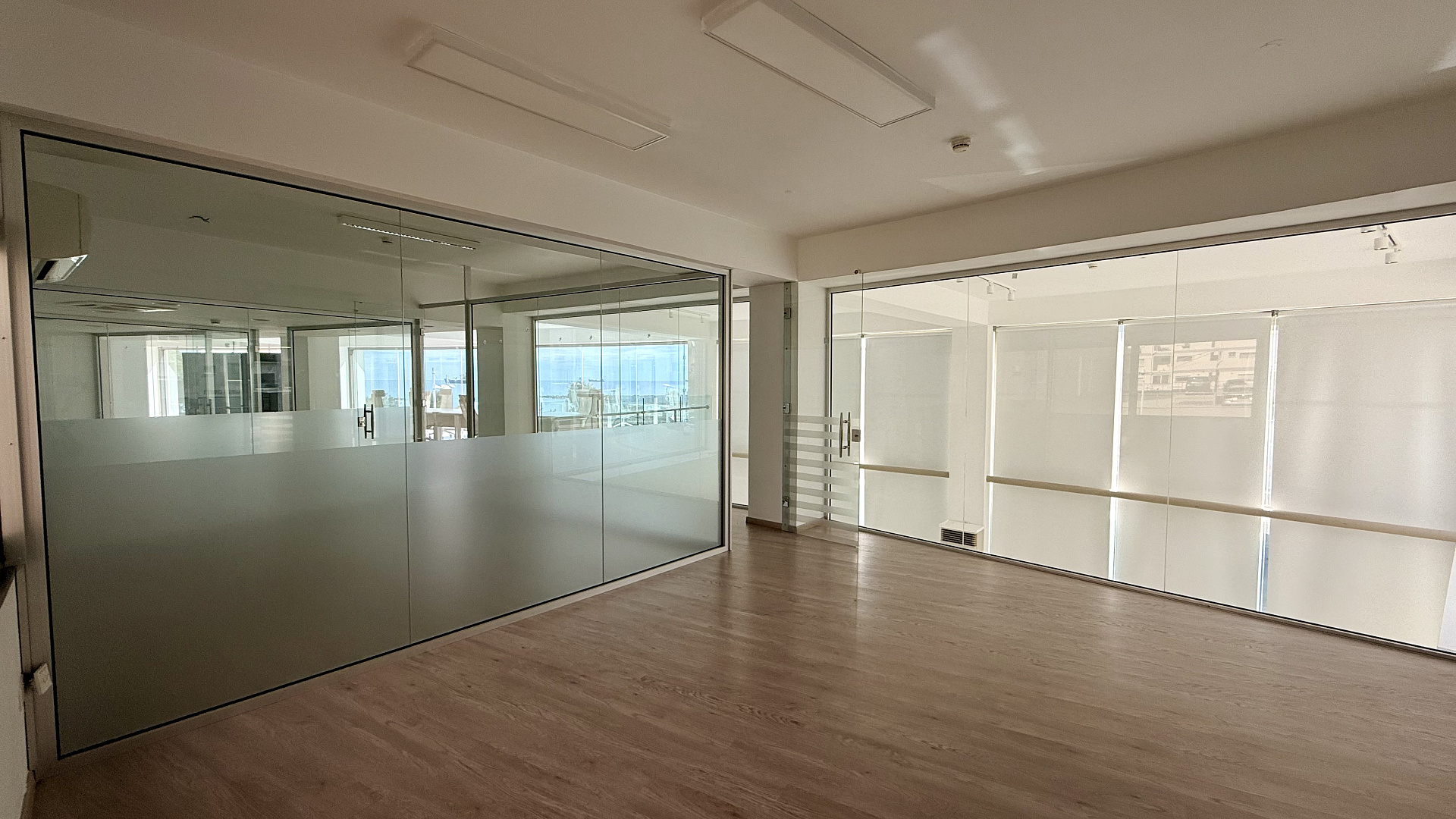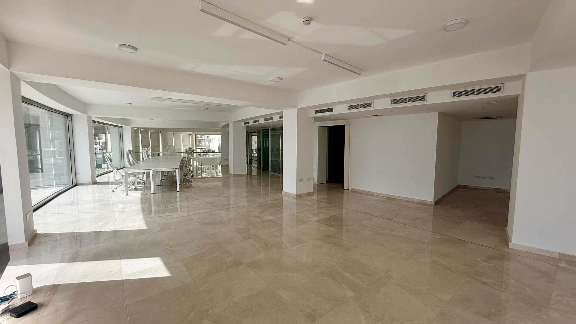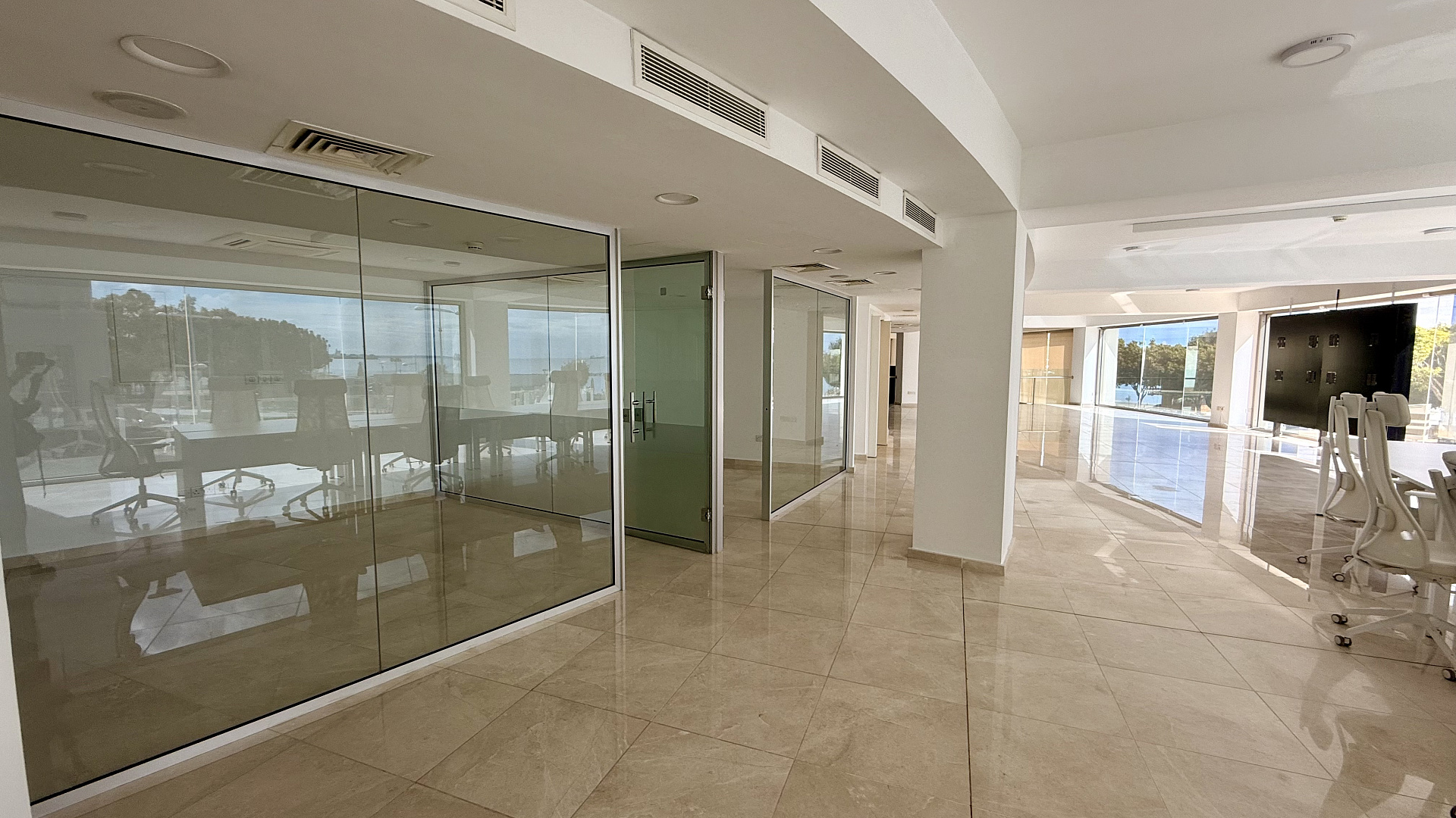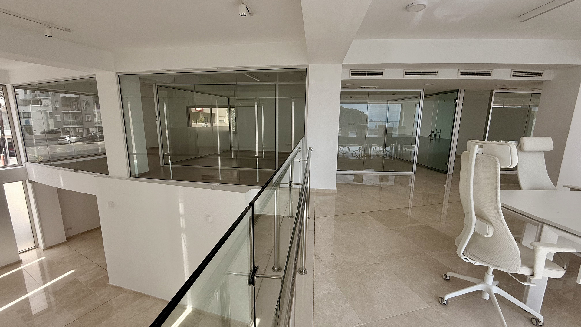 Сдается в аренду коммерческое помещение площадью 717 м² в районе Neapolis, Limassol. Коммерческий объект включает open-space помещение с витринными окнами с жалюзи, 2 WC, небольшую кухню, кладовую на уровне Ground Floor площадью 469 м², а также на уровне Mezzanine площадью 248 м² расположены 5 отдельных кабинетов, большой конференц-зал, 2 WC, серверная и кухня. Помещение оборудовано витринными окнами с жалюзи и имеет 2 пожарных выхода. Объект расположен на первой линии от моря, обеспечивая прямой доступ к набережной и отличную видимость, конференц-зал предлагает прекрасный вид на море. Перед входом предусмотрены 8 парковочных мест.