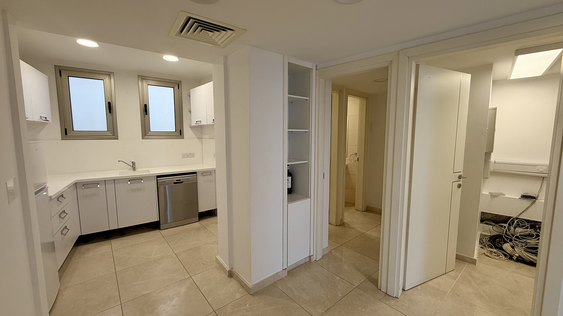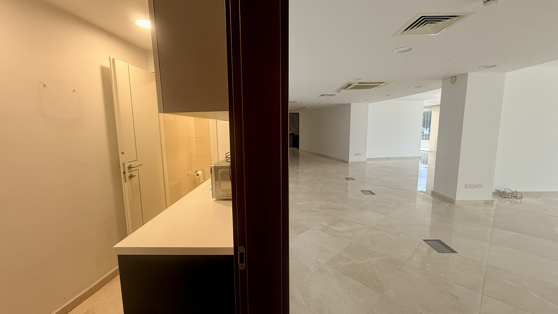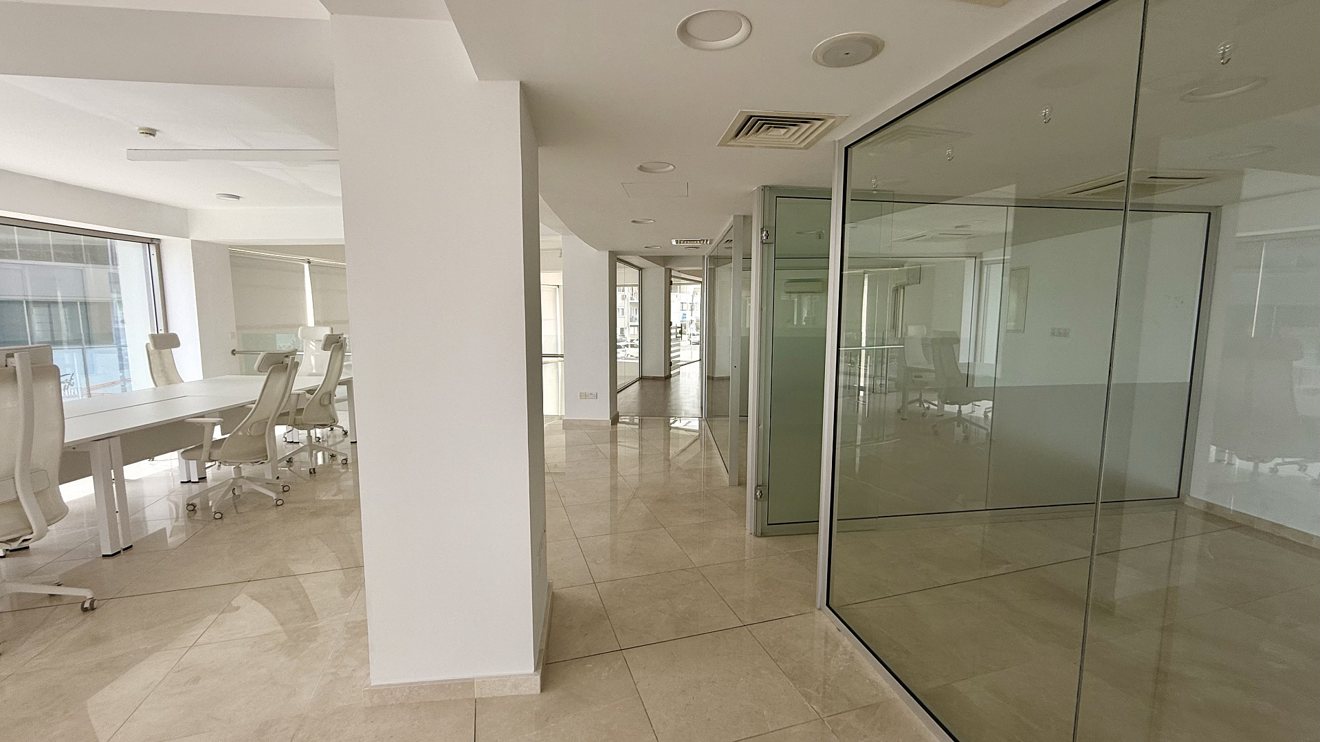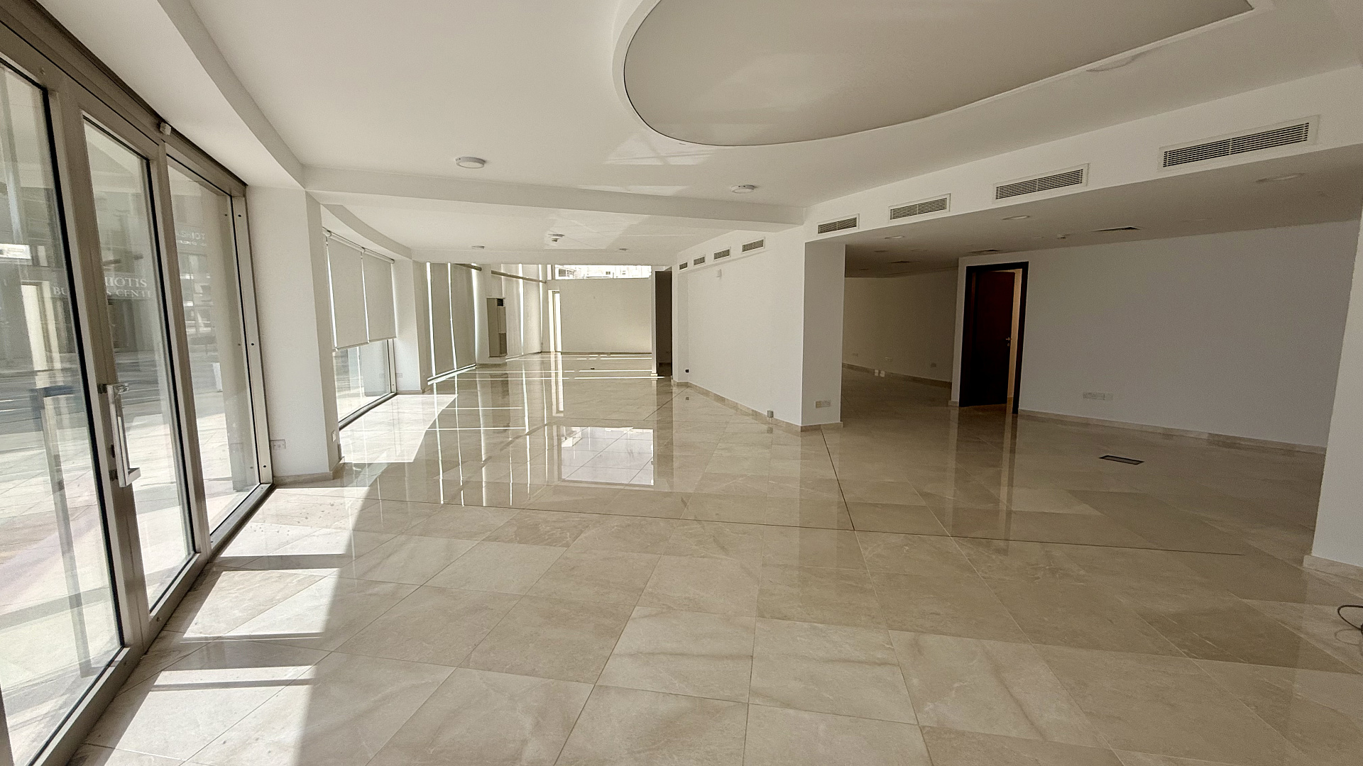 Сдается в аренду коммерческое помещение площадью 717 м² в районе Neapolis, Limassol. Коммерческий объект включает open-space помещение с витринными окнами с жалюзи, 2 WC, небольшую кухню, кладовую на уровне Ground Floor площадью 469 м², а также на уровне Mezzanine площадью 248 м² расположены 5 отдельных кабинетов, большой конференц-зал, 2 WC, серверная и кухня. Помещение оборудовано витринными окнами с жалюзи и имеет 2 пожарных выхода. Объект расположен на первой линии от моря, обеспечивая прямой доступ к набережной и отличную видимость, конференц-зал предлагает прекрасный вид на море. Перед входом предусмотрены 8 парковочных мест.