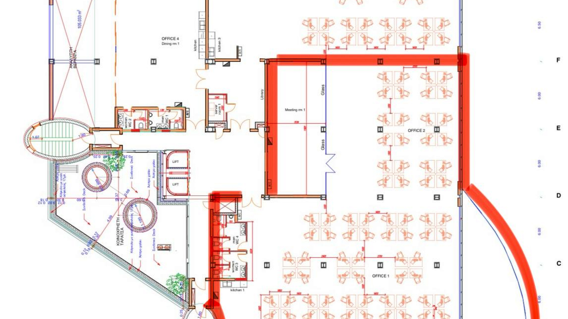Сдаётся офисное помещение в районе Agios Athanasios, Limassol на 1 этаже общей площадью 676 м², из которых 476 м² внутренняя площадь и 200 м² крытая и открытая веранды. Офис включает отдельные кабинеты и открытое пространство (можно переделать под себя), серверную/кладовую, кухню, 4 туалета. Здесь установлен raised floor и трёхфазная электрическая система с четырьмя счётчиками по 80 кВт на этаж. Здание построено в 2015 году, оборудовано двумя лифтами, двумя подземными парковочными этажами (-2 и -1) с 8 крытыми парковочными местами, а также открытой гостевой парковкой, при необходимости возможна аренда дополнительных комфортных парковочных мест на первом этаже за дополнительную плату. По запросу доступны видеонаблюдение, пожарная и охранная сигнализация, мебель, здание обслуживается компанией Unifair.