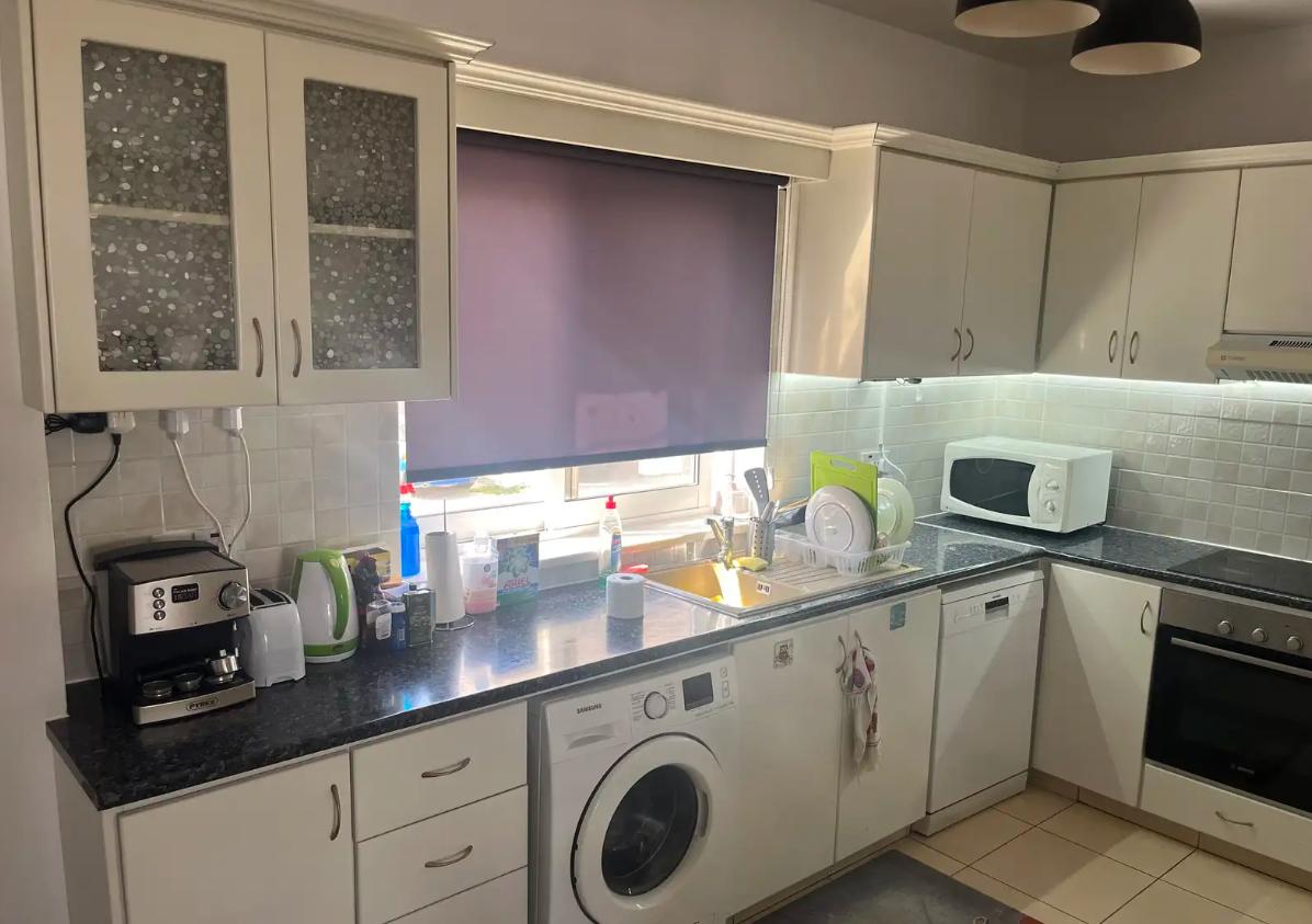 Сдаётся трёхспальная квартира в районе Universal, город Paphos, площадью 120 м2. Просторная квартира расположена на 1 этаже с удобной планировкой. В квартире имеется бытовая техника, мебель, кондиционеры во всех комнатах, камин, балкон и кладовая, кухня полностью оборудована необходимой техникой. Также имеется просторный руф гарден площадью около 100 м2 с зоной отдыха и барбекю. В доме предусмотрена крытая парковка и общий бассейн. Дом 2005 года постройки. Район является развитой частью города с удобной инфраструктурой.