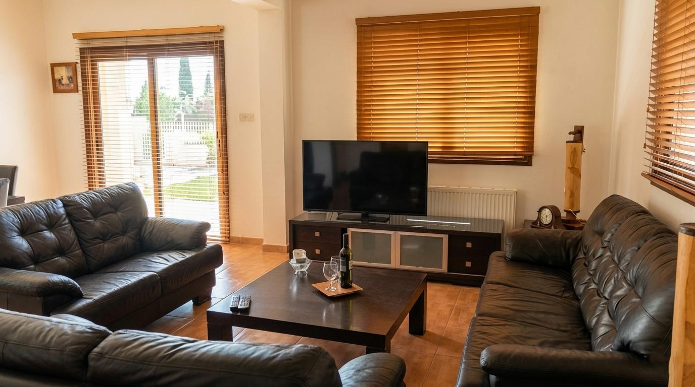 Сдаётся четырёхспальный дом в районе Perivolia, город Larnaca. Дом полностью меблирован и оборудован кондиционированием во всех помещениях, включает 4 спальни и 3 ванные комнаты. Общая площадь дома составляет 300 м², включая 220 м² внутренней площади и 80 м² веранд. Дом расположен на участке 1500 м² с ухоженным садом, деревьями, газоном и частным бассейном. На территории предусмотрены зоны отдыха на открытом воздухе, кладовая и крытая парковка на несколько автомобилей. Дом построен в 2011 году, класс энергоэффективности B+. Удобное расположение — всего 10 минут пешком до пляжа Faros, спокойный жилой район с доступом к инфраструктуре.