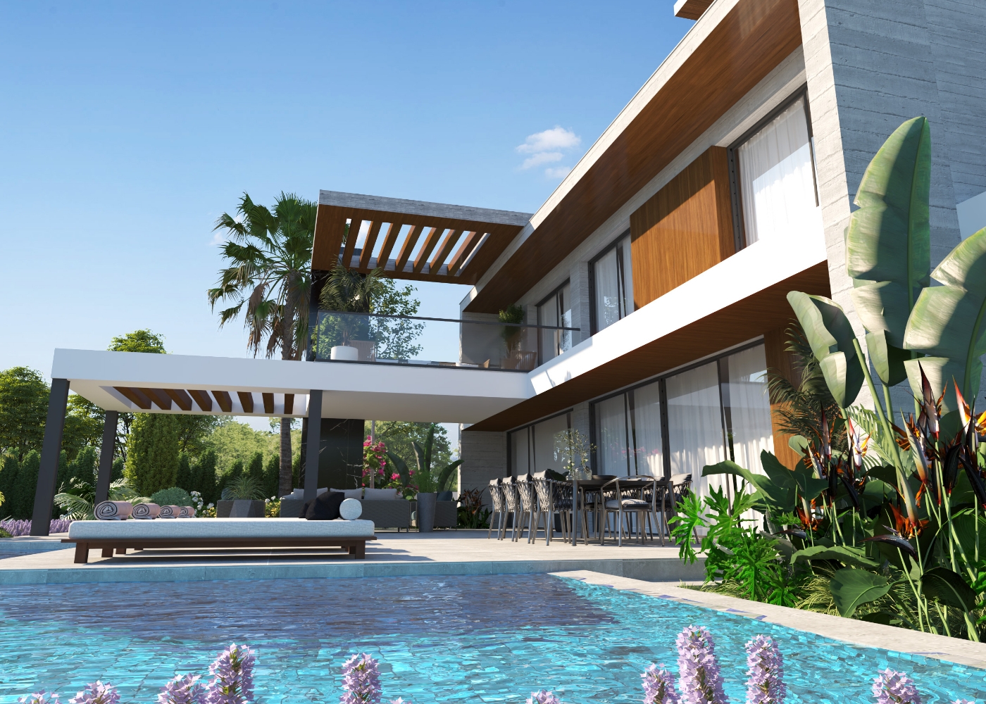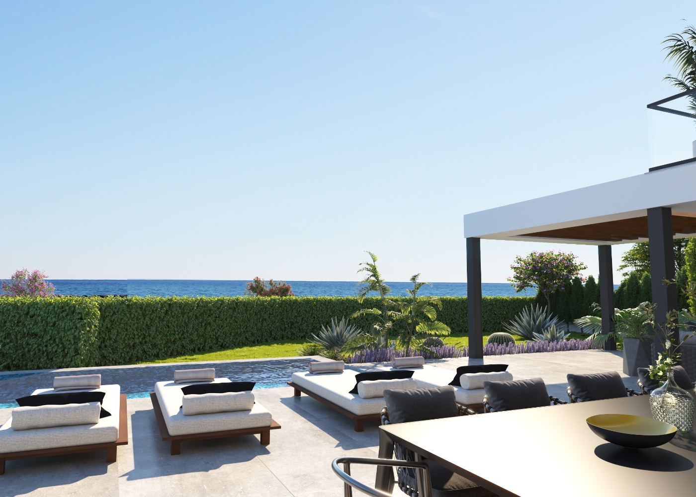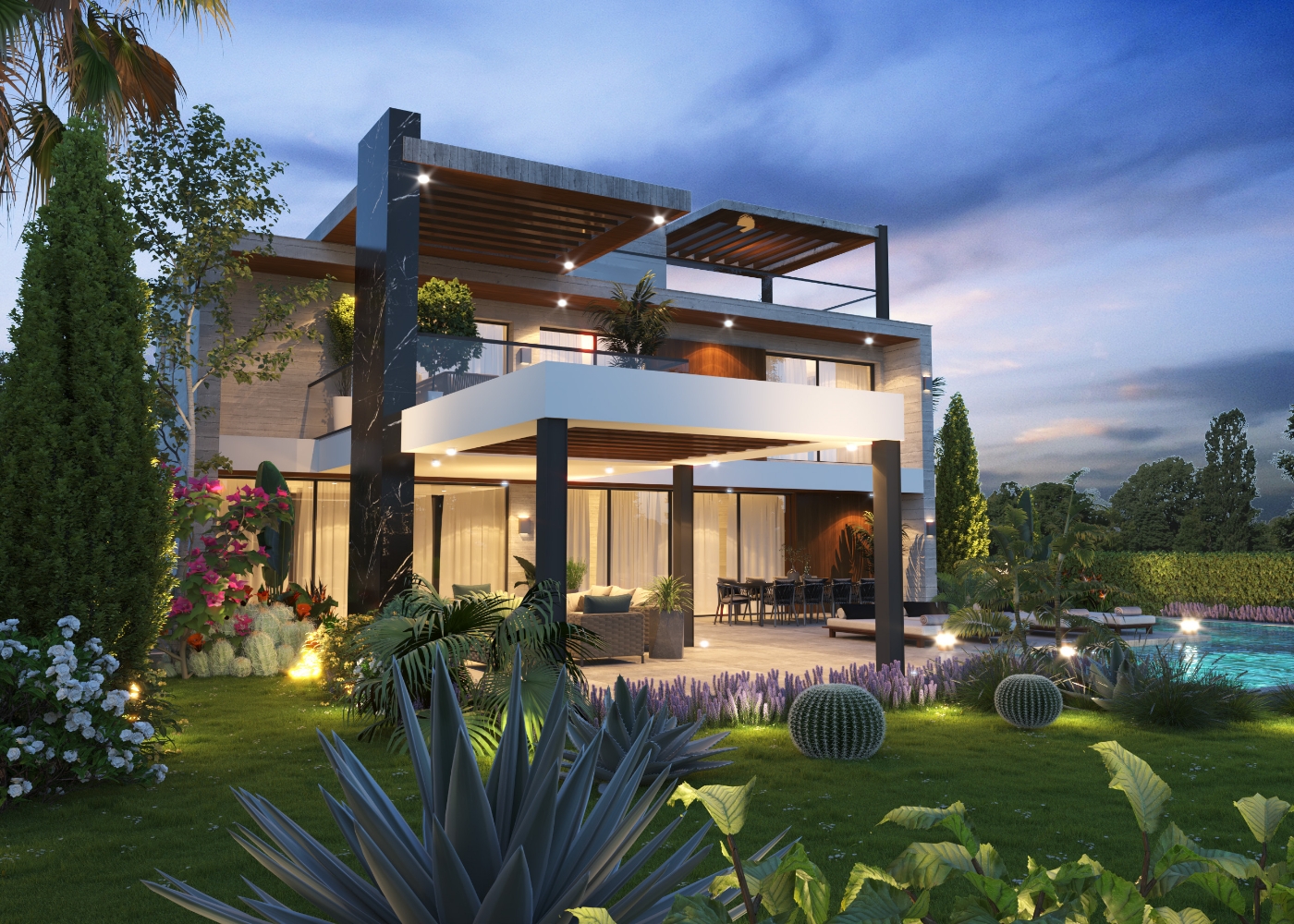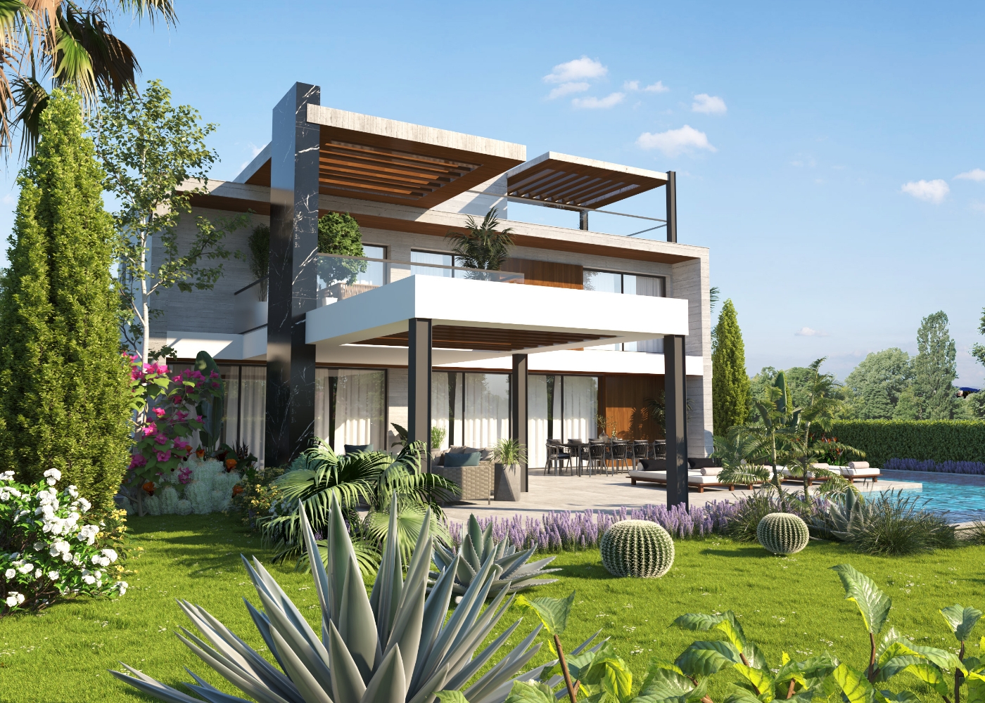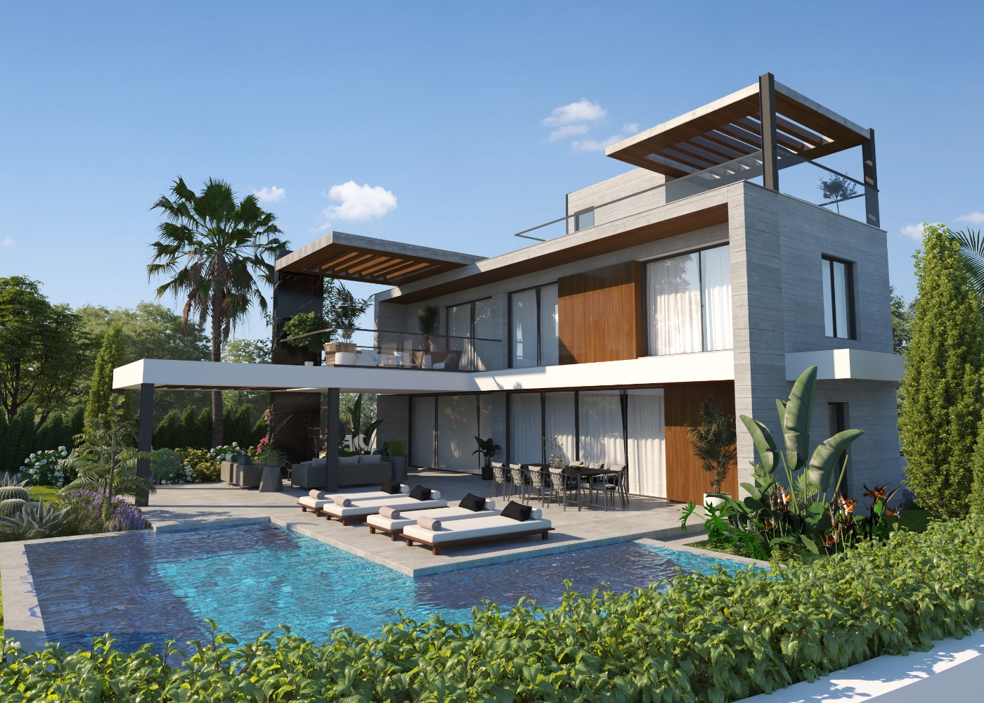 Продается вилла в районе Agia Thekla, Famagusta. На первом этаже есть просторная гостиная и кухня открытой планировки, а также большие крытые веранды. На втором этаже расположены три спальни, в том числе роскошная главная спальня с ванной комнатой, гардеробной и собственным балконом. На цокольном этаж есть прямой выход на две веранды, имеется несколько вариантов планировки дополнительных помещений, таких как тренажерный зал, игровая комната, сауна и многое другое. На крыше размещен сад с многофункциональным залом, идеально подходящим для отдыха и развлечений. На участке предусмотрен бассейн со встроенным гидромассажем.