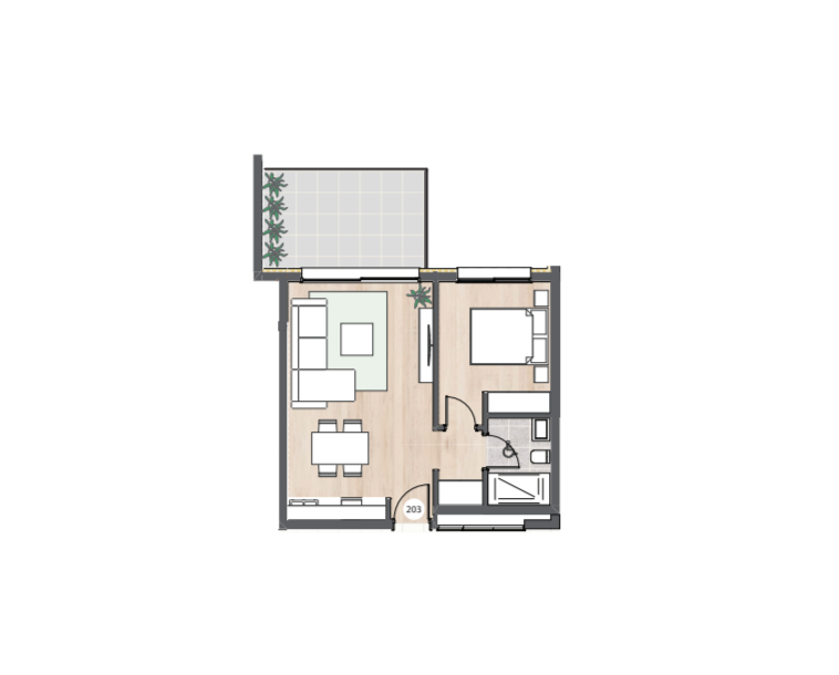 Каждая квартира в комплексе спроектирована с учетом максимального комфорта. В проекте предусмотрена гостиная и кухня открытой планировки, а также крытая веранда. Кроме того, имеется крытая парковка и индивидуальная кладовая.