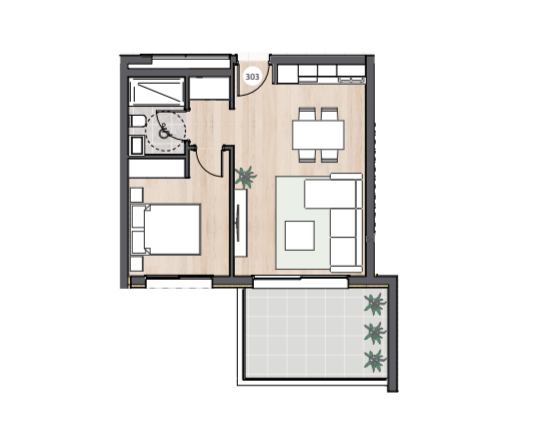 Каждая квартира в комплексе спроектирована с учетом максимального комфорта. В проекте предусмотрена гостиная и кухня открытой планировки, а также крытая веранда. Кроме того, имеется крытая парковка и индивидуальная кладовая.