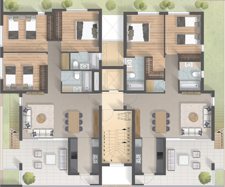 Этот энергоэффективный комплекс имеет рейтинг «А», что позволяет значительно уменьшить коммунальные расходы. Проектом также предусмотрена крытая парковка и кладовая для каждой квартиры.