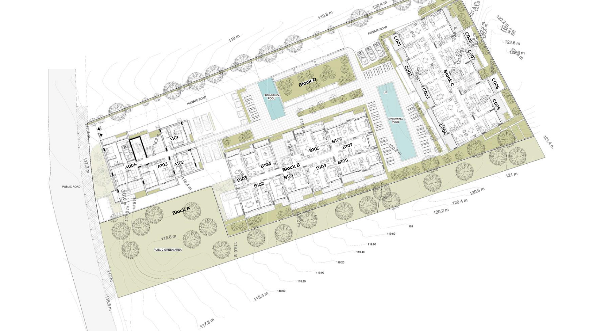 Расположение проекта еще больше усиливает его привлекательность, так как из отдельных квартир на первом этаже третьего здания открывается потрясающий вид на море, что создает идеальную средиземноморскую атмосферу.