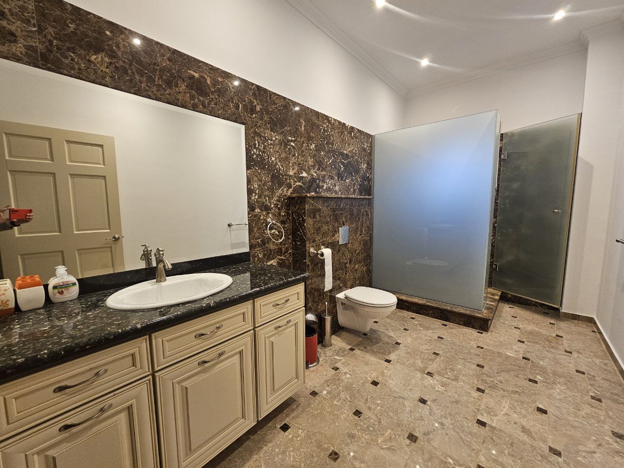 Продается красивый дом с 4 спальнями в районе Elias, Famagusta. Дом расположен на холме, с которого открывается панорамный вид на море и город. Резиденция в классическом американском стиле, полностью меблирована и оборудована бытовой техникой. В доме просторные жилые помещения и гардеробные комнаты. Каждая спальня с ванной комнатой. Есть также дополнительные жилые комнаты для персонала. Кроме того, в доме установлен камин. На участке расположены большой бассейн и закрытый гараж, ухоженный сад и детская площадка.