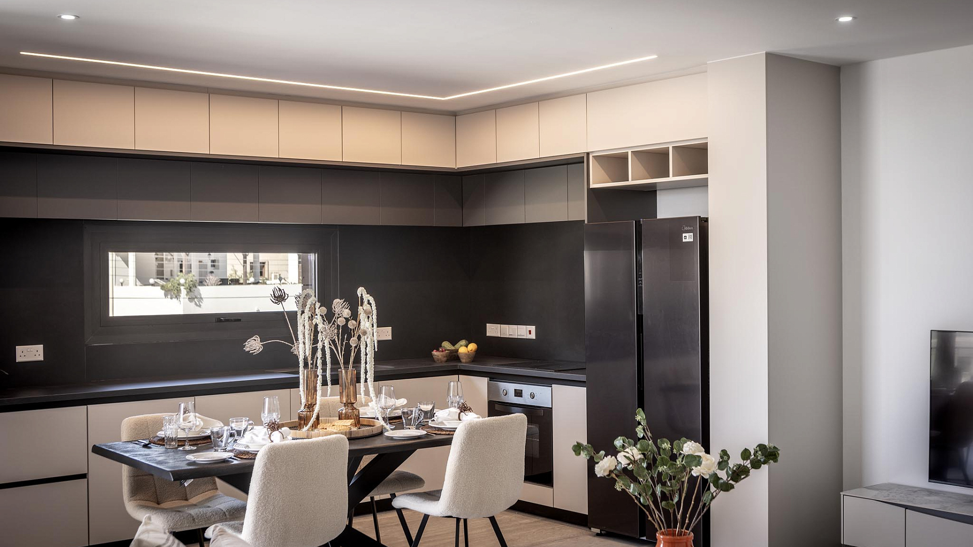 В комплексе представлены эксклюзивные апартаменты с двумя, тремя спальнями и коммерческие помещения с современным дизайном, который гармонично сочетает в себе архитектуру и элегантность среди пышной зелени.