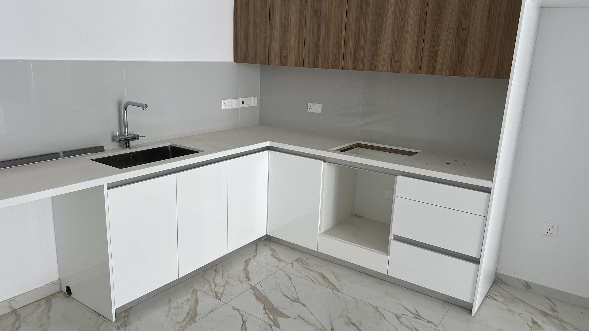 Теплые тона в интерьере и простая зональная планировка центральной комнаты при входе делают его достаточно функциональным и комфортным. Объединение кухни, столовой и диванной зоны в одно пространство увеличивает жилую площадь, а планировка становится очень функциональной и простой в использовании. Визуальный простор и освещенность достигаются за счет большого окна и широкого внешнего балкона, расположенного напротив входа, рядом с диванной зоной. В квартире продуманная система хранения. В спальнях есть большие встроенные шкафы.