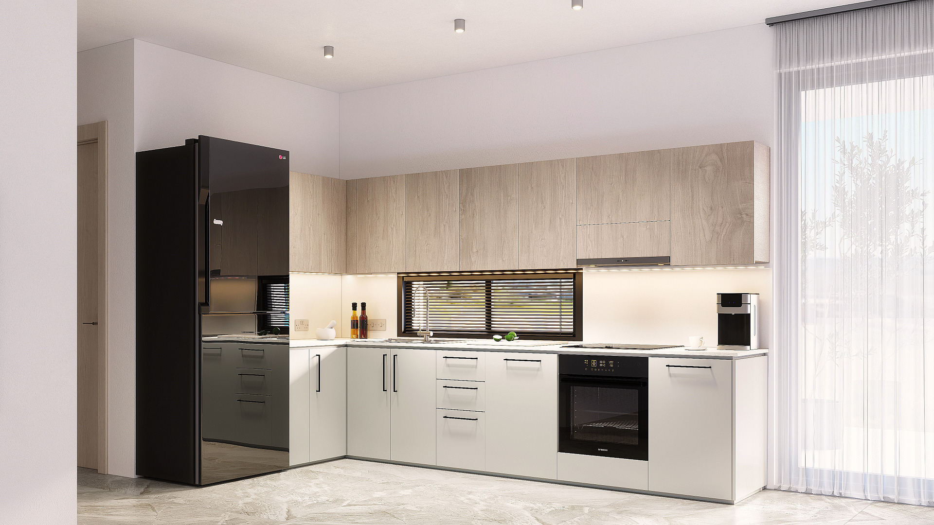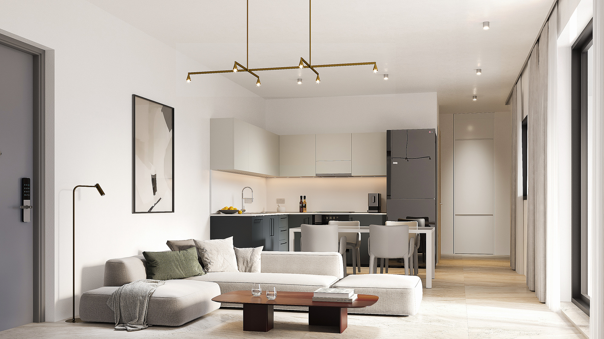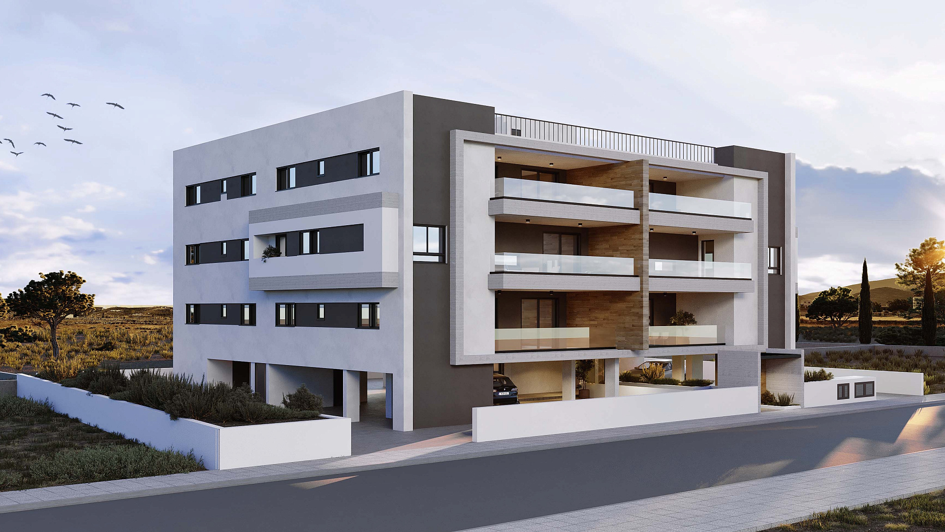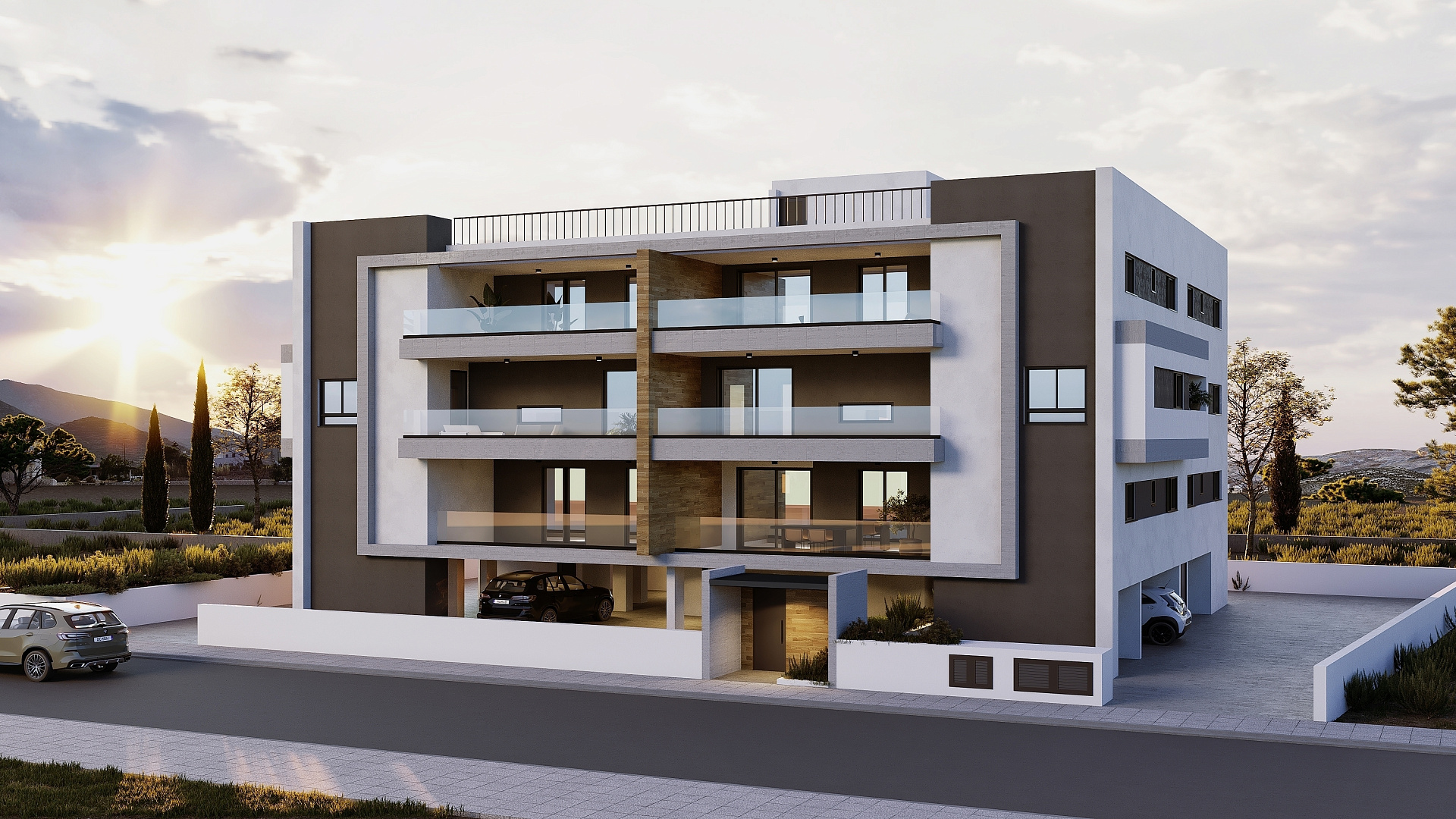 Каждая квартира в комплексе спроектирована с учетом максимального комфорта. В проекте предусмотрена гостиная и кухня открытой планировки, а также крытая веранда. Кроме того, имеется парковка и индивидуальная кладовая.