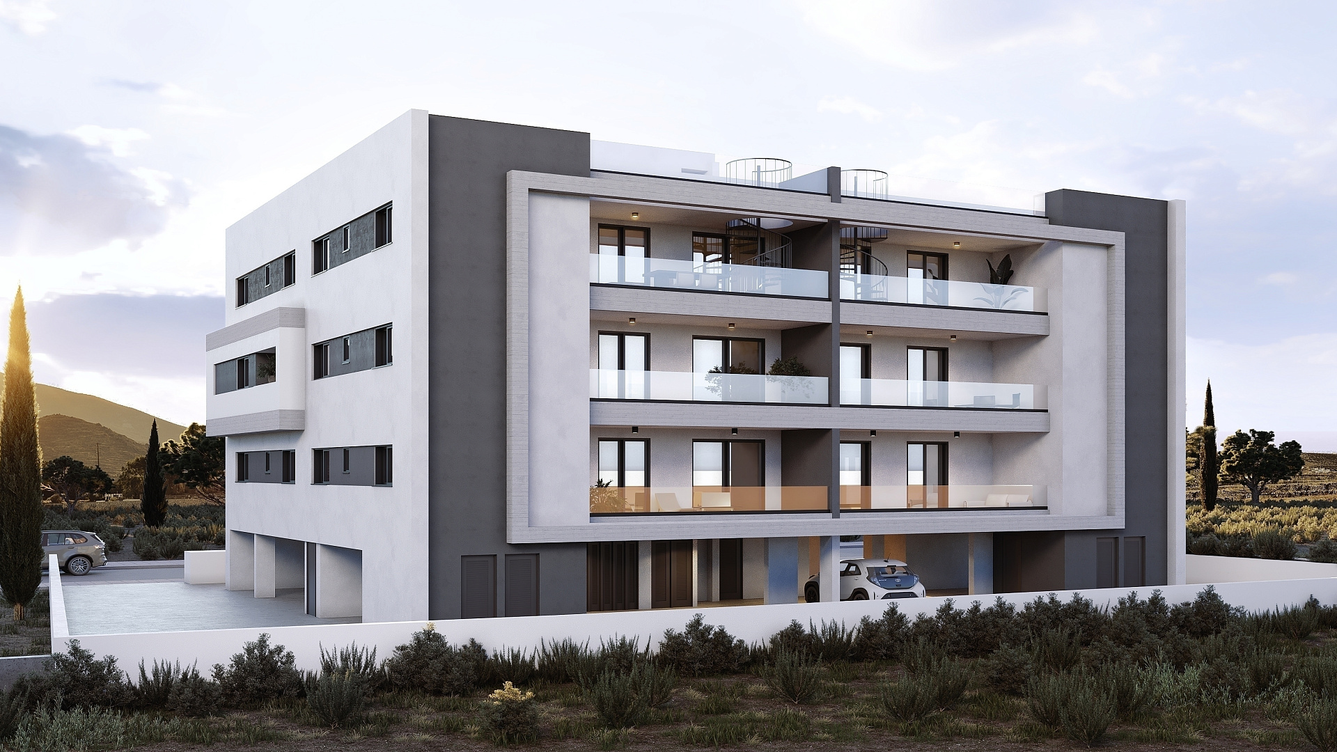 Каждая квартира в комплексе спроектирована с учетом максимального комфорта. В проекте предусмотрена гостиная и кухня открытой планировки, а также крытая веранда. Кроме того, имеется парковка и индивидуальная кладовая.