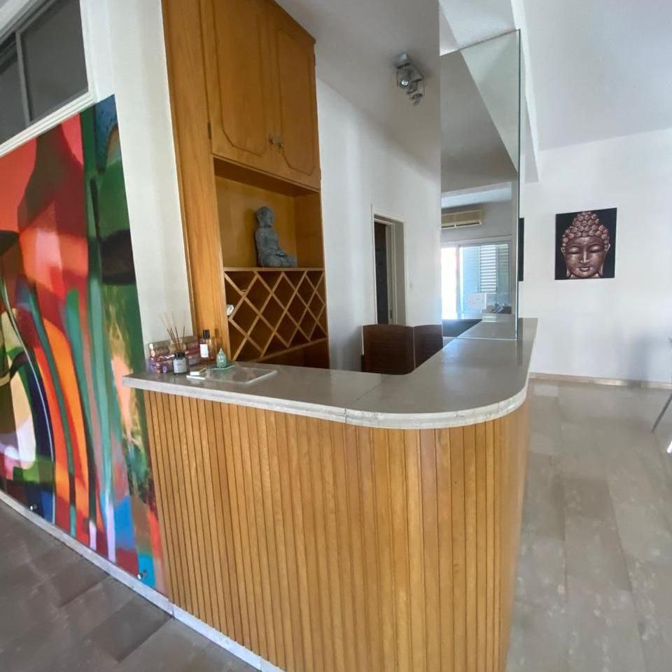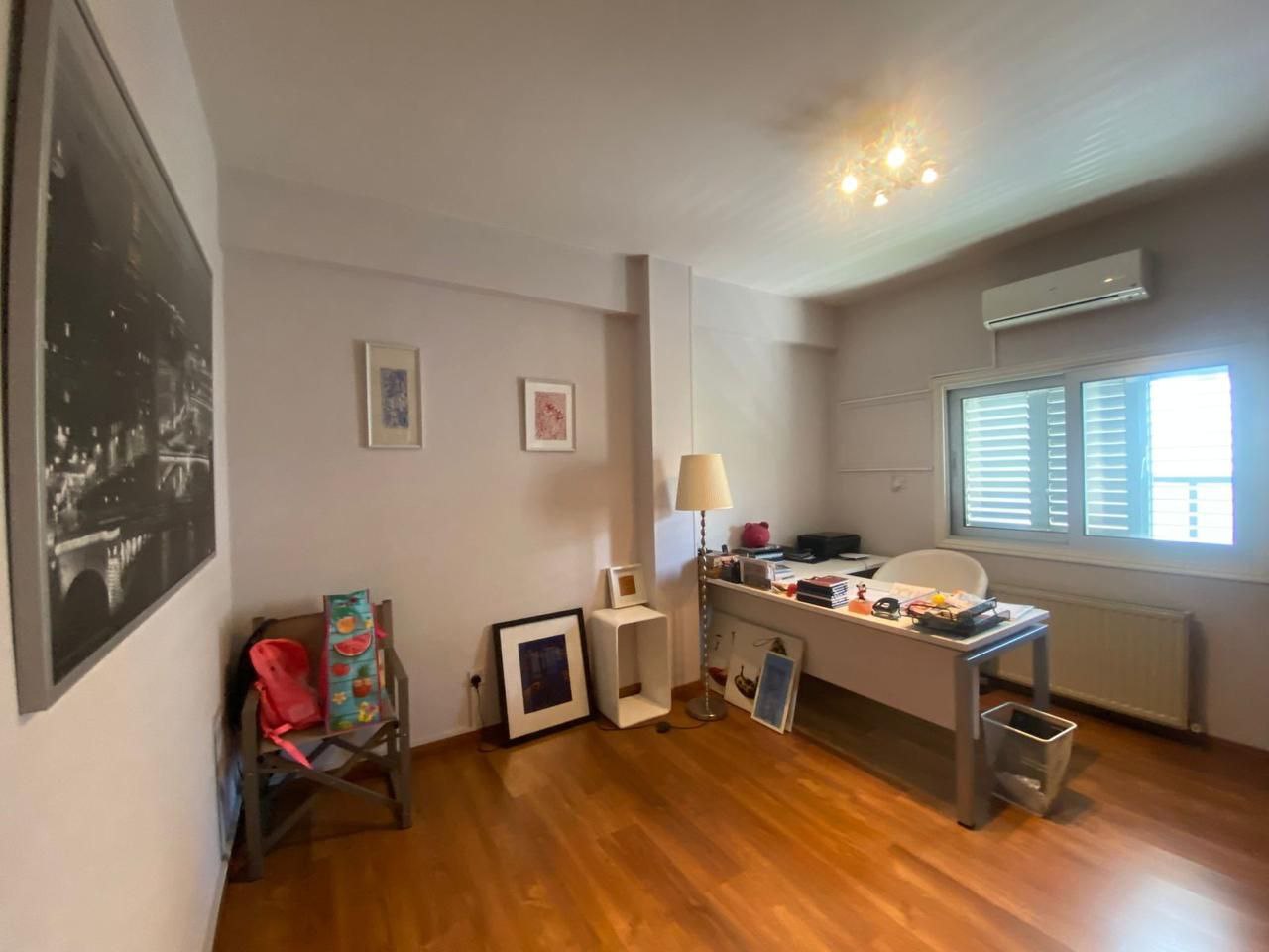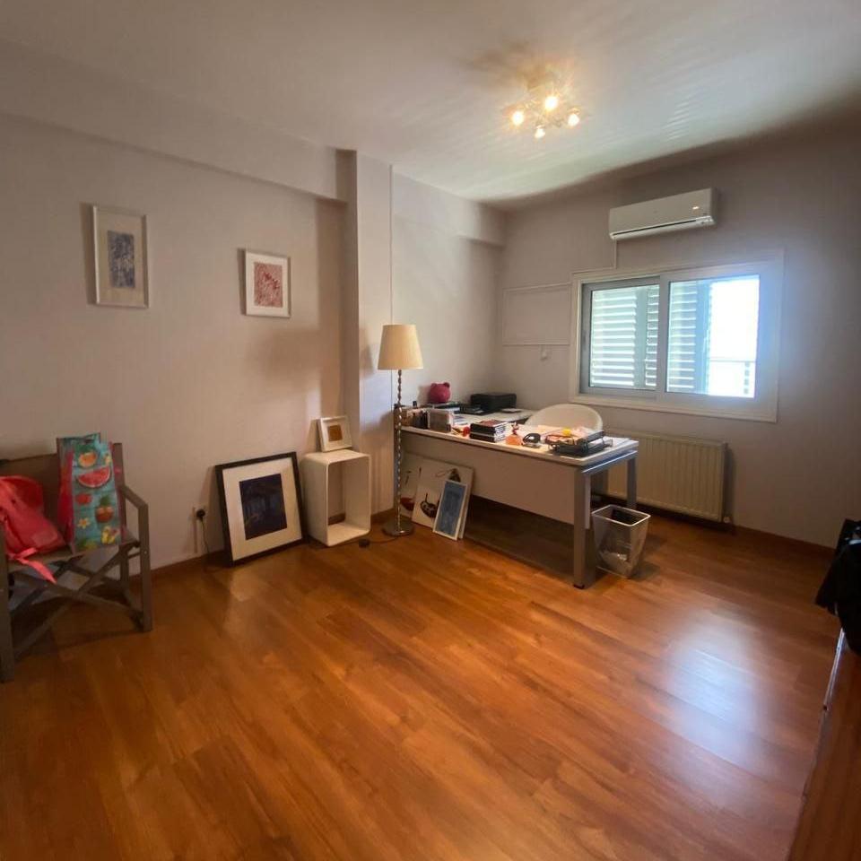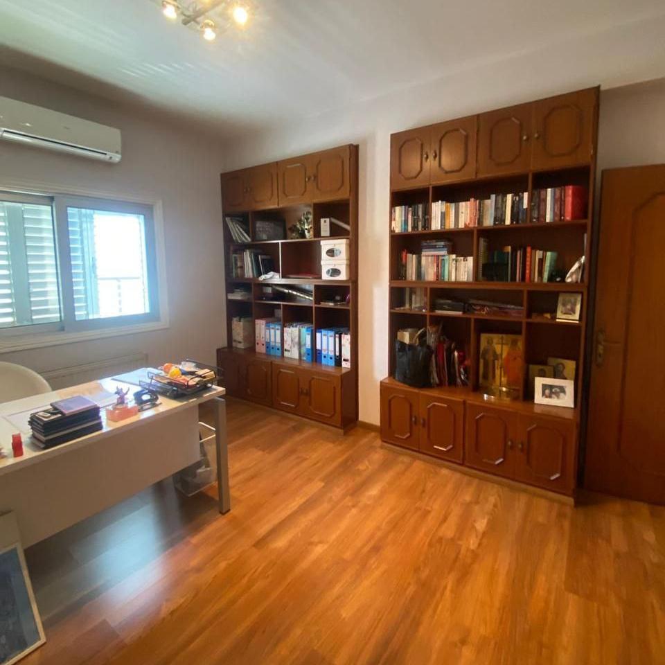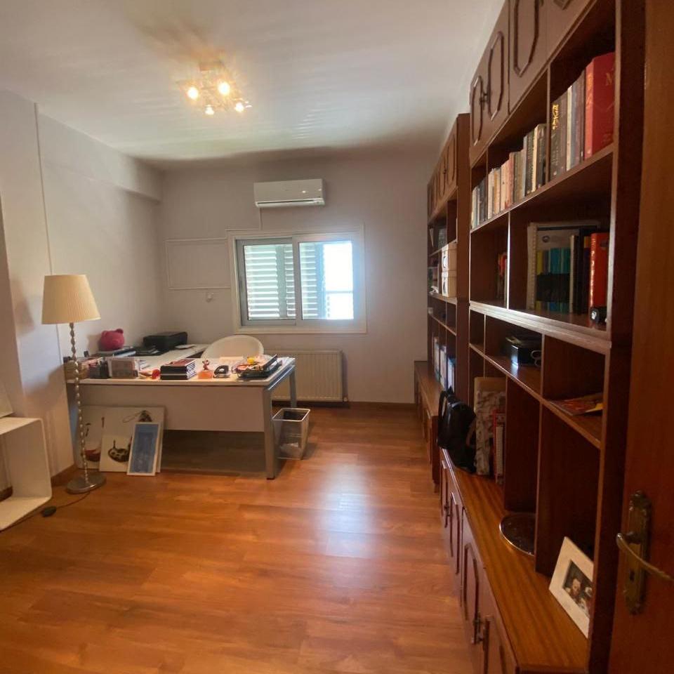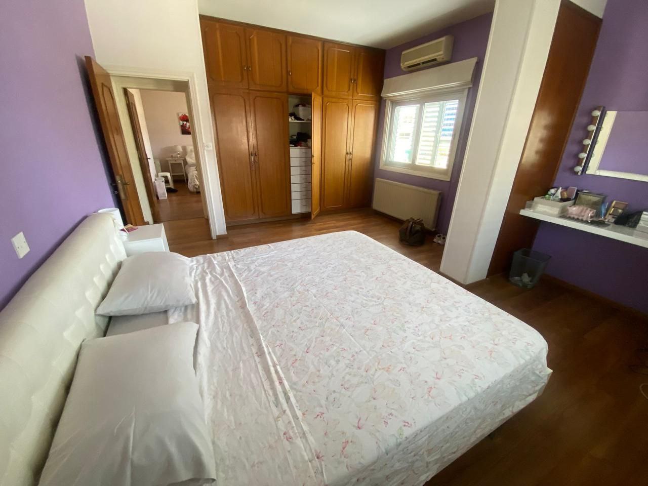 Продаётся четырёхспальная квартира в самом центре города Nicosia. Здание состоит из четырёх этажей, по одной квартире на каждом. Апартаменты занимают целый этаж и имеют внутреннюю площадь 185 м² и крытые веранды площадью 36 м². В планировке предусмотрено четыре спальни, одна из которых переоборудована в кабинет с книжной стеной, две ванные комнаты и два санузла. Квартира оснащена действующим камином из натурального камня, баром из дуба, полами из настоящего мрамора, частным лифтом, обслуживающим всего три квартиры, центральным отоплением и кондиционерами во всех помещениях. Имеется крытая парковка и закрытый въезд. Кухня выполнена из натурального дуба, предусмотрены обширные системы хранения и отдельная кладовая. Право собственности оформлено на владельца.