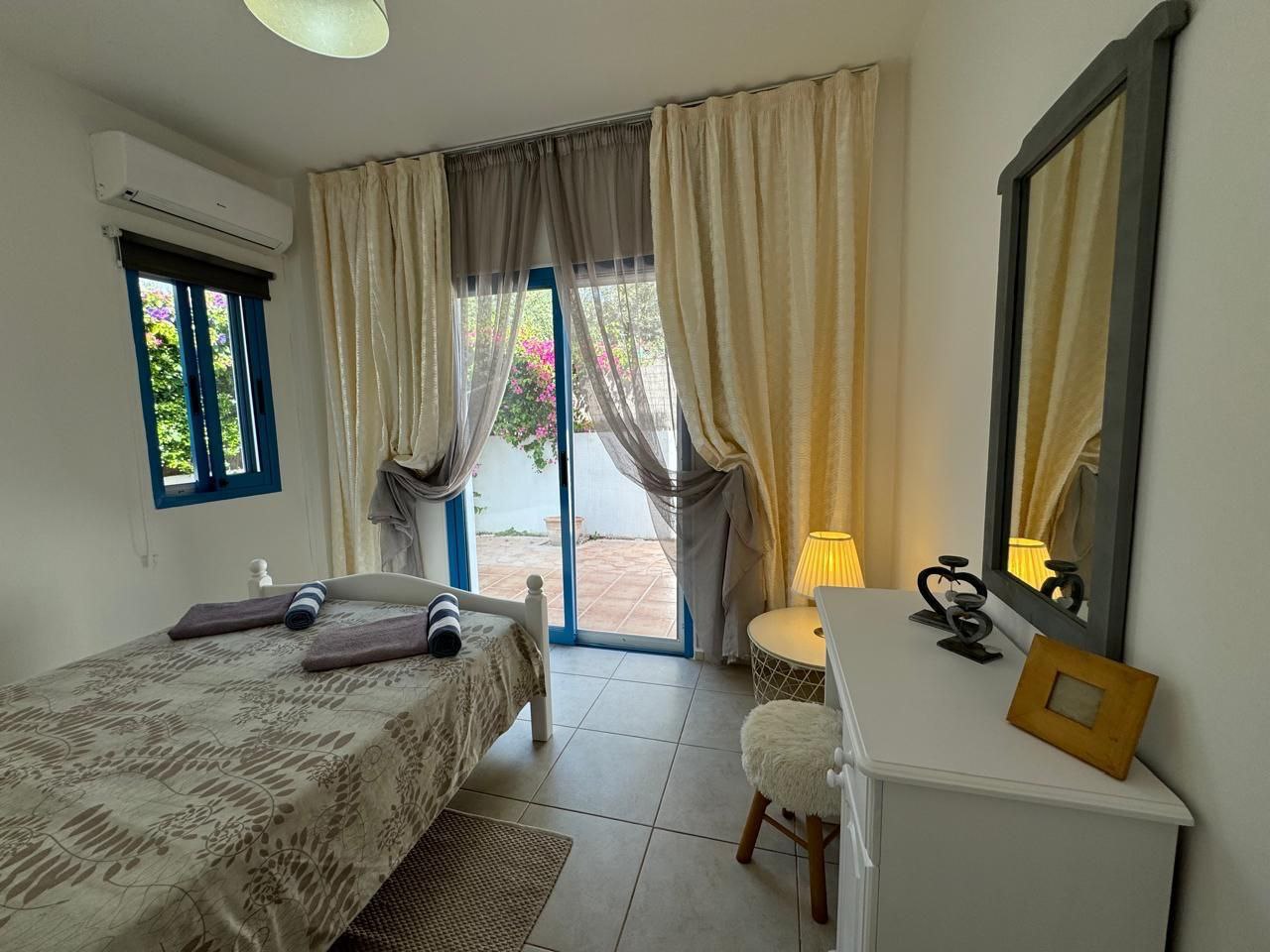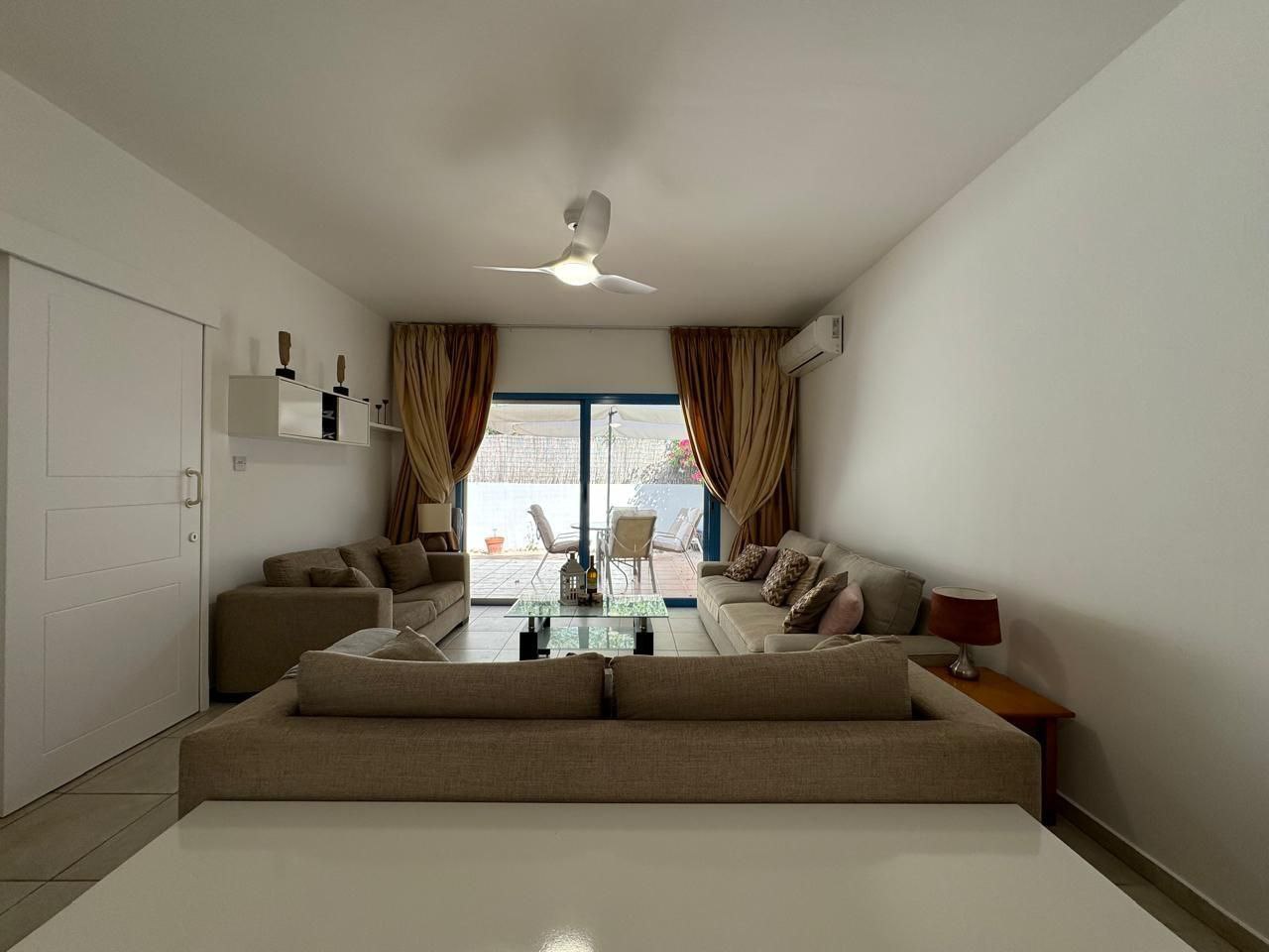 Продаются 2 спальные апартаменты на ground floor в закрытом небольшом комплексе с бассейном. Есть вся необходимая мебель и бытовая техника. Новые инверторные кондиционеры. Есть своя веранда. Есть титул. Парковка открытая.