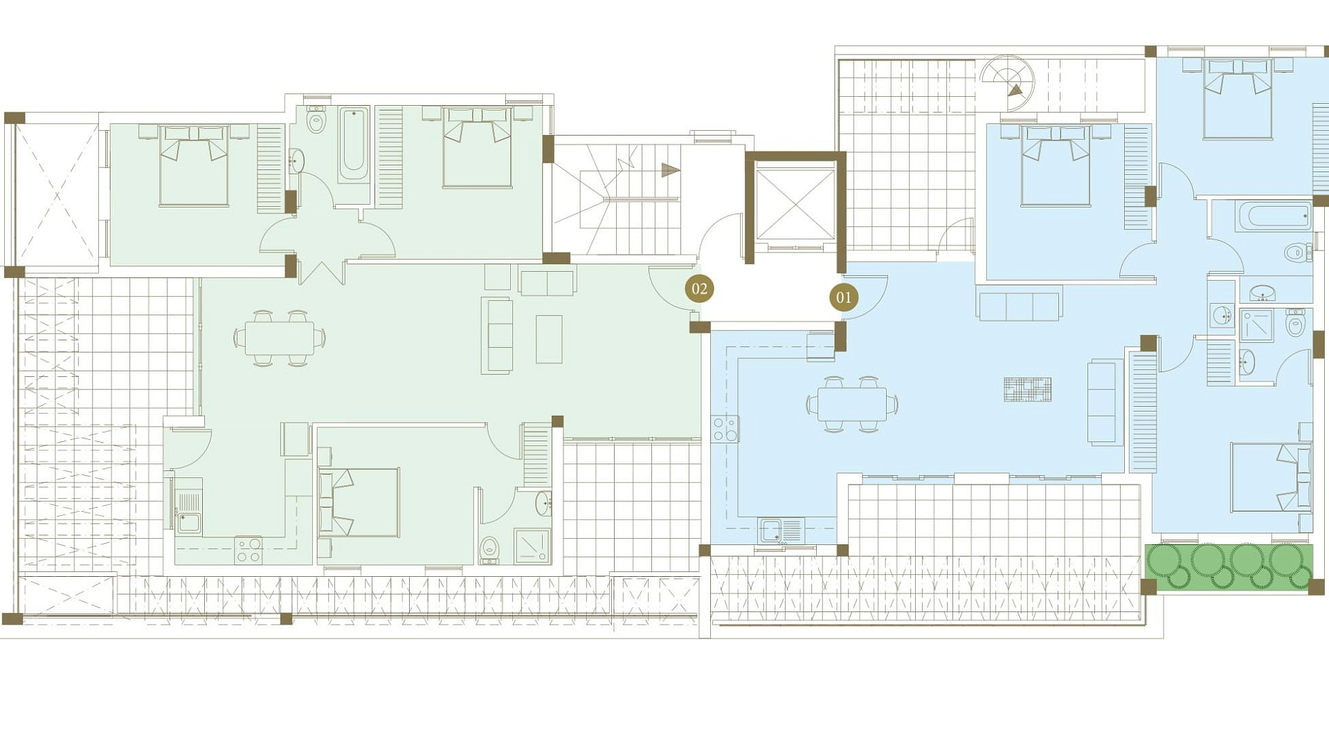 Комплекс состоит всего из десяти просторных и эксклюзивных апартаментов, каждый из которых имеет собственный характер и продуманную планировку. Жителям обеспечена частная подземная парковка и индивидуальные кладовые помещения. Апартаменты отличаются высоким качеством отделки, энергоэффективными материалами, стильными итальянскими или кипрскими кухнями, сантехникой премиум-класса и современными системами тепло- и звукоизоляции.