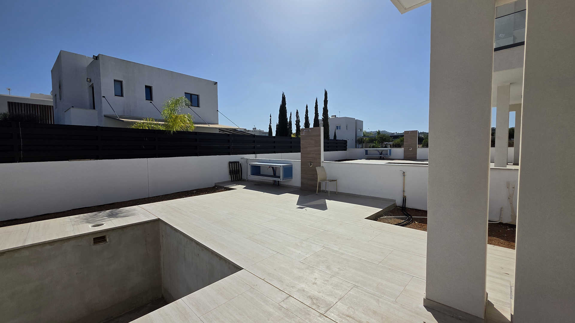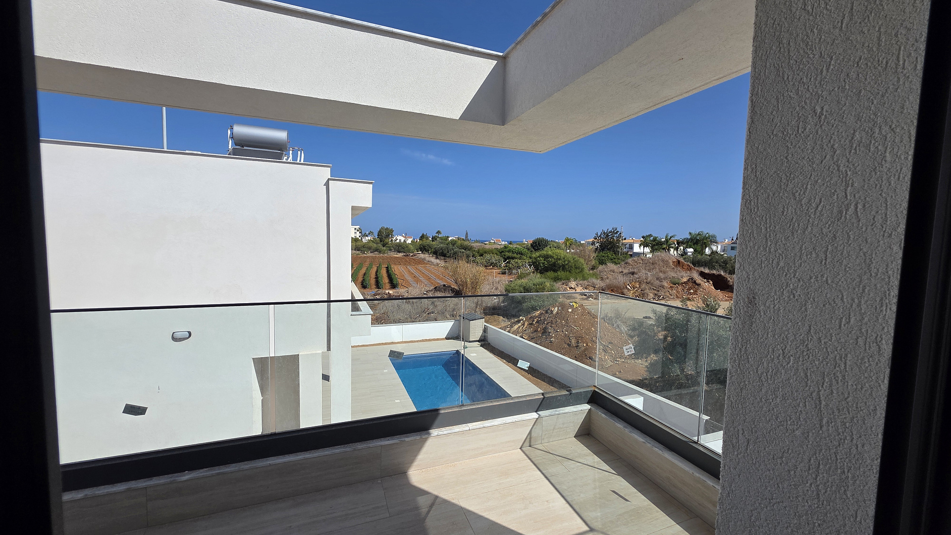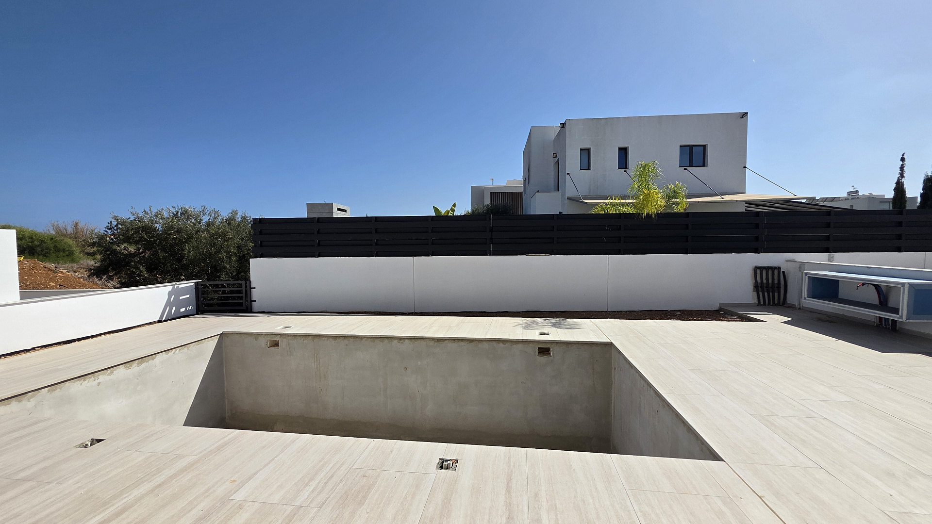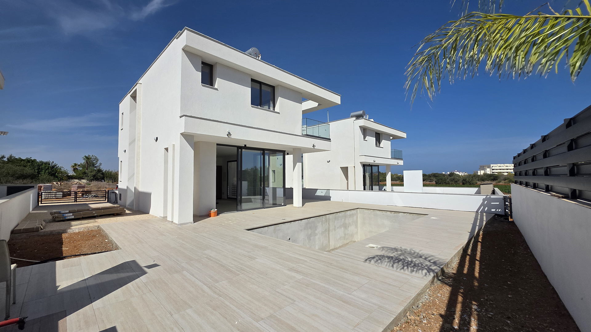 Продается современная вилла с 5 спальнями, расположенная в районе Famagusta, Protaras. Недвижимость распределена на три уровня. В цокольном этаже находятся две спальни и одна общая ванная комната, из каждой спальни есть выход на небольшой балкон через раздвижные двери. На первом этаже расположена гостиная открытой планировки с кухней и небольшим островом, а также спальня для гостей с собственной ванной комнатой. Из гостиной есть прямой выход в сад с большим частным бассейном. Во дворе предусмотрено парковочное место. На втором этаже находятся три спальни. Главная спальня располагает собственной ванной комнатой и балконом. Также на этаже есть дополнительная общая ванная комната. Во всех спальнях установлены встроенные шкафы, а на этаже имеется ниша для стиральной и сушильной машин. Планировка виллы продумана и удобна как для постоянного проживания, так и для отдыха.