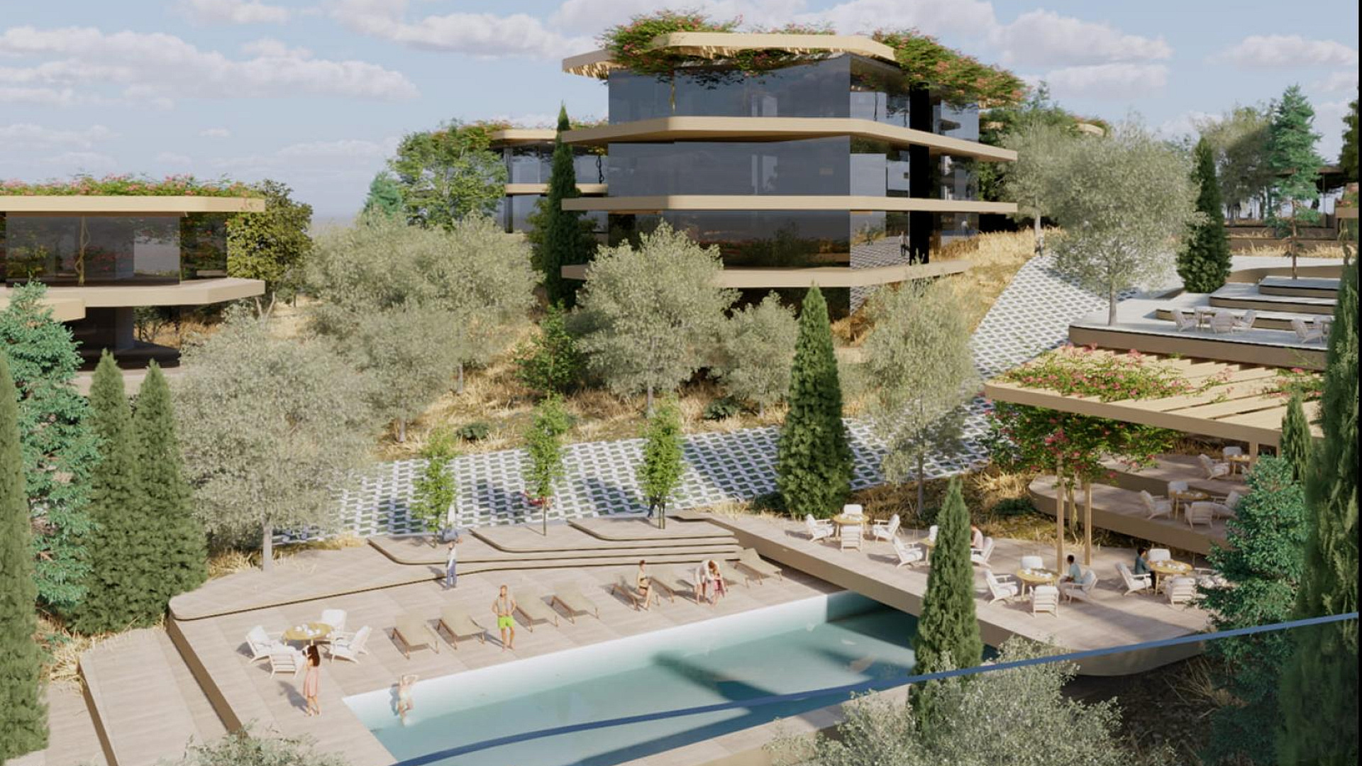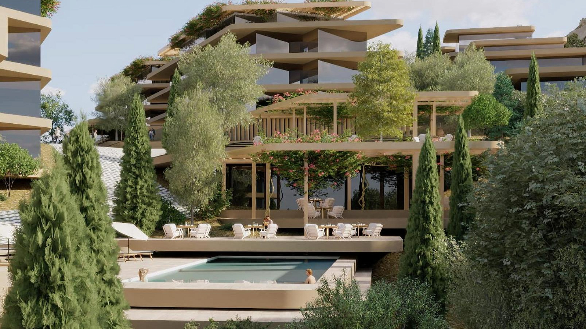 Каждая квартира в комплексе спроектирована с учетом максимального комфорта. В проекте предусмотрена гостиная и кухня открытой планировки, а также крытая веранда. Кроме того, имеется крытая парковка и индивидуальная кладовая. На территории комплекса есть бассейн.