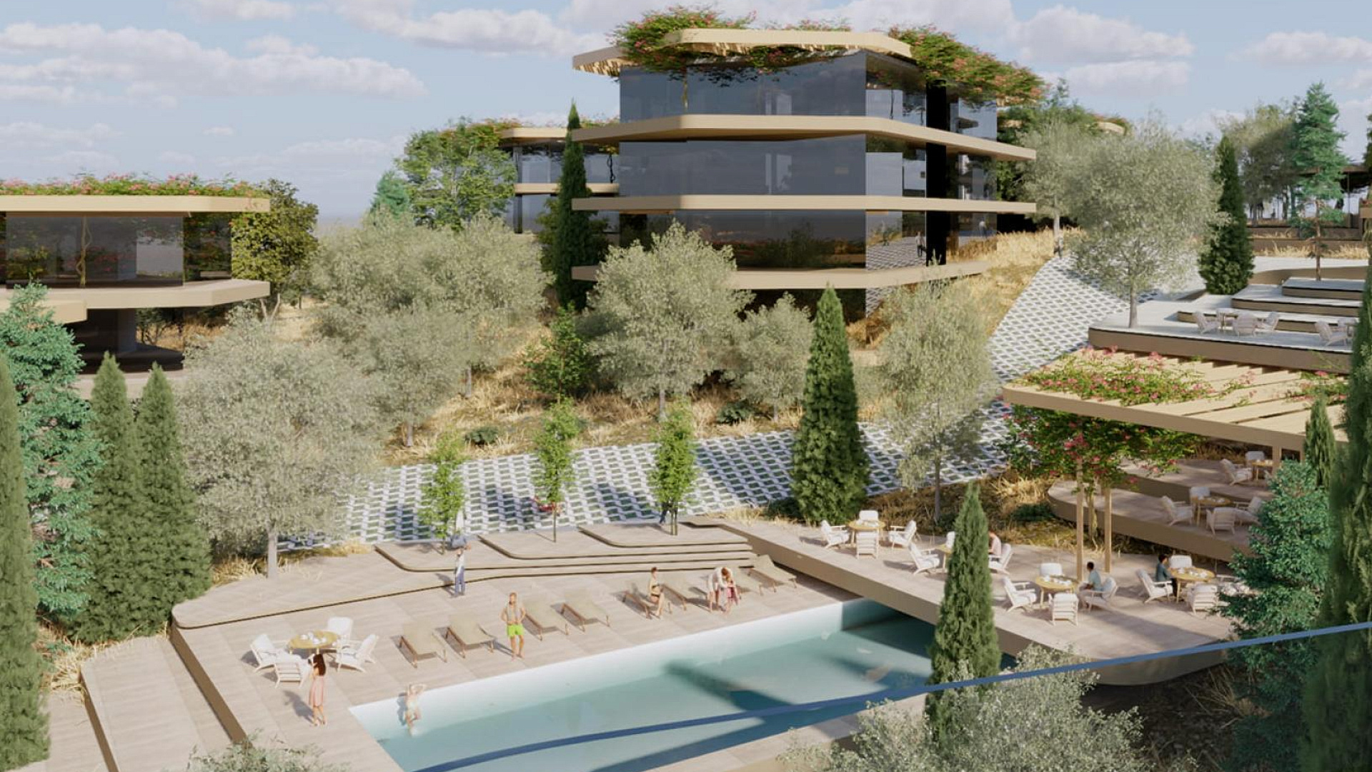 Каждая квартира в комплексе спроектирована с учетом максимального комфорта. В проекте предусмотрена гостиная и кухня открытой планировки, а также крытая веранда. Кроме того, имеется крытая парковка и индивидуальная кладовая. На территории комплекса есть бассейн.