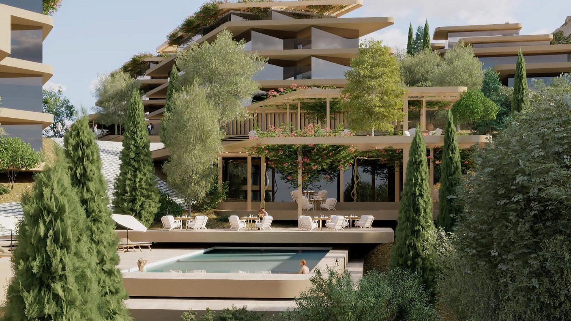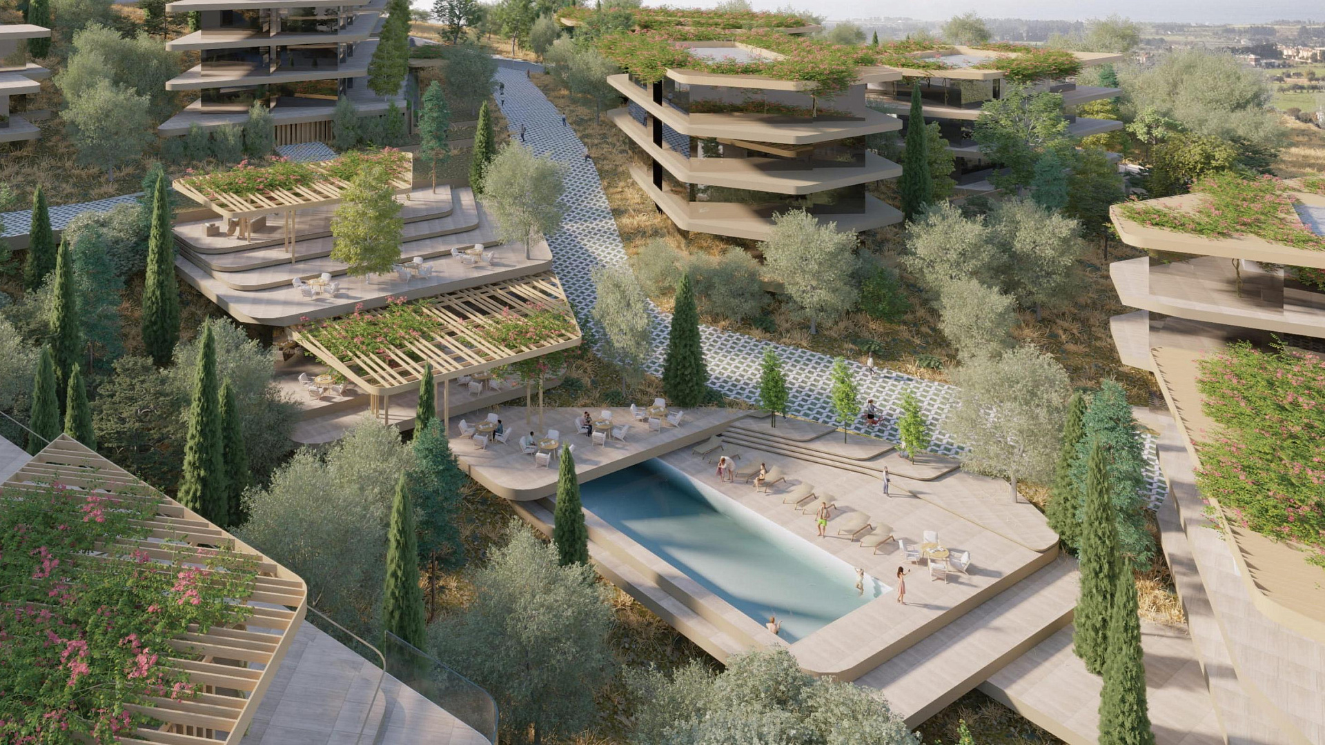 Каждая квартира в комплексе спроектирована с учетом максимального комфорта. В проекте предусмотрена гостиная и кухня открытой планировки, а также крытая веранда. Кроме того, имеется крытая парковка и индивидуальная кладовая. На территории комплекса есть бассейн.