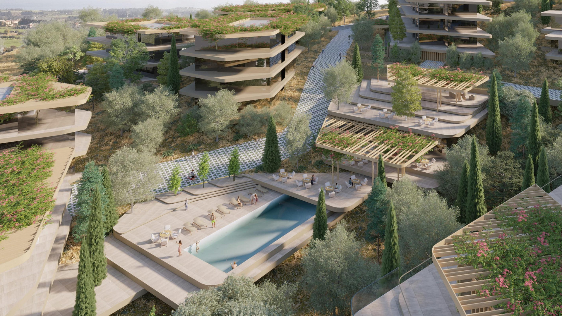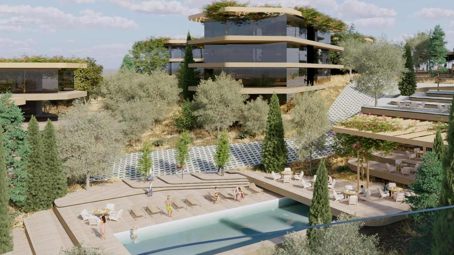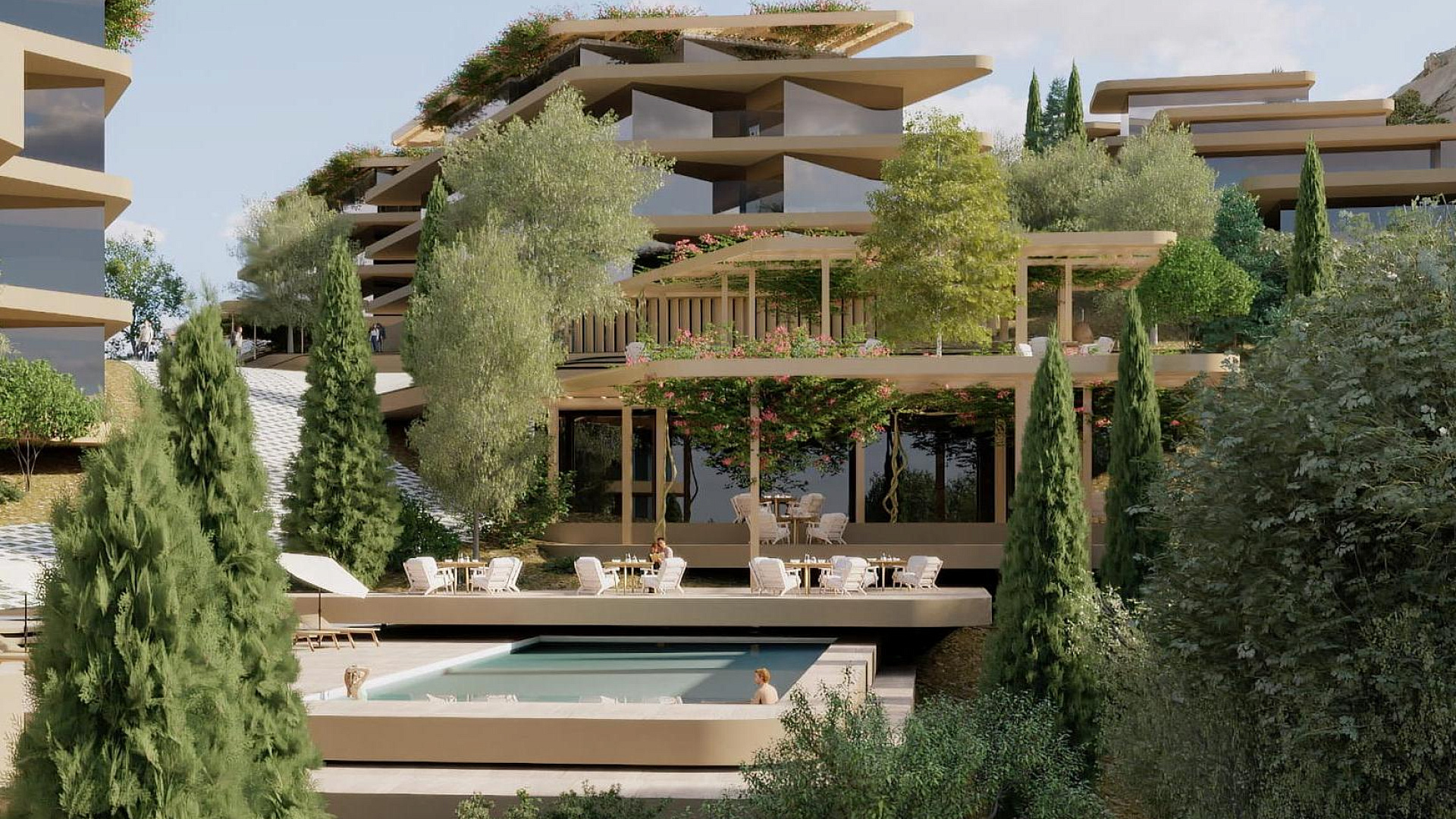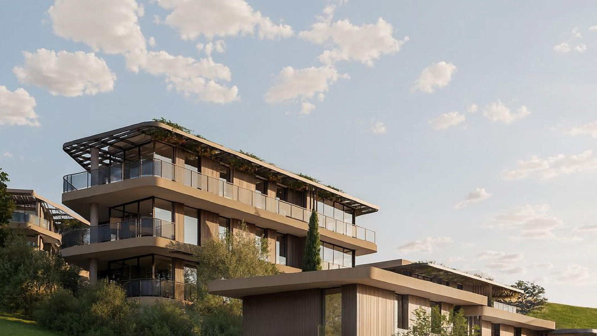 Каждая квартира в комплексе спроектирована с учетом максимального комфорта. В проекте предусмотрена гостиная и кухня открытой планировки, а также крытая веранда. Кроме того, имеется крытая парковка и индивидуальная кладовая. На территории комплекса есть бассейн.