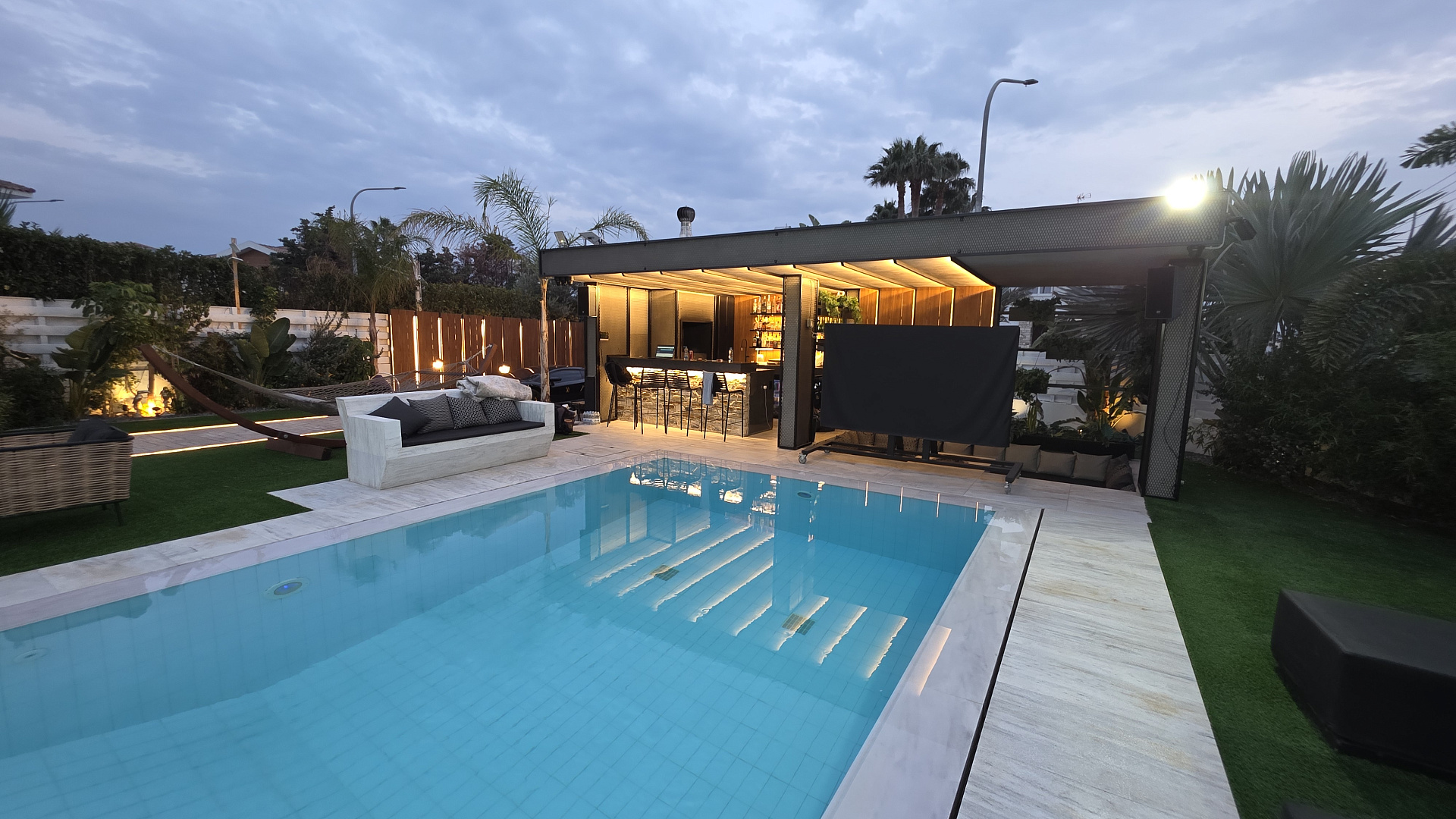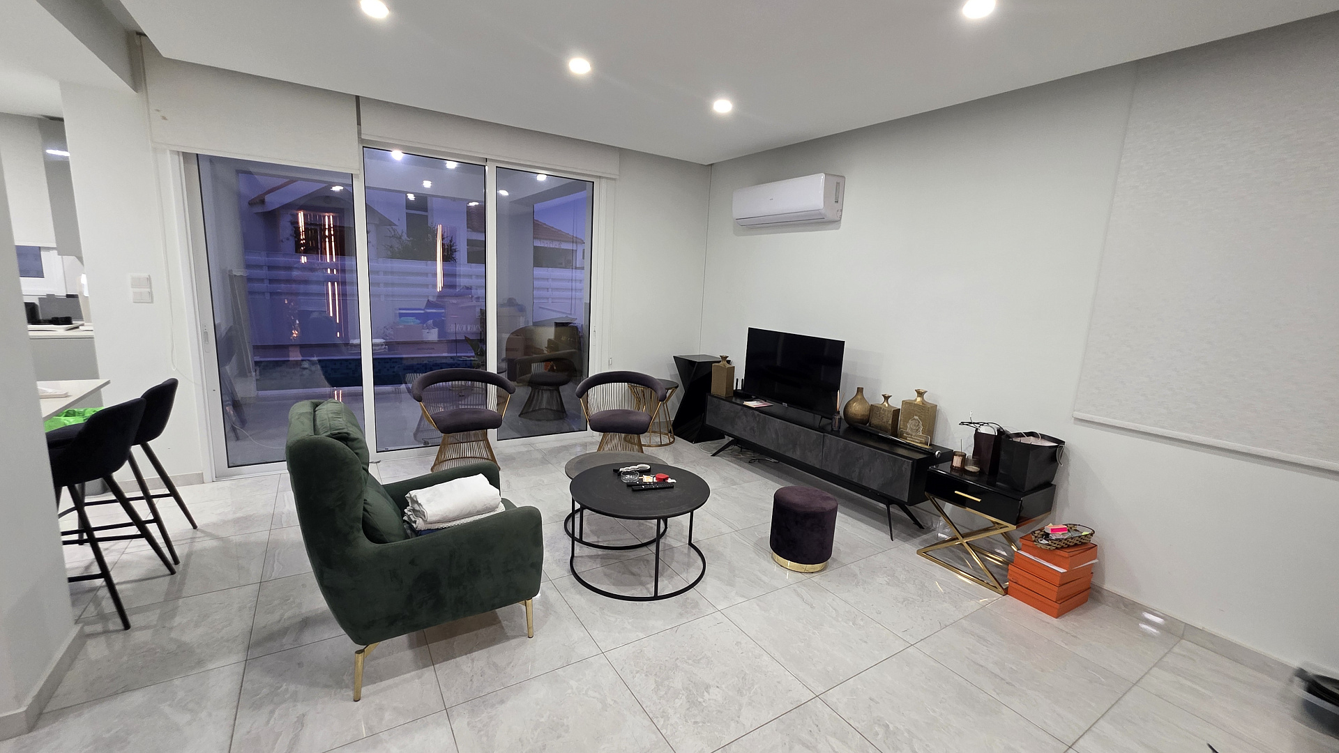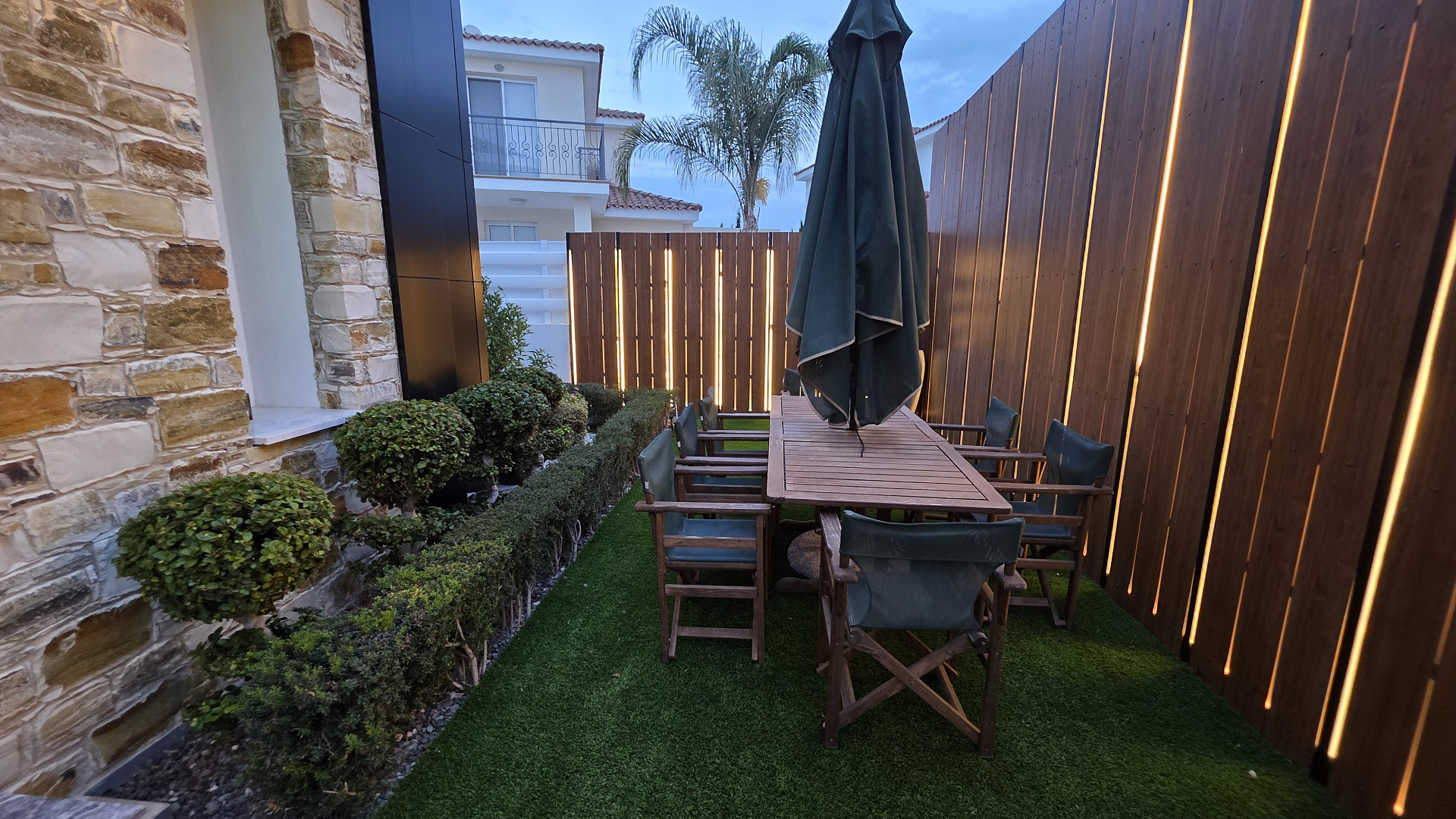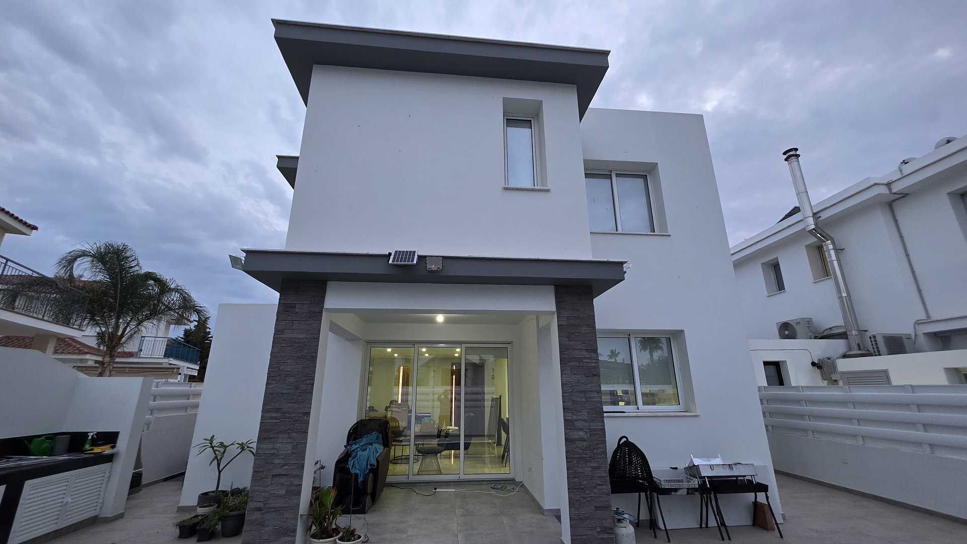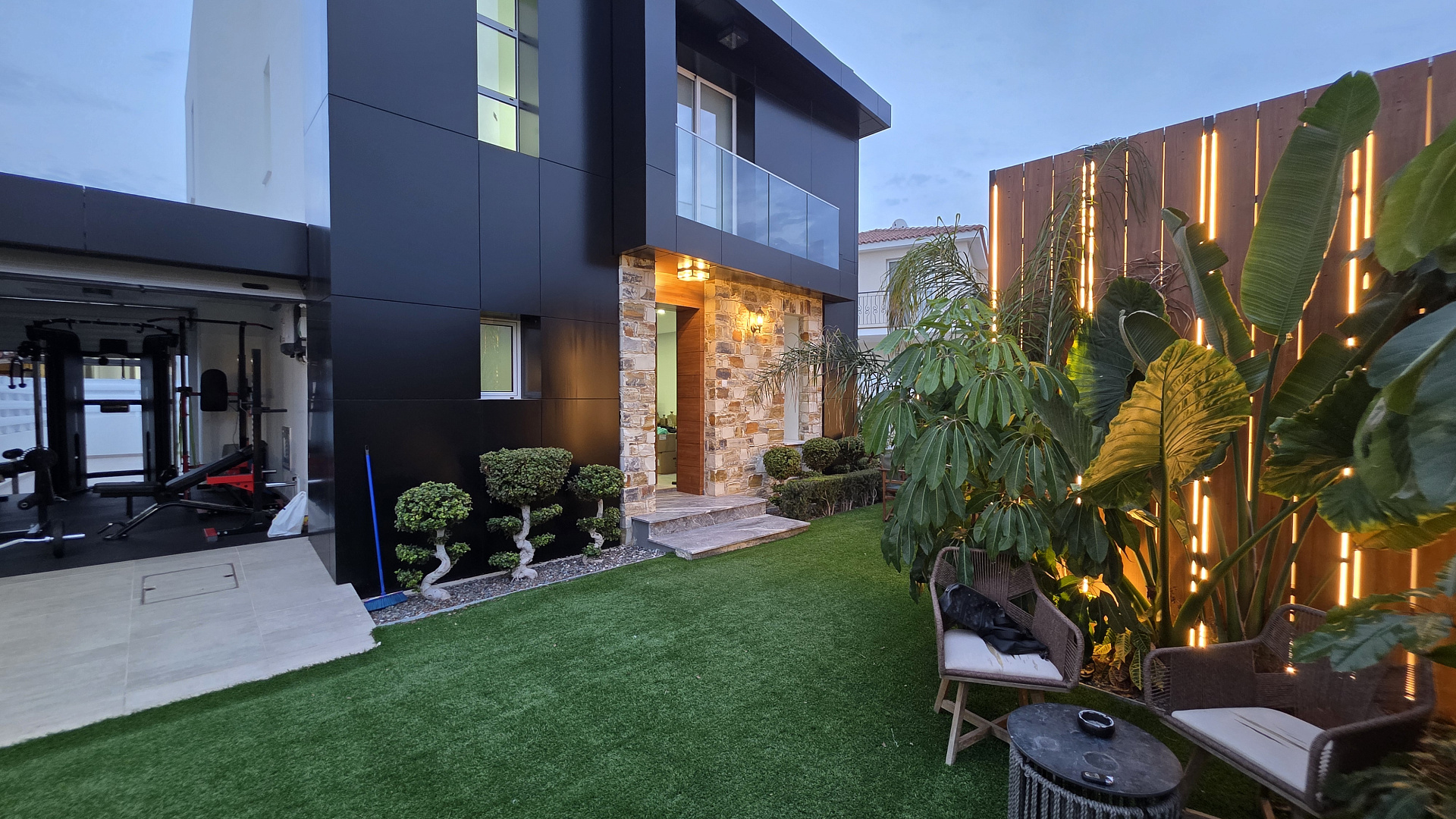 Виллы полностью меблированы роскошной мебелью Andreotti и оснащены техникой Neff и Samsung. Установлены премиальные аудиосистемы в помещениях и на улице, более шести телевизоров с диагональю 60–70 дюймов, а также интегрированные системы «умного дома», видеонаблюдения и сигнализации с ИИ-поддержкой. Управление охраной и воротами осуществляется через мобильное приложение.