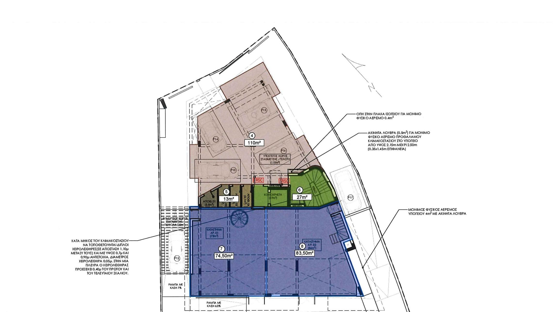 -Магазины: магазин 01 - 75 м2, мезонин 37м2; магазин 02 - 84 м2, мезонин 42 м2