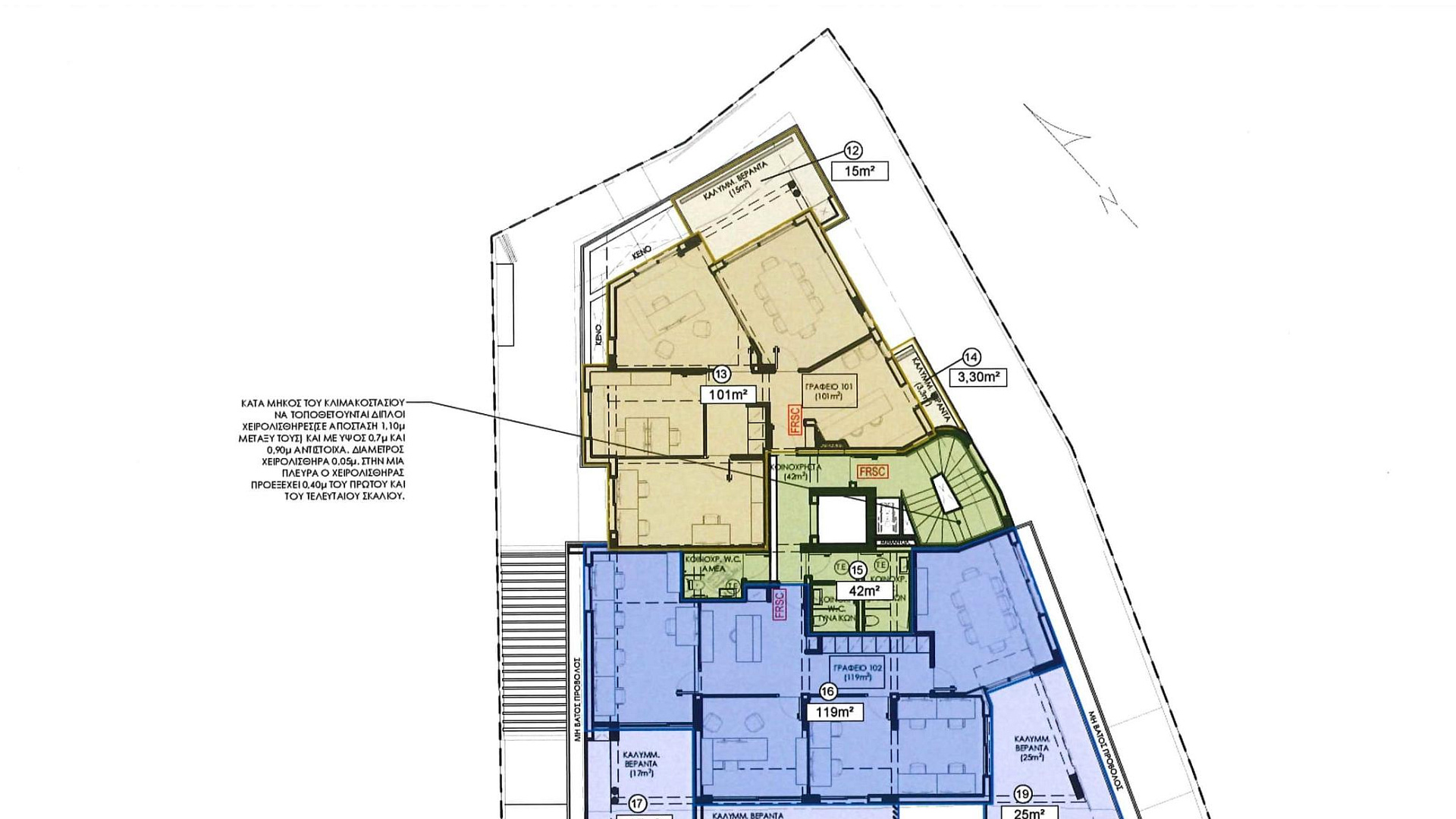 -Офисы: (1-й этаж) офис 101 - 101 м2; офис 102 - 119 м2