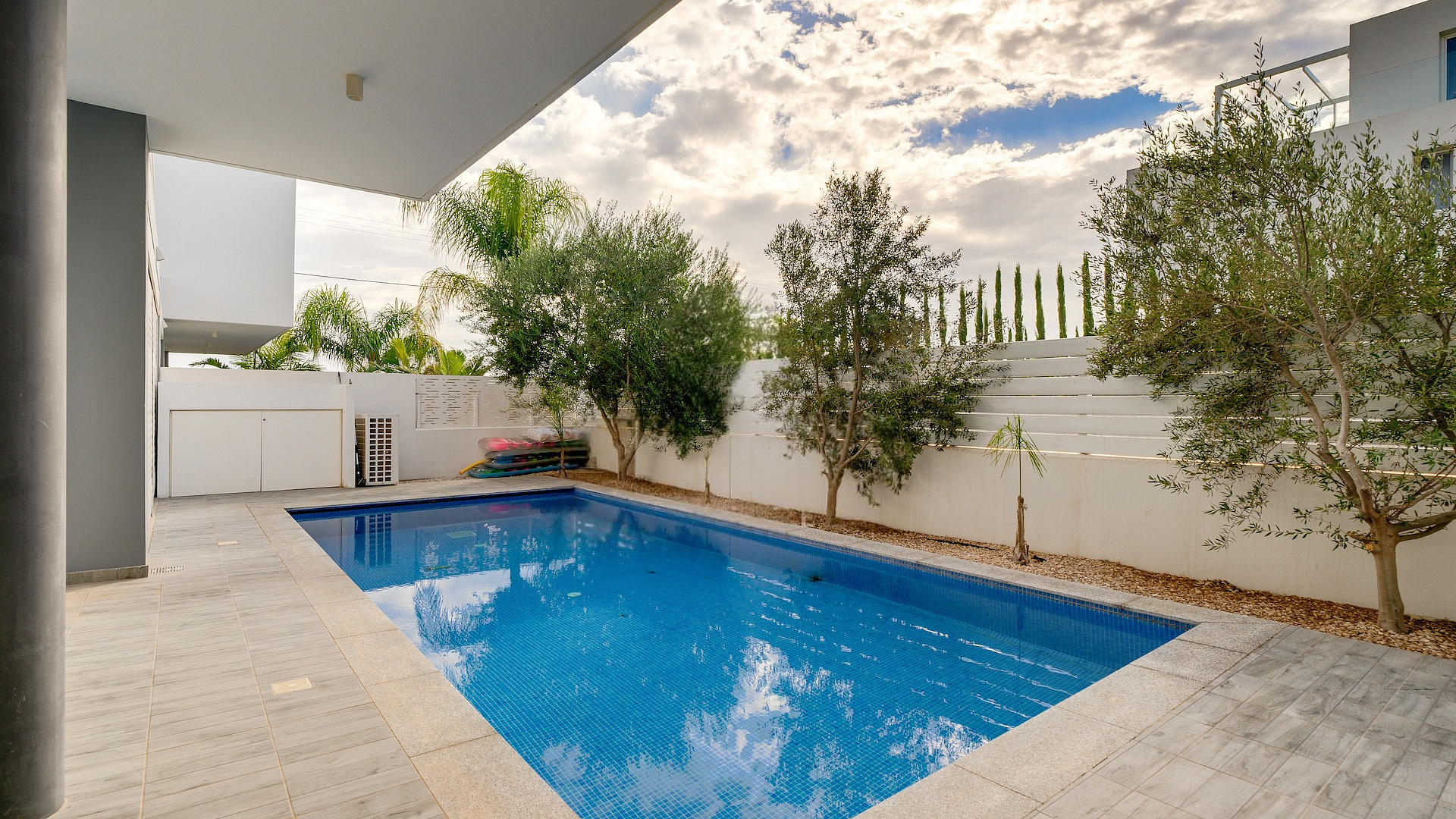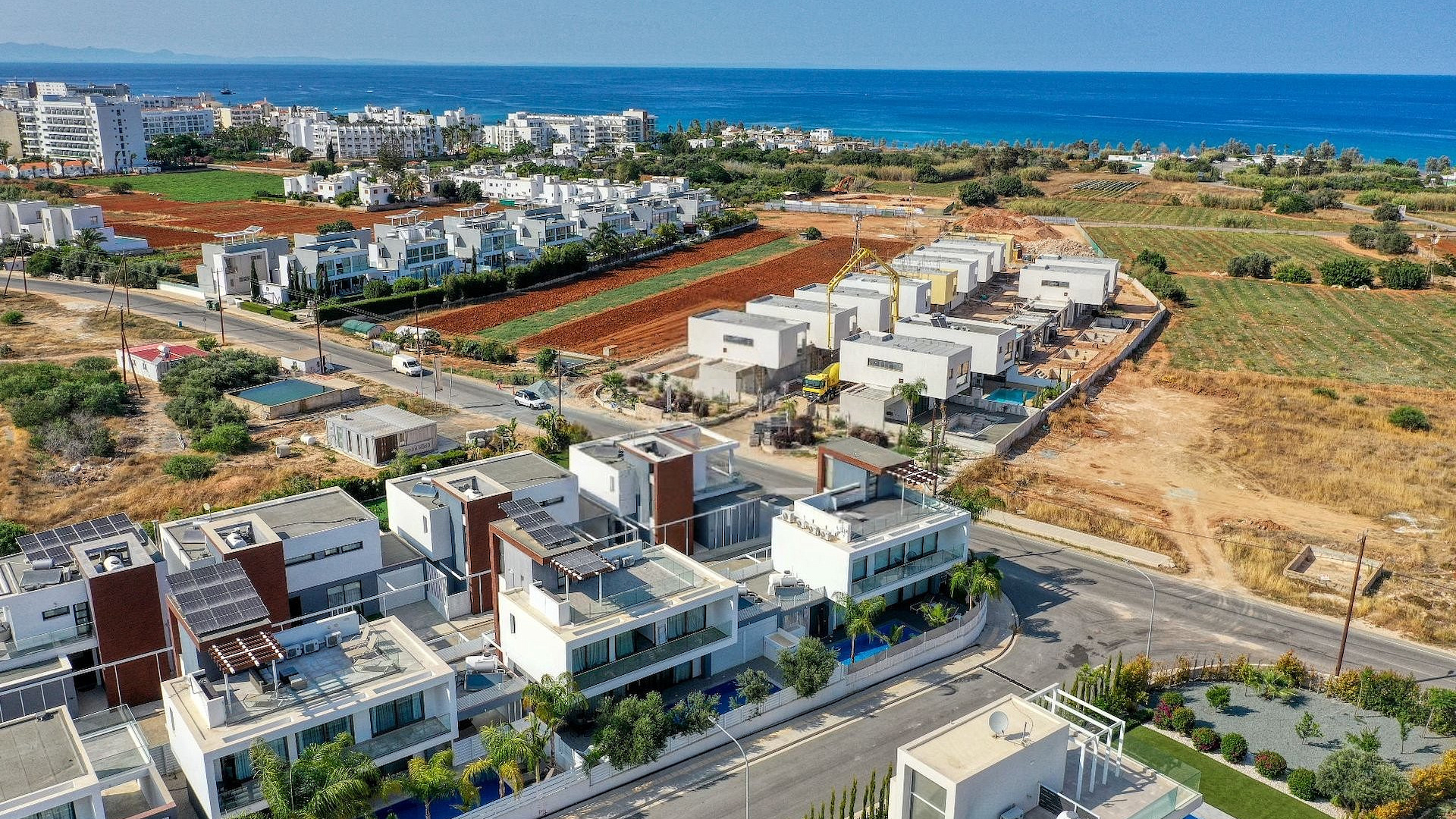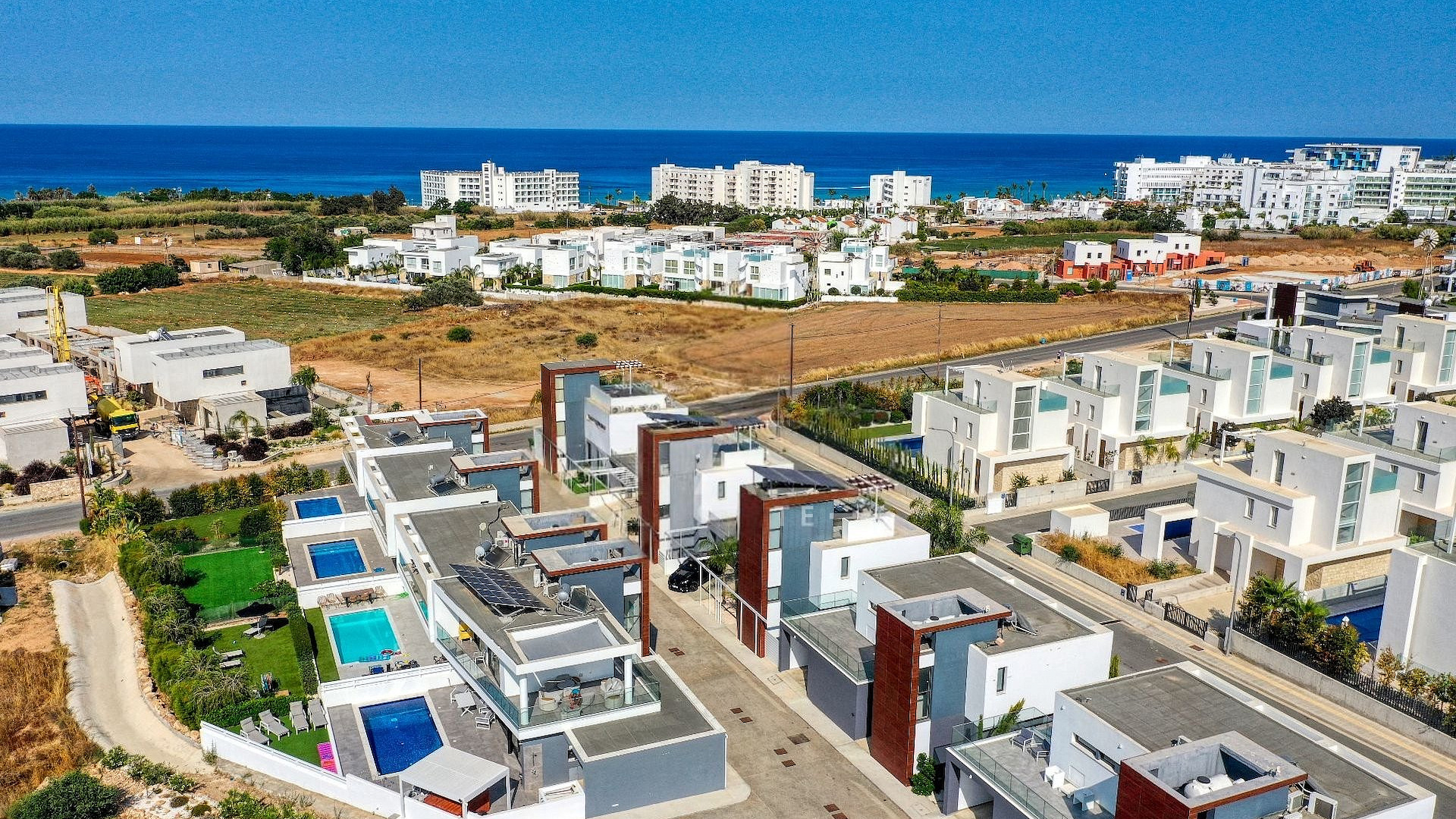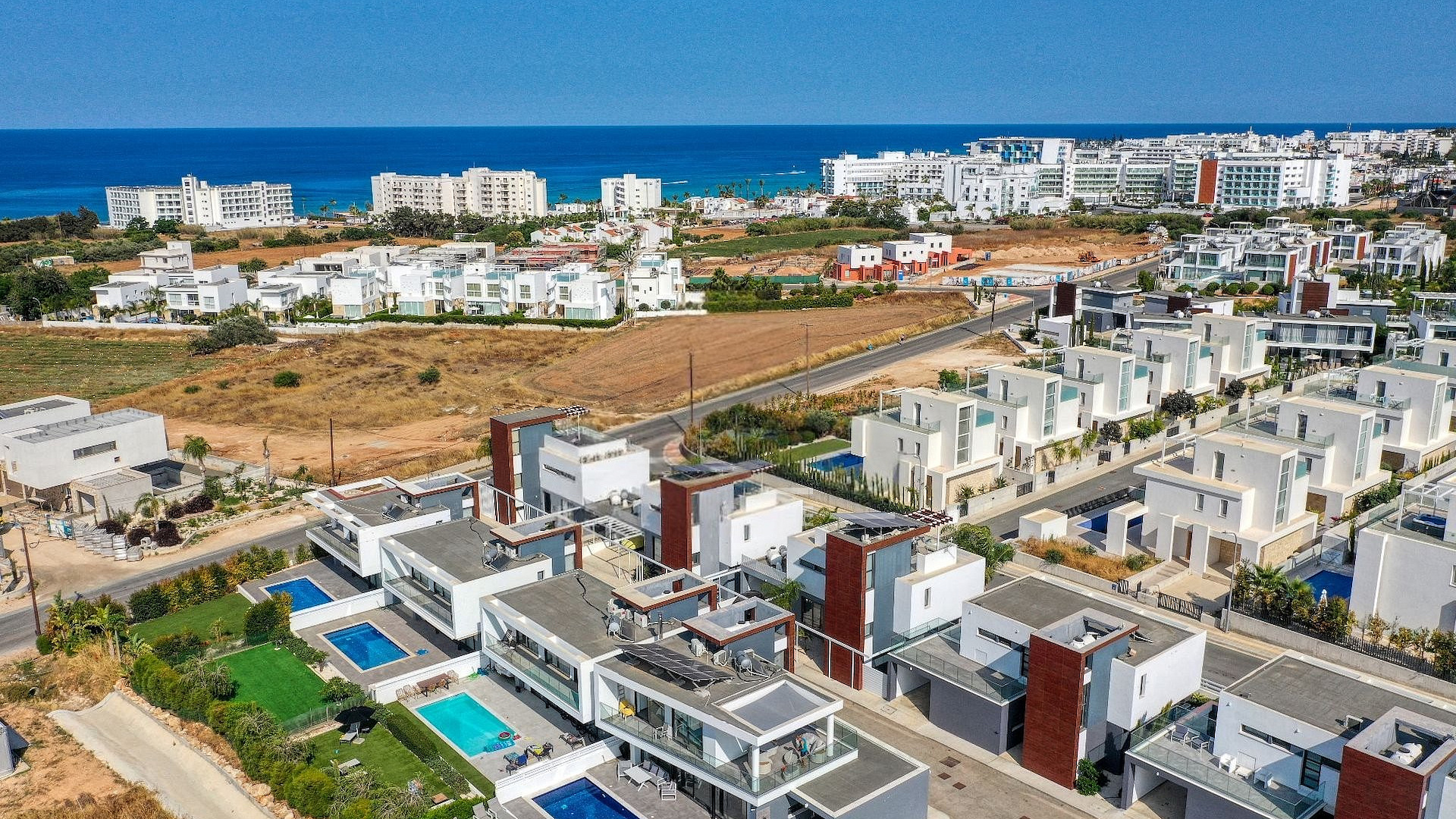 Продаётся трёхспальная вилла площадью 136 м² в районе Protaras, Famagusta. Резиденция включает три просторные спальни, две современные ванные комнаты, три санузла, кухню, совмещённую с обеденной зоной, светлую гостиную, внутреннюю лестницу, крытую веранду 35 м², открытую веранду 50 м², а также участок 260 м² с ухоженным садом и частным подогреваемым бассейном. На территории предусмотрен крытый гараж на два автомобиля с электрическими воротами. Вилла полностью меблирована, оснащена кухонной техникой и современными инженерными системами, включая 3.3 KW фотогальванические панели, солярный водонагреватель, кондиционирование (split units), систему «умный дом», сигнализацию, камеры наблюдения, систему контроля доступа, барбекю-зону и наружный душ. Вилла отличается панорамными видами на море, деревню, сельские ландшафты и открытые пространства, которые просматриваются благодаря большим окнам и продуманным внешним зонам. Объект имеет энергоэффективность класса A+. Недвижимость расположена в спокойном тупике (cul-de-sac), в районе с удобным выездом на шоссе и быстрым доступом к основным дорогам. До моря 500 м, до остановки общественного транспорта 600 м, магазины находятся в 400 м, курортная инфраструктура — в 600 м, школы — в 5 км, аэропорт — в 60 км.