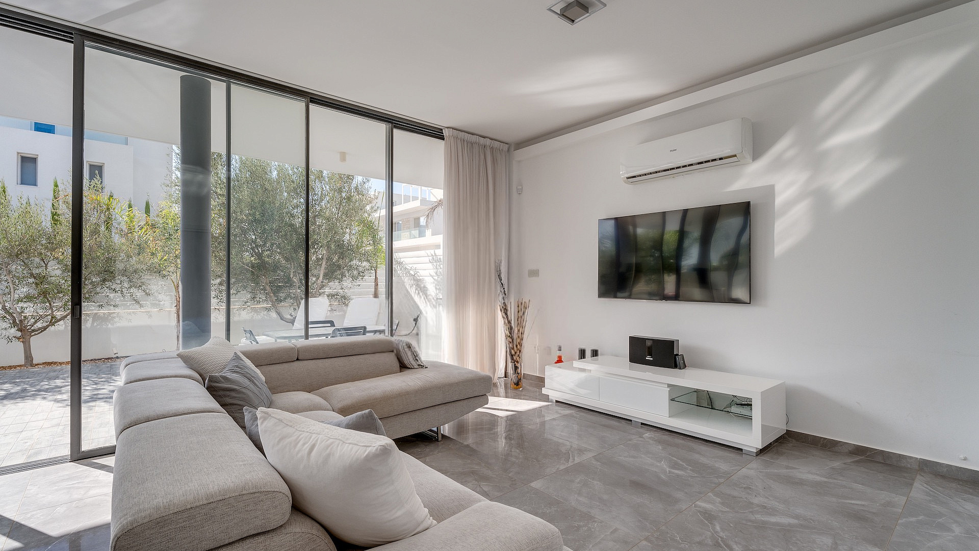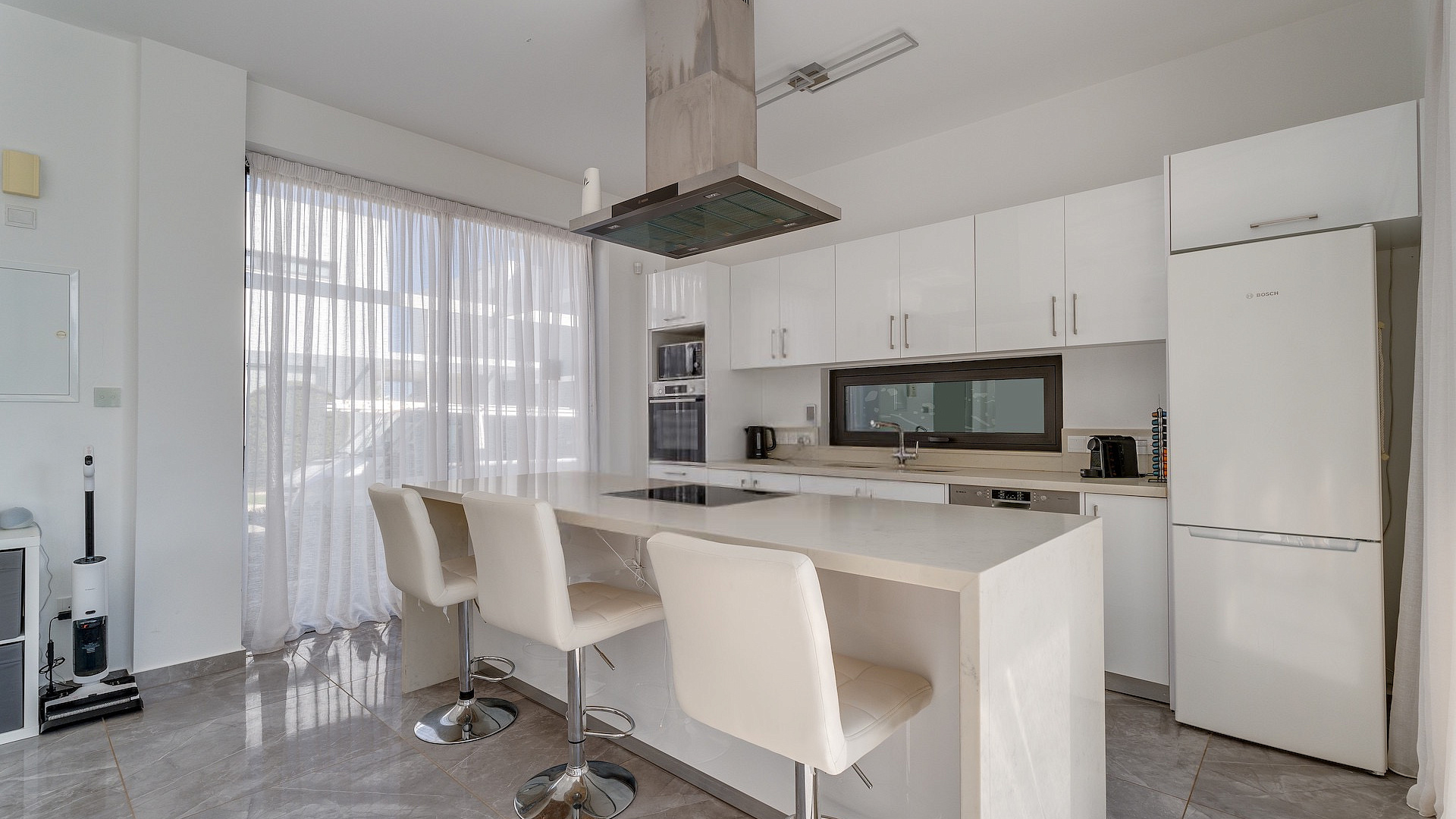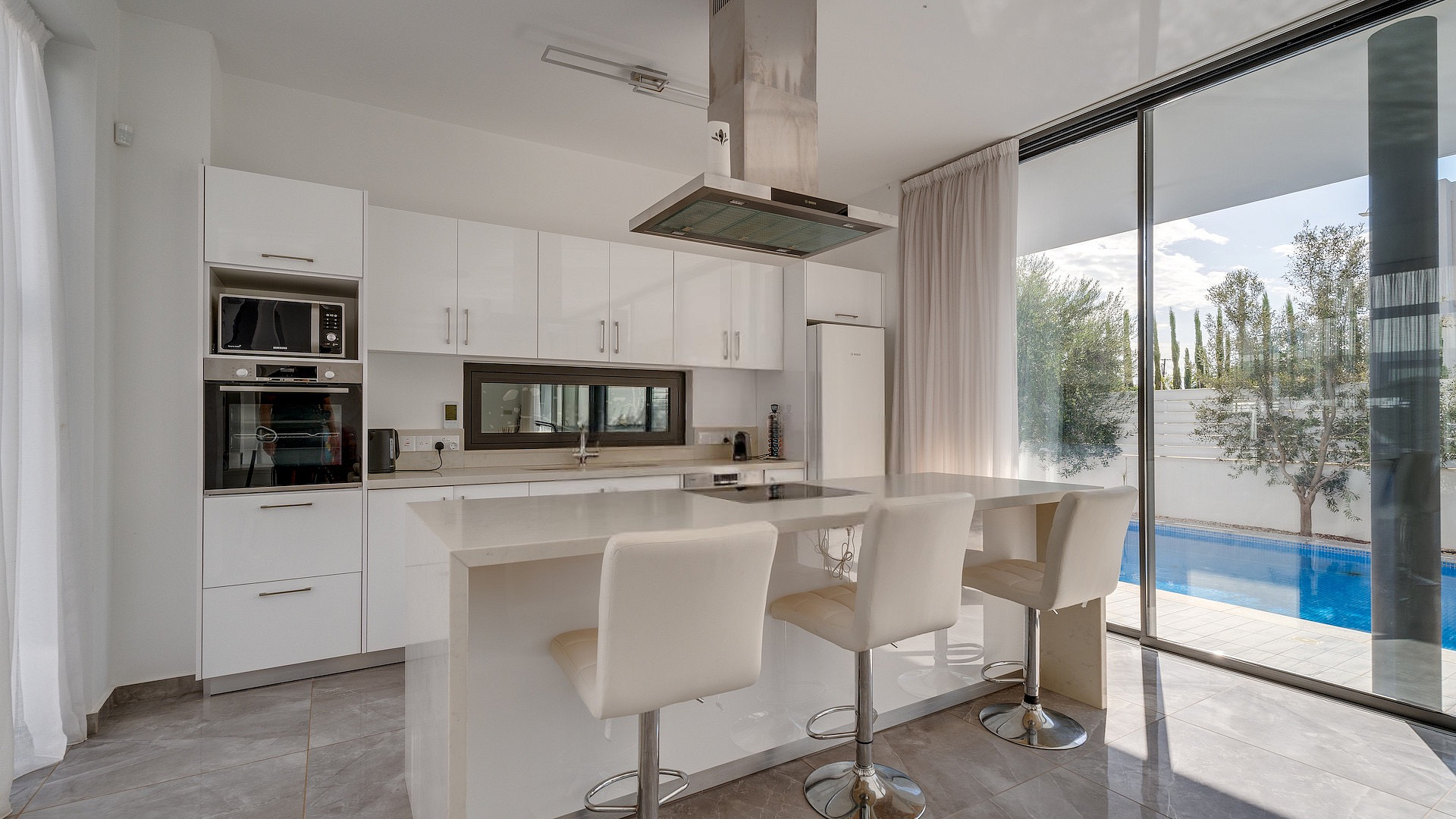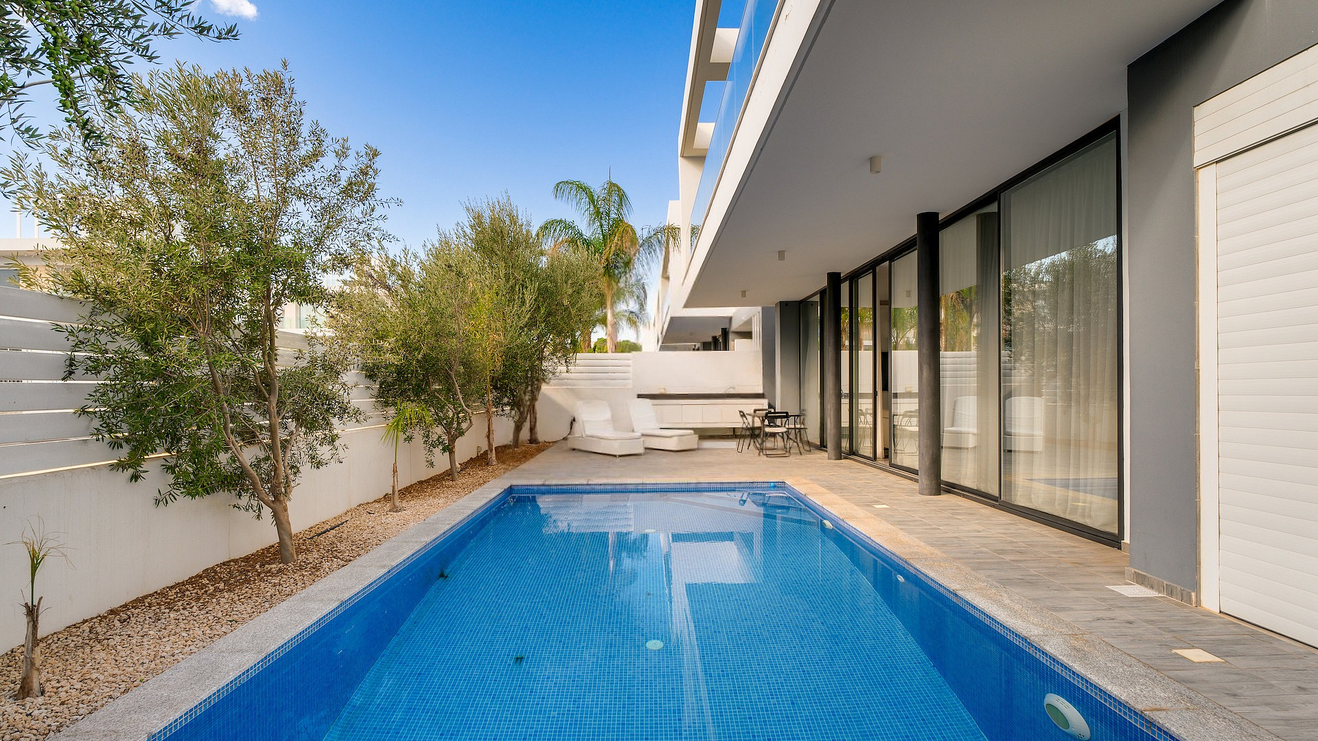 Продаётся трёхспальная вилла площадью 136 м² в районе Protaras, Famagusta. Резиденция включает три просторные спальни, две современные ванные комнаты, три санузла, кухню, совмещённую с обеденной зоной, светлую гостиную, внутреннюю лестницу, крытую веранду 35 м², открытую веранду 50 м², а также участок 260 м² с ухоженным садом и частным подогреваемым бассейном. На территории предусмотрен крытый гараж на два автомобиля с электрическими воротами. Вилла полностью меблирована, оснащена кухонной техникой и современными инженерными системами, включая 3.3 KW фотогальванические панели, солярный водонагреватель, кондиционирование (split units), систему «умный дом», сигнализацию, камеры наблюдения, систему контроля доступа, барбекю-зону и наружный душ. Вилла отличается панорамными видами на море, деревню, сельские ландшафты и открытые пространства, которые просматриваются благодаря большим окнам и продуманным внешним зонам. Объект имеет энергоэффективность класса A+. Недвижимость расположена в спокойном тупике (cul-de-sac), в районе с удобным выездом на шоссе и быстрым доступом к основным дорогам. До моря 500 м, до остановки общественного транспорта 600 м, магазины находятся в 400 м, курортная инфраструктура — в 600 м, школы — в 5 км, аэропорт — в 60 км.