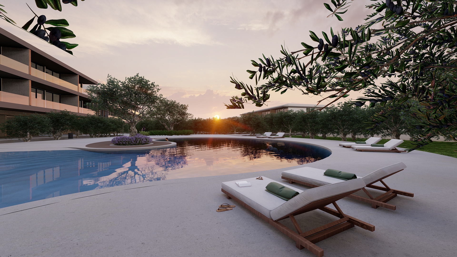 Расположенные в ландшафтных садах с более чем 400 оливковыми деревьями, жильцы имеют доступ к услугам курортного уровня: трем бассейнам, площадкам для игры в падель, фитнес-центру и оздоровительным зонам.