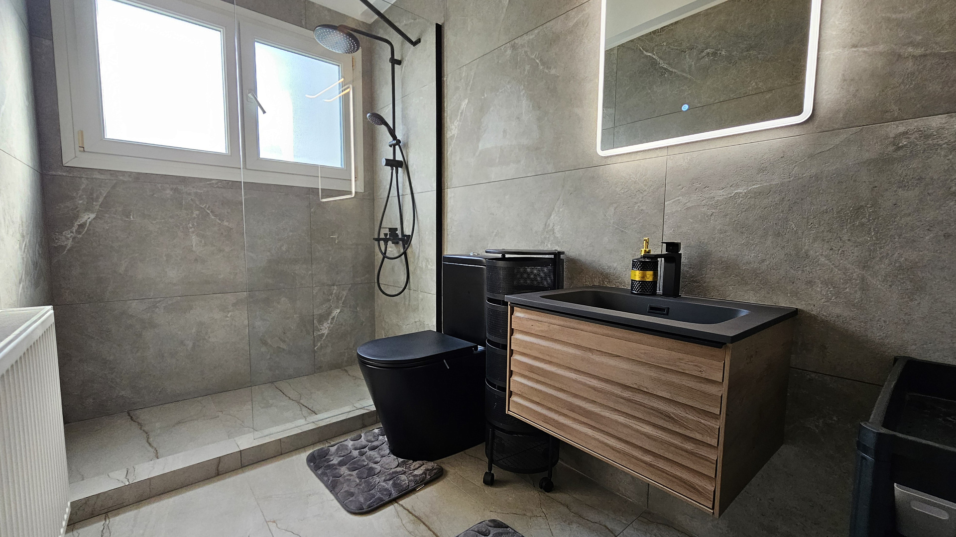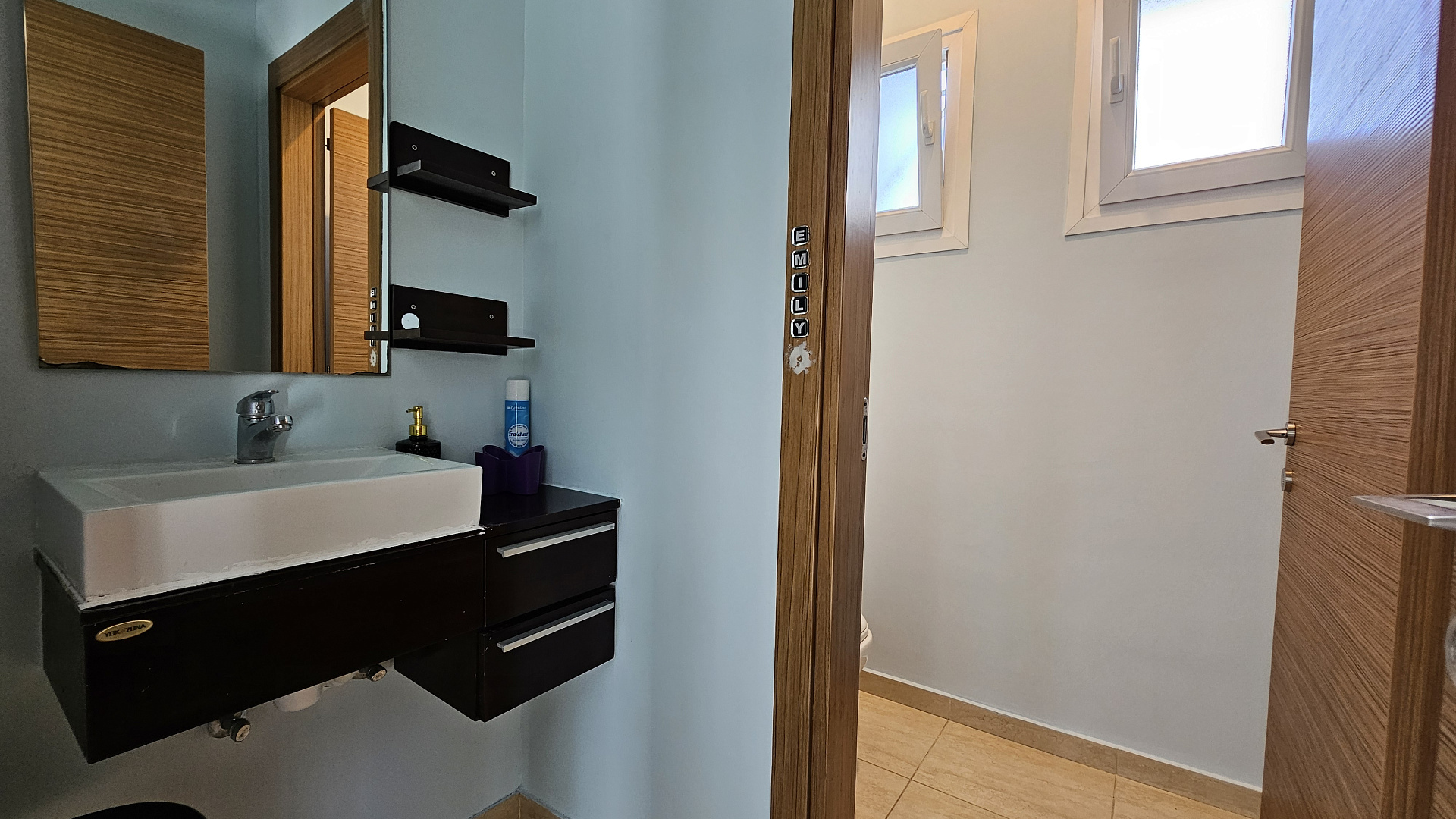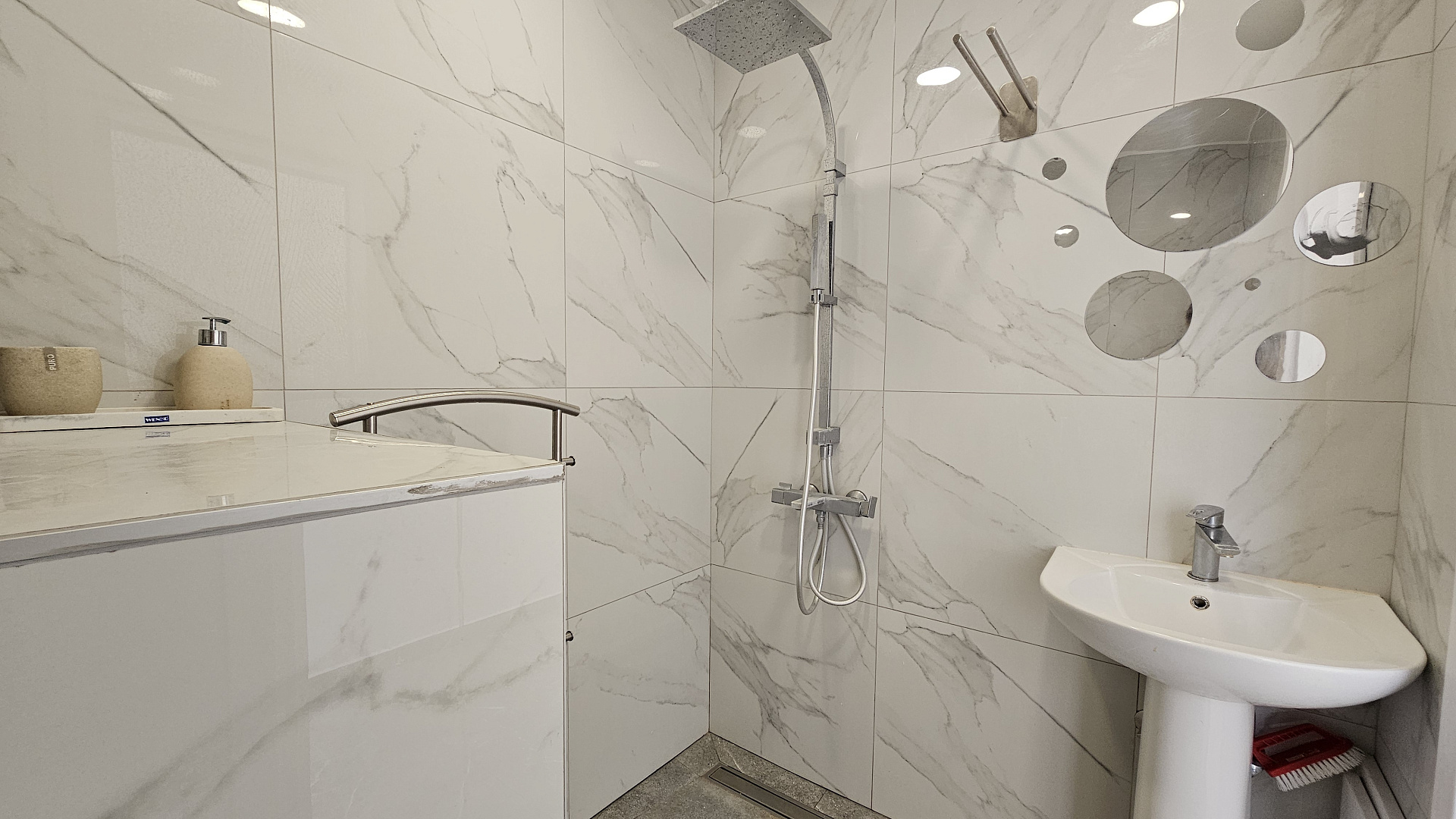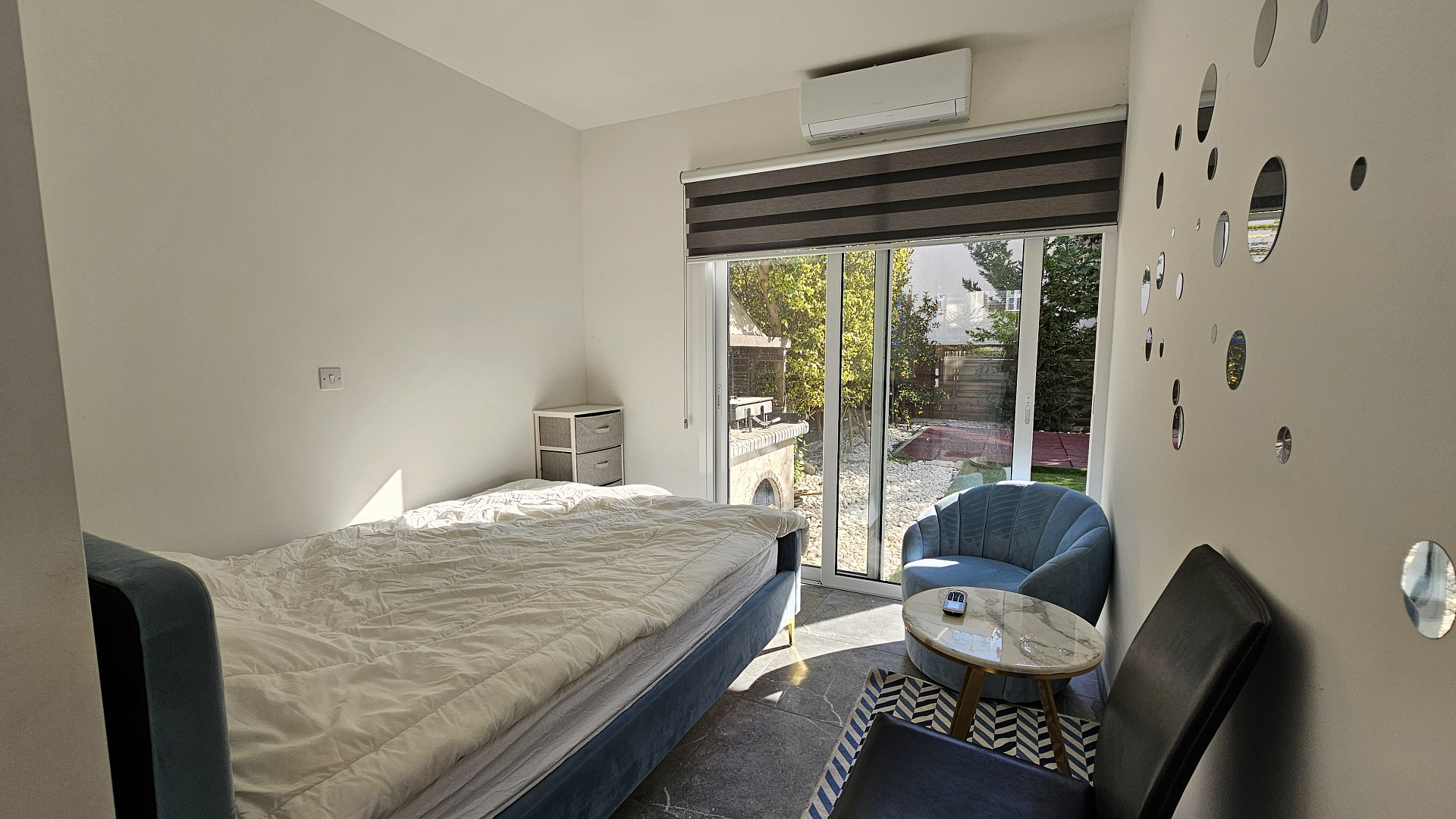 На цокольном этаже расположен просторный блок для персонала, который при желании может быть переоборудован в современный спортзал, тихий офис или уютную игровую комнату. Здесь также обустроены сауна, прачечная, 2 санузла, большая кладовая и ещё одна комната. Дополнительно имеется гостевая спальня с отдельным входом, собственной ванной комнатой и прямым выходом в сад - идеальный вариант для гостей, желающих уединения.