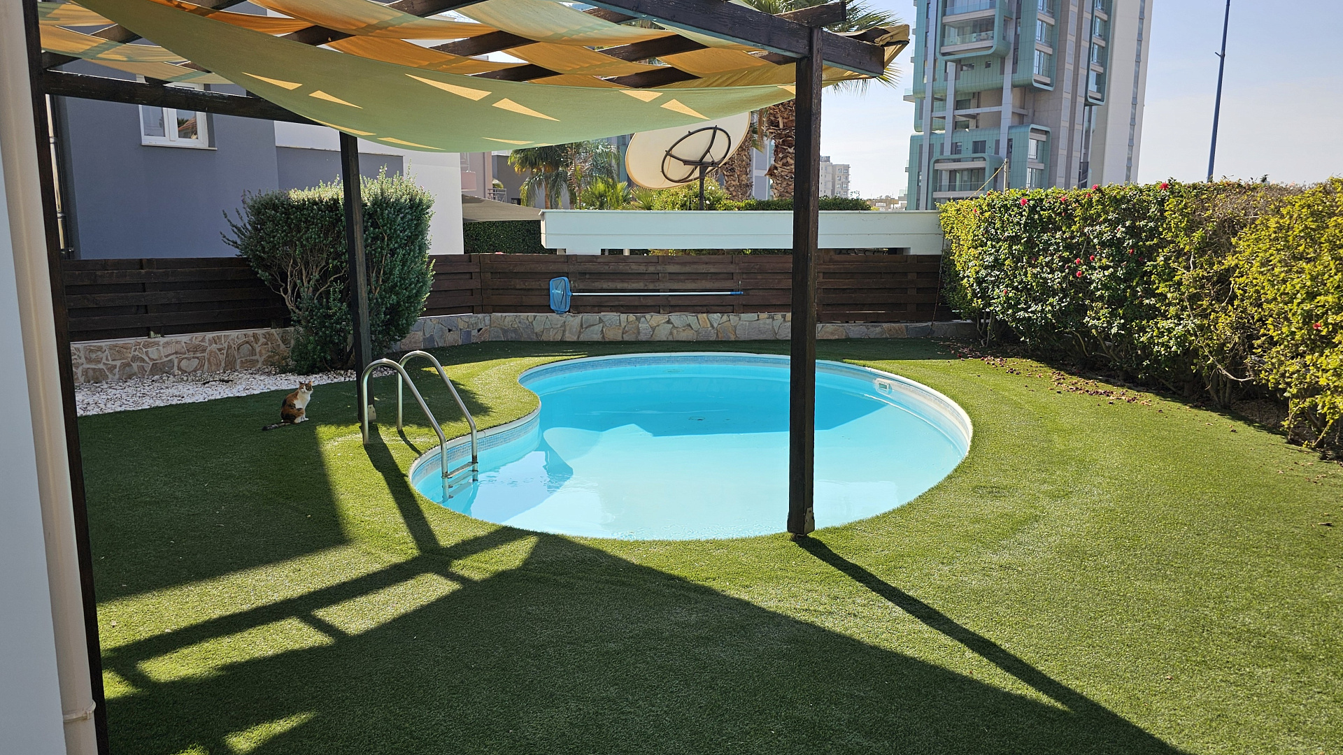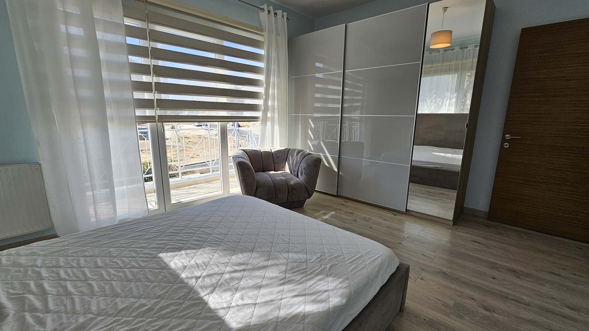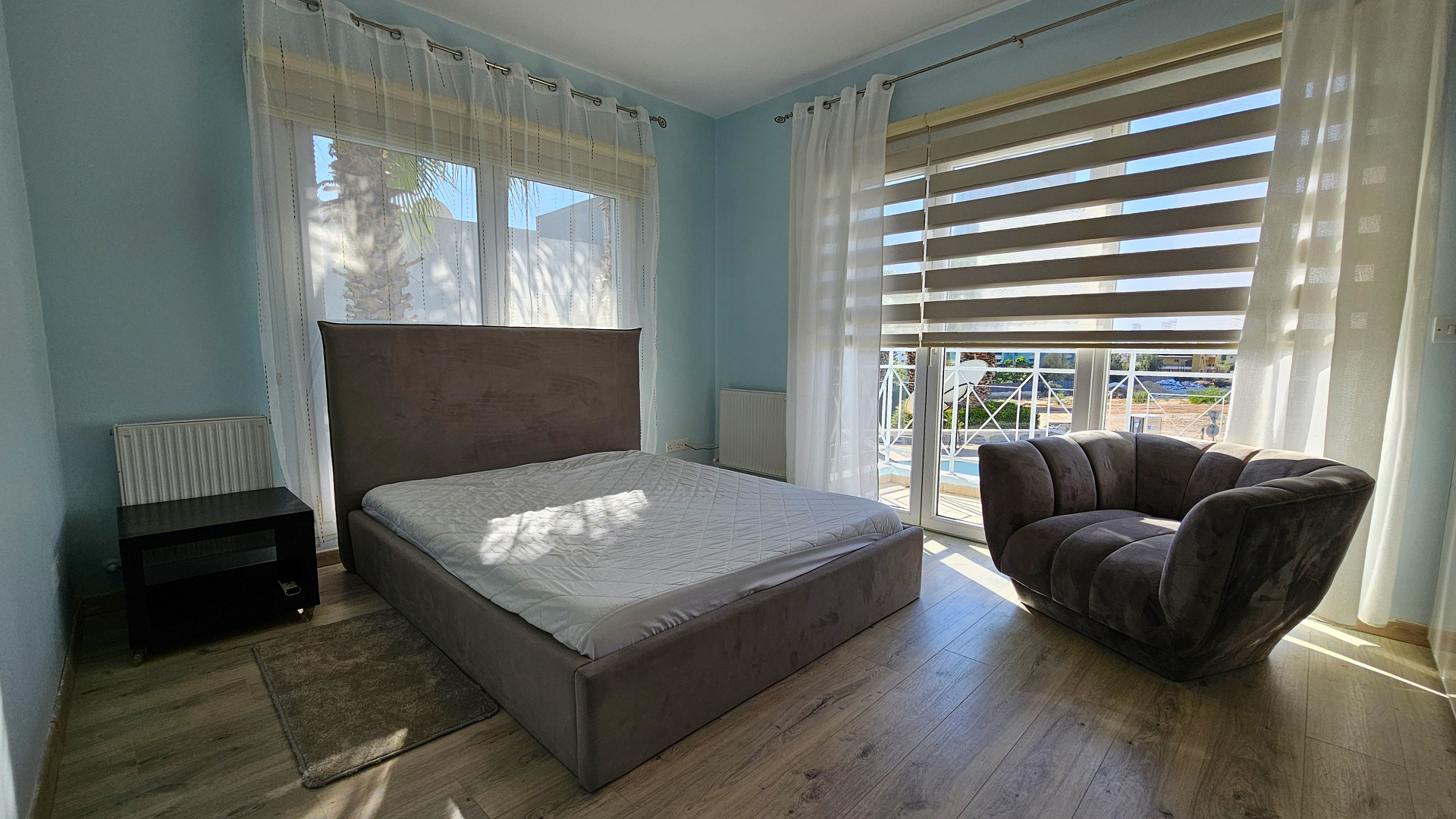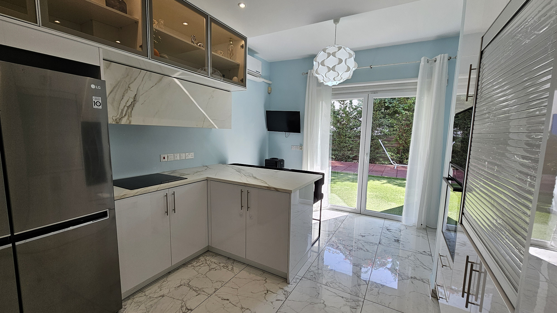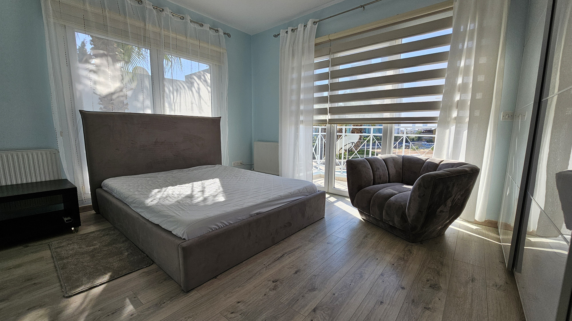 Элегантная вилла полностью меблирована и оснащена всей необходимой бытовой техникой, в каждой комнате установлены кондиционеры, действует центральное газовое отопление, система сигнализации и камеры наблюдения. На территории ухоженный сад, большой бассейн, парковка на 2 машины и ворота с дистанционным управлением.