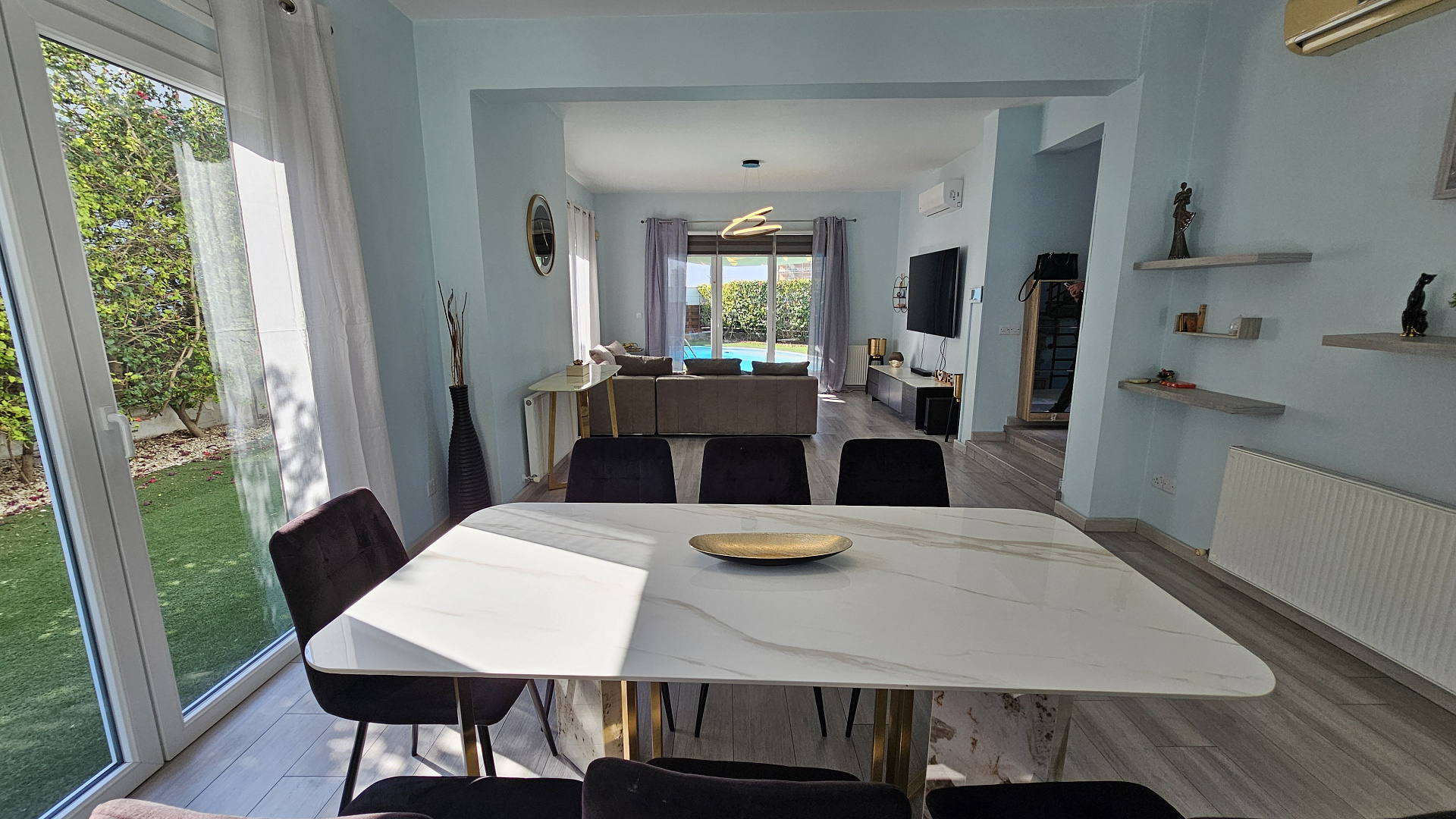 Продаётся вилла в престижном районе Agios Tychonas, Лимассол, в шаговой доступности от моря. Состоит из 3-х уровней: на 1-м этаже расположена просторная гостиная с панорамным видом на сад и бассейн, отдельная полностью оборудованная кухня и гостевой туалет. На втором этаже мастер-бедрум с собственной ванной комнатой с ванной, ещё две спальни и большая ванная комната с душевой. На крыше большая терраса, которую можно оформить по своему вкусу, создав собственное пространство для отдыха.
