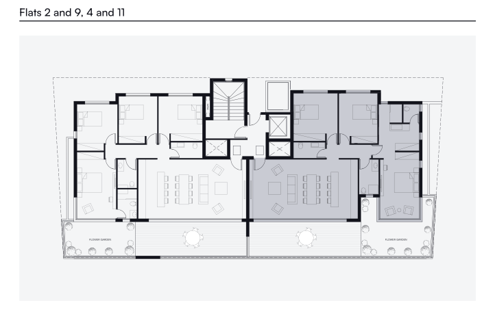 Квартира включает просторную гостиную зону, четыре светлые спальни, крытую веранду площадью и высокие потолки до трёх метров. Внутреннее пространство выполнено с использованием высококачественных материалов: деревянные полы в жилых зонах, керамическая плитка в кухне и ванных комнатах, итальянская встроенная кухня и сантехника европейских брендов. Панорамные энергоэффективные окна с отражающим IR-покрытием наполняют квартиру светом и открывают вид на зелёные насаждения комплекса.