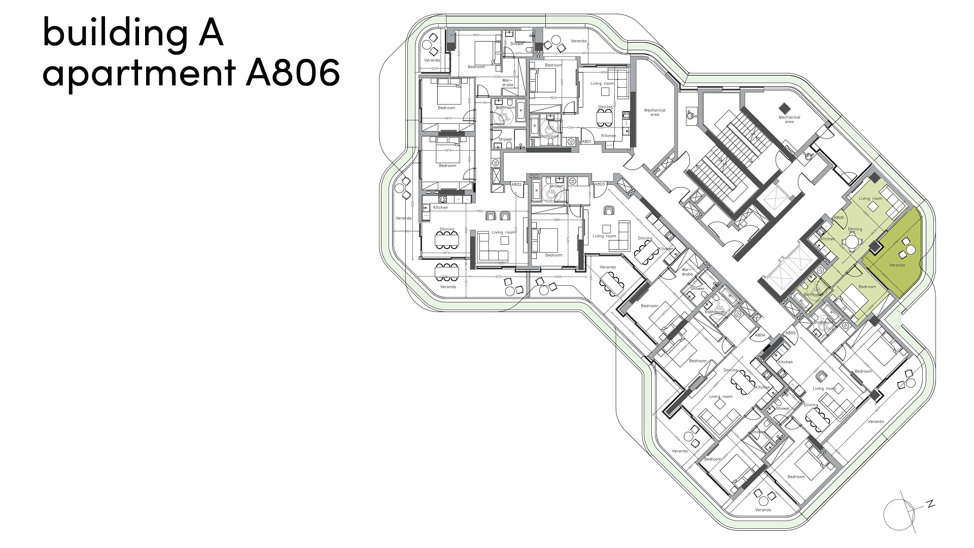 Рядом с комплексом находятся рестораны и бары, зеленые зоны и парки, торговые улицы, спортивные сооружения, жилые и коммерческие помещения, площадки для мероприятий и отель.