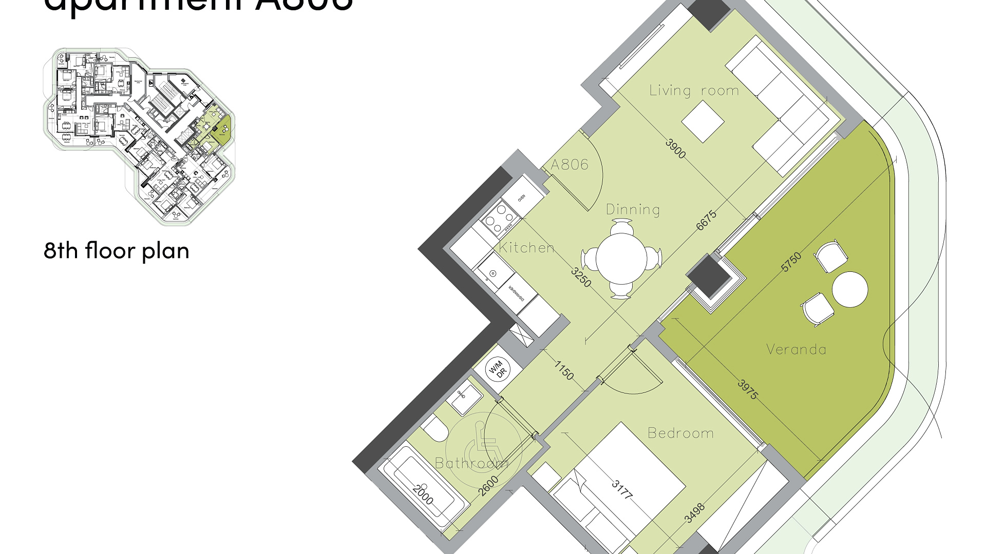 Каждая квартира в комплексе спроектирована так, чтобы максимально обеспечить панорамный вид на море. В проекте предусмотрена гостиная и кухня открытой планировки, а также просторная веранда.