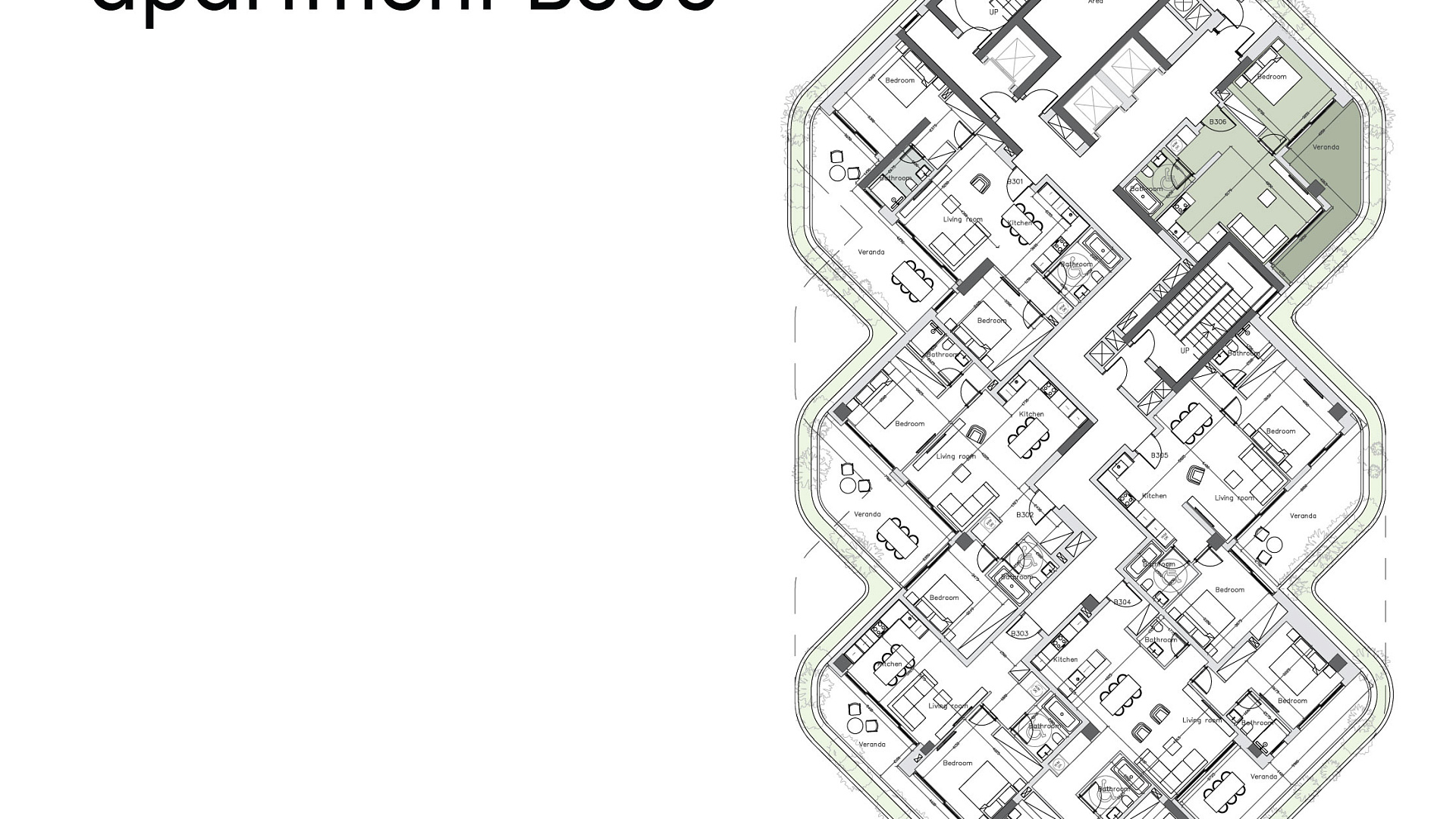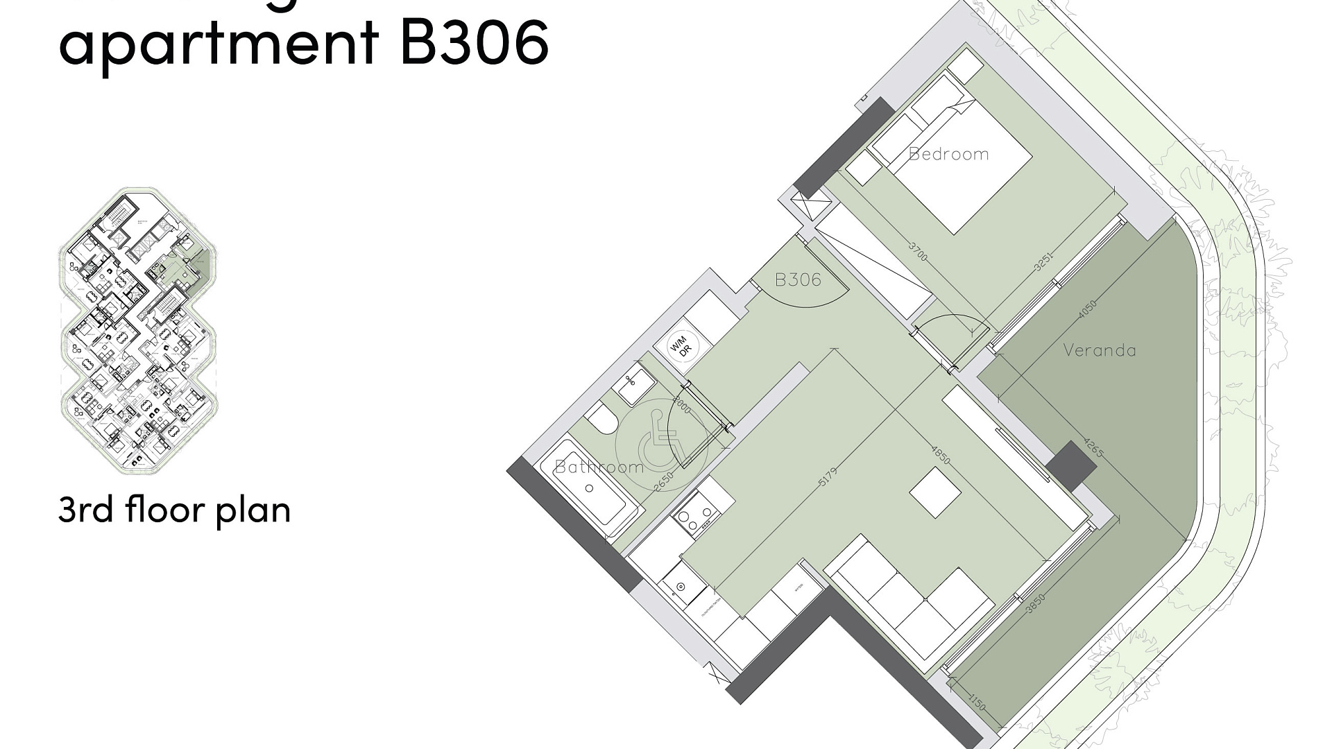 Каждая квартира в комплексе спроектирована так, чтобы максимально обеспечить панорамный вид на море. В проекте предусмотрена гостиная и кухня открытой планировки, а также просторная веранда.
