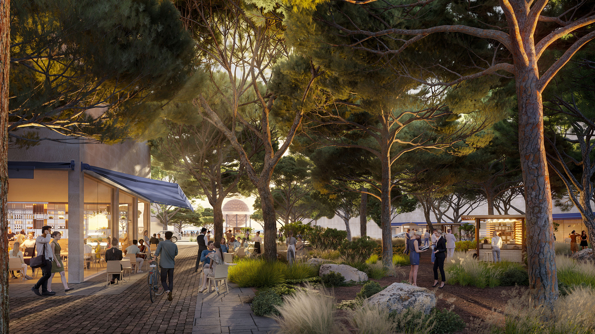 Рядом с комплексом находятся рестораны и бары, зеленые зоны и парки, торговые улицы, спортивные сооружения, жилые и коммерческие помещения, площадки для мероприятий и отель.