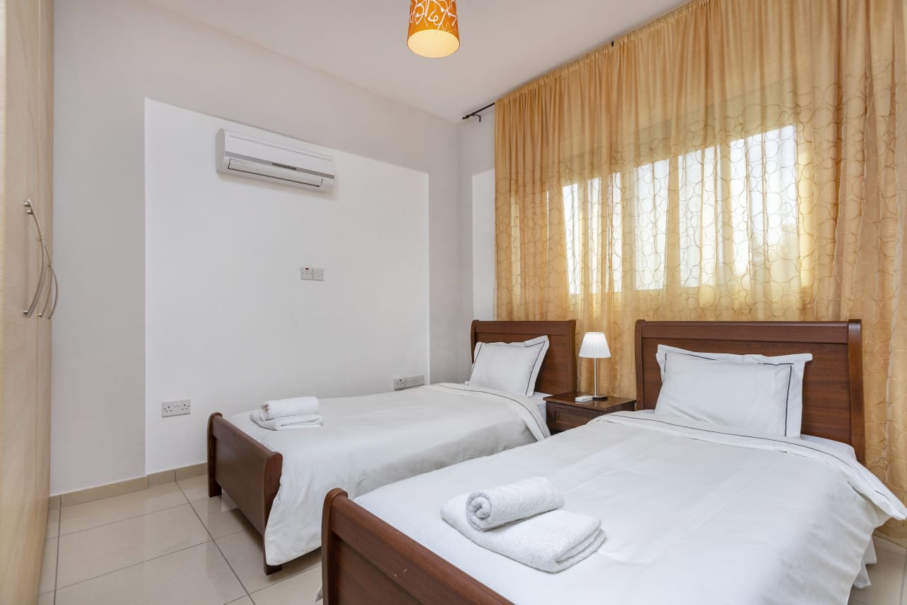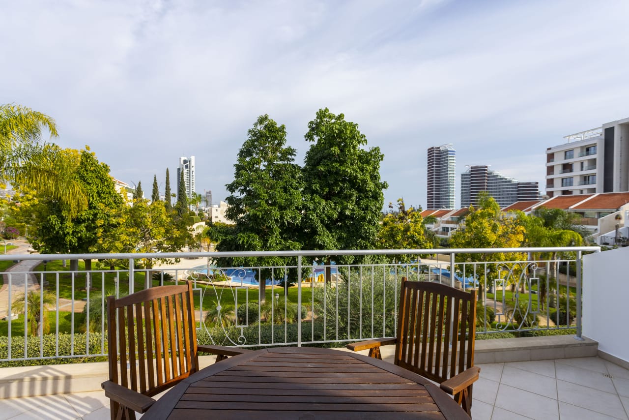 Продаётся двуспальная квартира в Potamos Germasogeias Limassol, расположенная на первом этаже и имеющая внутреннюю площадь 86 м² с крытой верандой 24 м², включает мастер-спальную с душем, семейную ванную комнату, открытую кухню, совмещённую с гостиной, и вид на бассейн и ухожённый общий сад, находится в закрытом комплексе рядом с муниципальными теннисными кортами и имеет title deed.