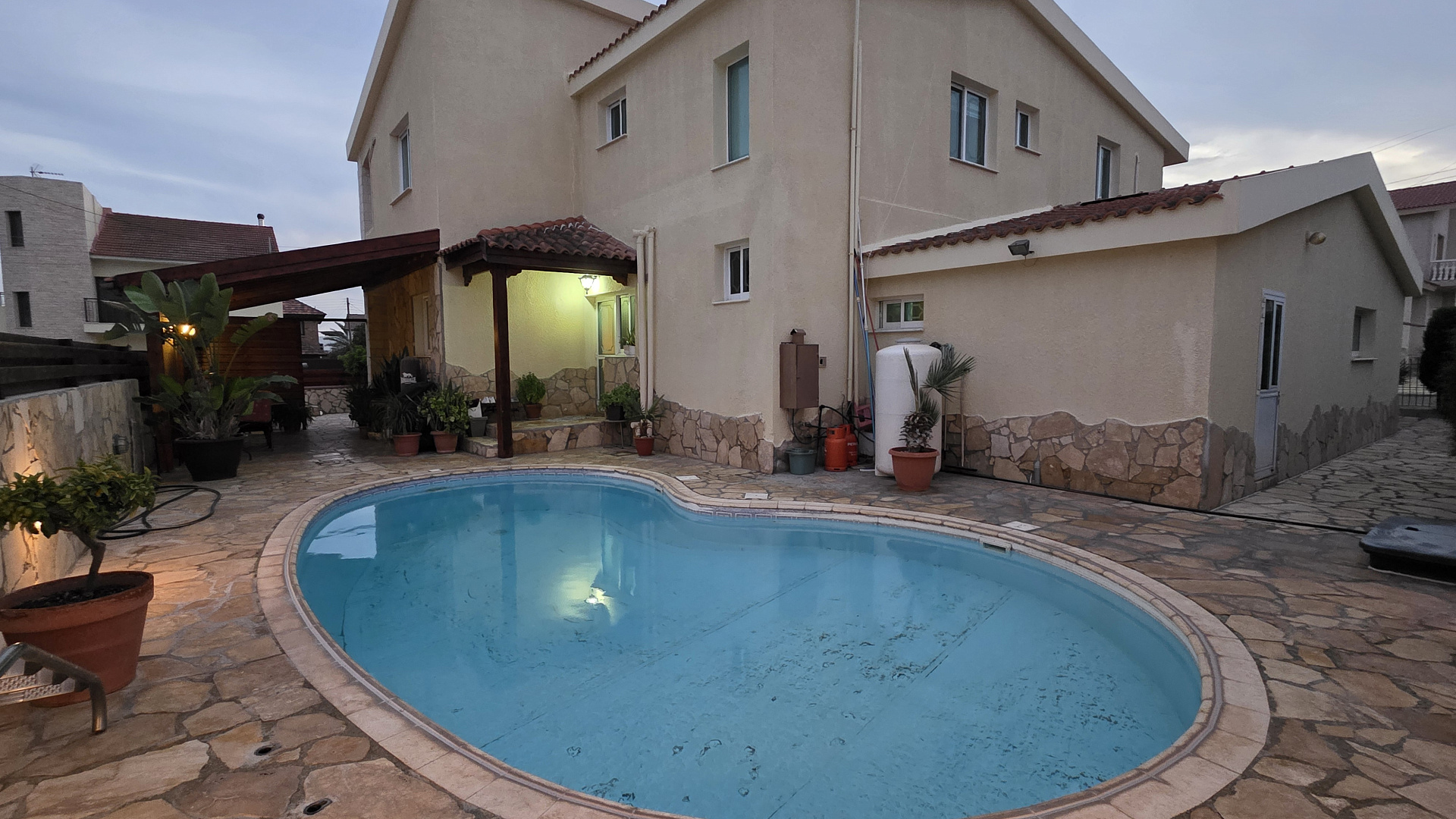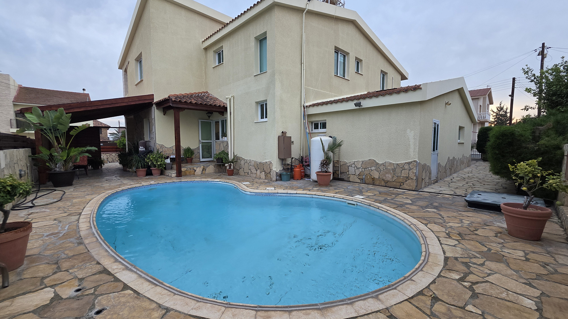 Продается дом в деревне Терсефану, в 15 минутах езды от Ларнаки. Дом расположен на участке 549 м2, с собственным бассейном. Имеет просторную гостиную, отдельную кухню, пять спален и три ванные комнаты. Полностью меблирован и оборудован бытовой техникой, и кондиционерами. Ухоженный сад, крытая парковка на две машины и кладовая комната. Дом в прекрасном состоянии и находится в тихом месте, рядом автобусная остановка до Финикудес.