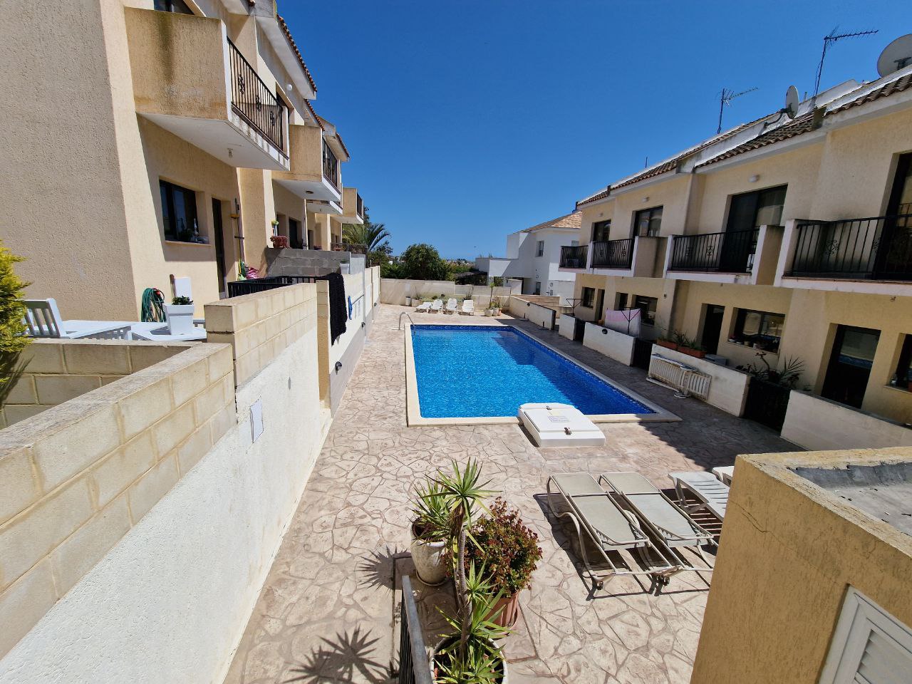 Продаётся двуспальный дом в районе Ormideia, в Larnaca с садом в закрытом комплексе с общим бассейном, оформленный как мезонет после свежего ремонта. На первом этаже расположены гостиная, кухня, ванная и выход на задний двор, на втором — две спальные, каждая с балконом, и ванная, а на третьем этаже находится чердак, который можно использовать как кладовую, дополнительную спальню или кабинет. Всего в доме три балкона и открытая парковка. Дом находится в пяти минутах езды от супермаркета Lidl и в двадцати минутах от центра Larnaca и английских школ.