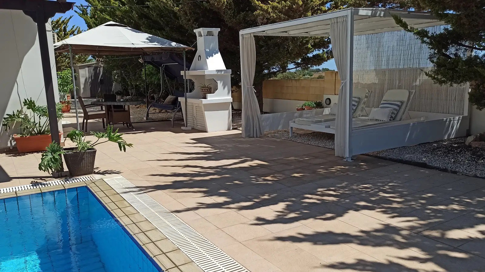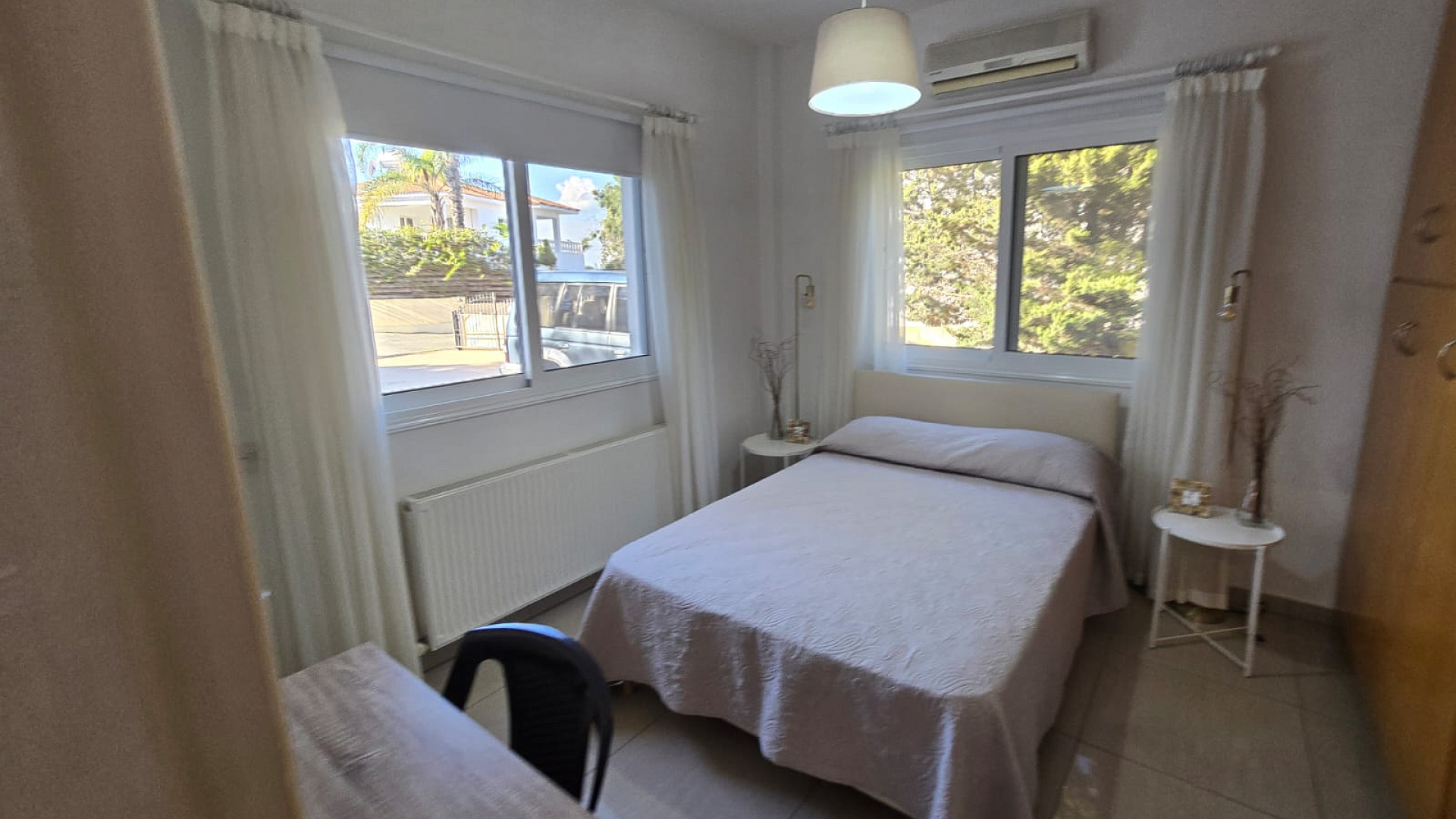 Продаётся четырёхспальная вилла крытой площадью 220 м² на участке 800 м² в районе Paralimni, Famagusta. Вилла включает четыре спальни, пять и более ванных комнат, кухню, гостиную, отдельные крытые и открытые веранды, балконы, кладовую, дополнительную автономную гостевую студию granny flat с отдельным входом, а также открытую парковку. Недвижимость построена в 2007 году, общая крытая площадь составляет около 213 м², включая 184 м² внутренних помещений, 29 м² крытых веранд и 13 м² открытых веранд. Резиденция не меблирована, оборудована системой кондиционирования воздуха во всех помещениях, центральным отоплением, системой сигнализации, двойными стеклопакетами, напорной системой водоснабжения и душем у бассейна. Планировка предусматривает три спальни на верхнем этаже и отдельную granny flat на первом уровне, что удобно для гостей или большой семьи, при этом каждая спальня оснащена собственной ванной комнатой, дополнительно предусмотрен гостевой санузел. На территории расположен частный бассейн площадью около 40 м² размером 8×4 м, ухоженный сад с взрослыми пальмами, зона барбекю, крытая беседка gazebo и просторные зоны отдыха на открытом воздухе. Дом расположен на угловом участке в тихом районе Paralimni, в нескольких минутах от местной инфраструктуры.