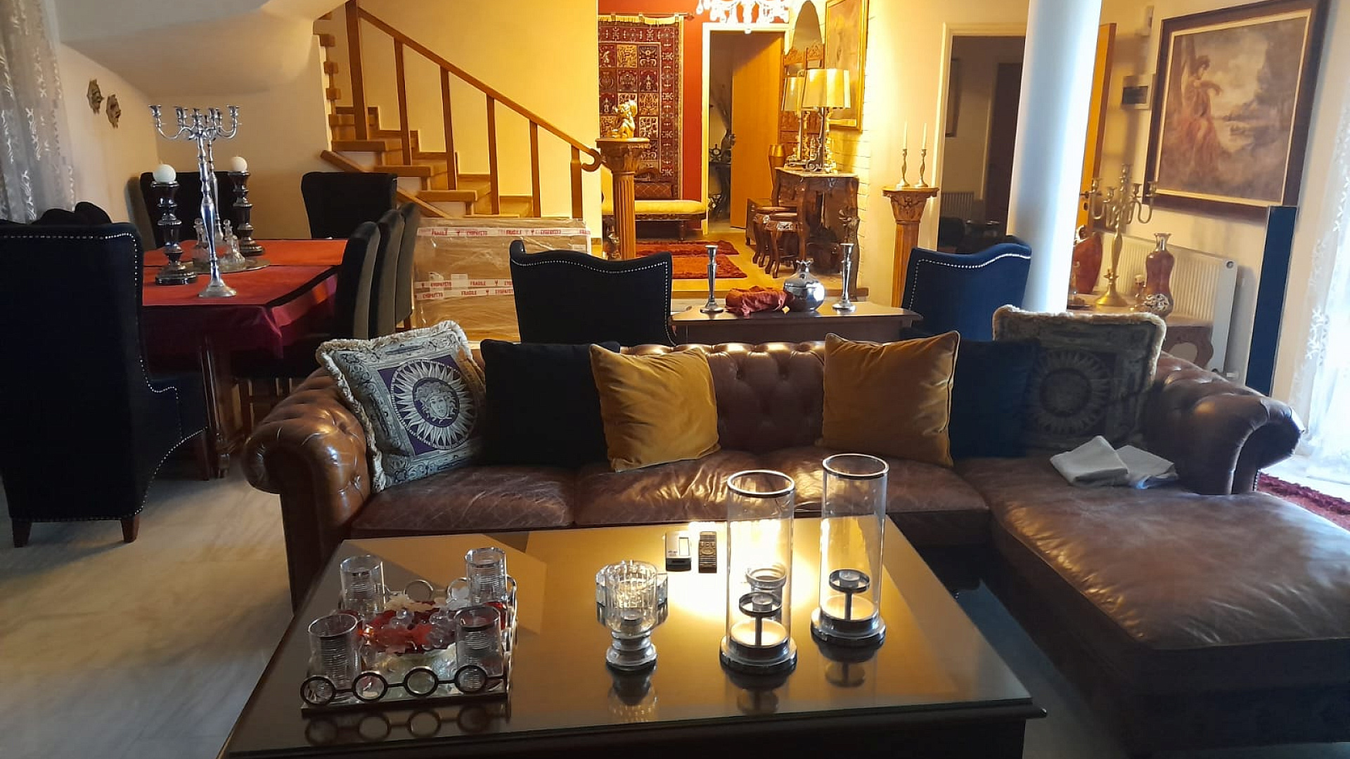 Резиденция полностью меблирована и укомплектована, включая шторы и покрывала во всех спальнях, картины, дорогие ковры, абажуры, люстры, декоративные элементы, кухонную мебель и бытовую технику, кондиционеры split-system, независимую центральную систему отопления, камин, солнечный водонагреватель, систему напорного водоснабжения, интернет и сигнализацию.